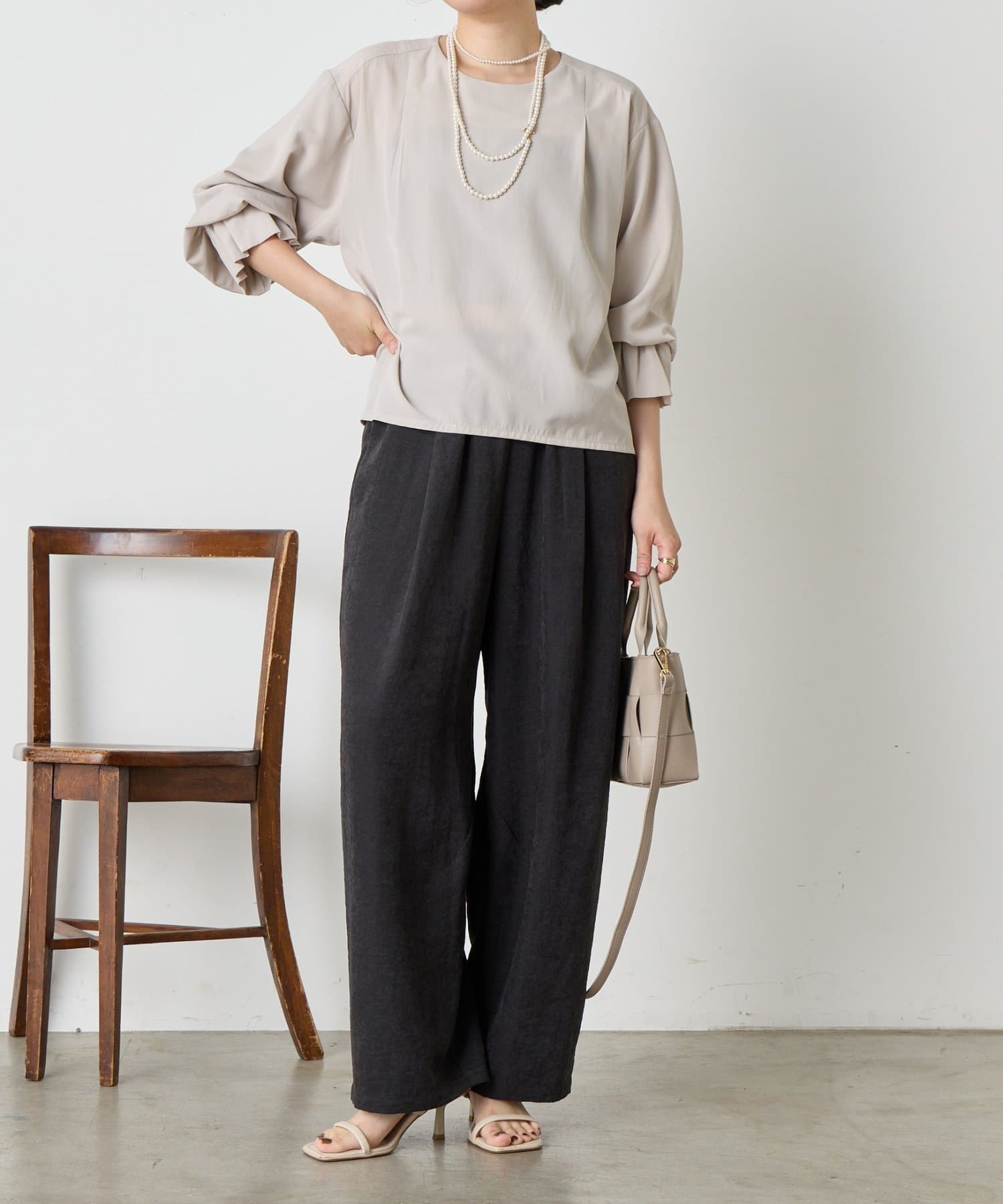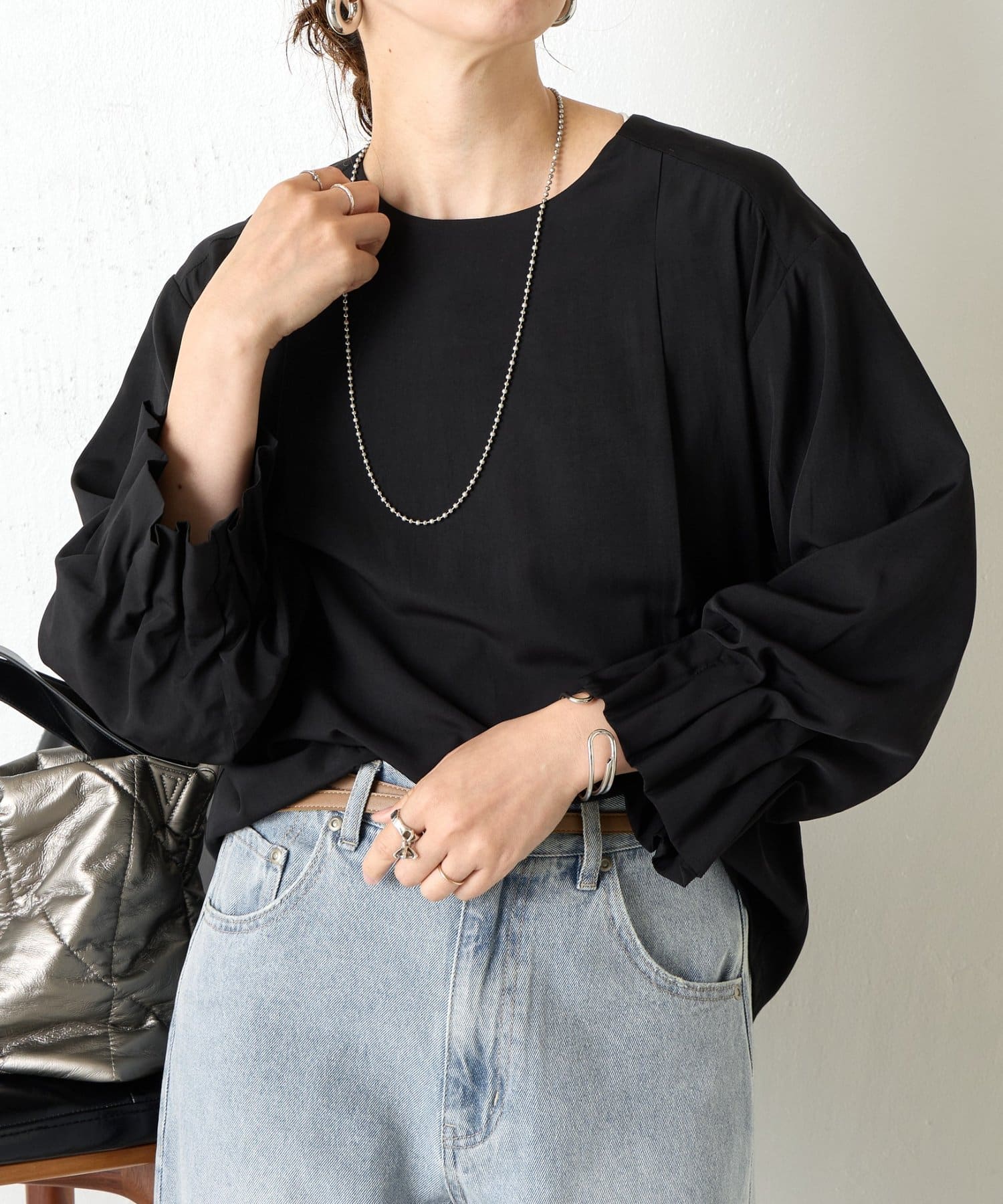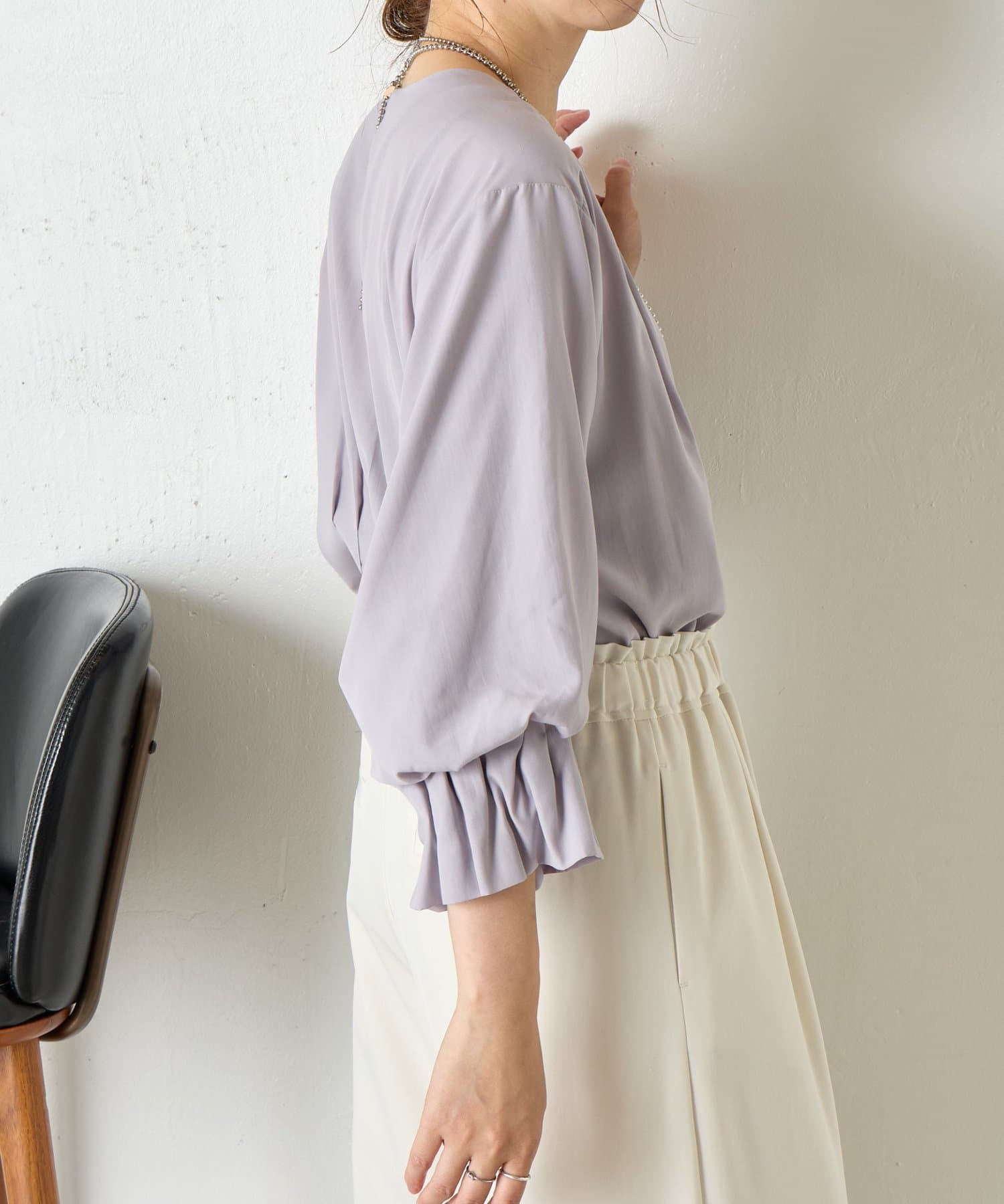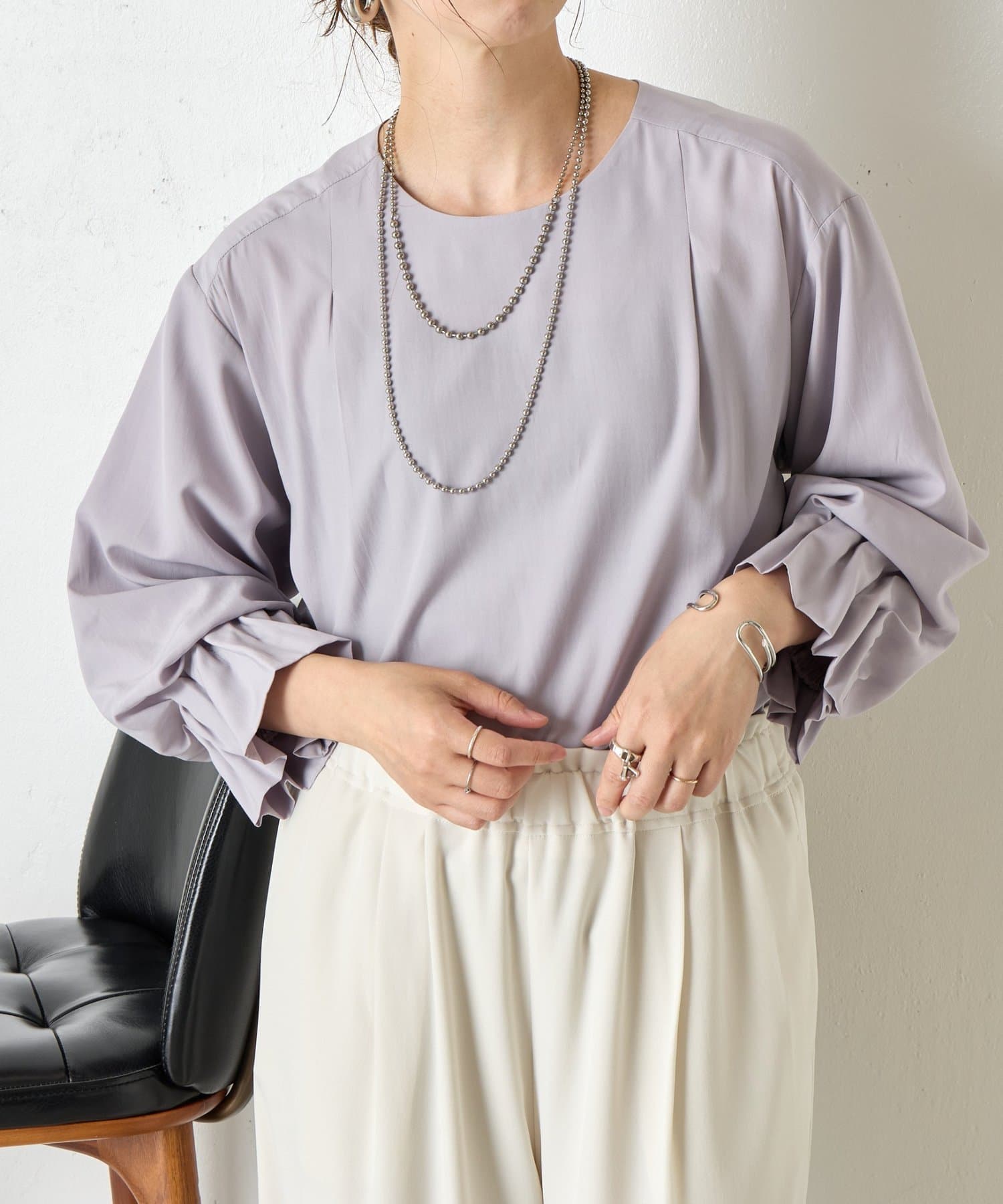 ・袖口にボリュームのあるギャザーとバックデザインにはタックが施された大人ブラウス。