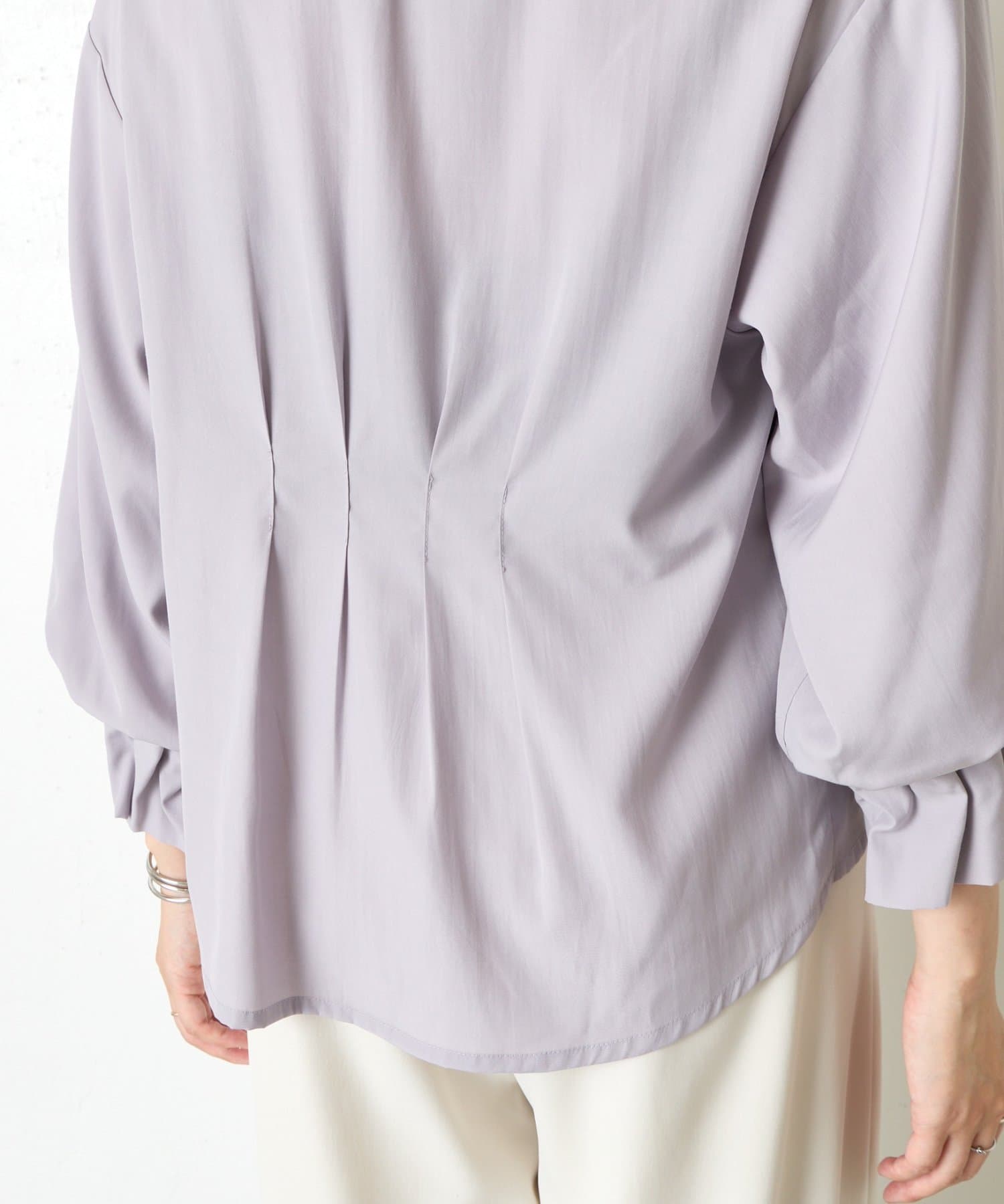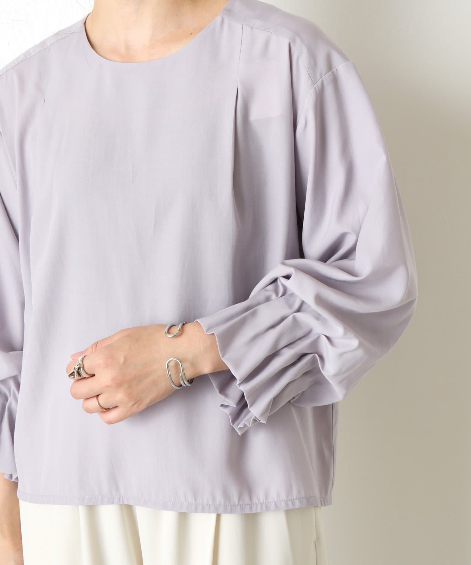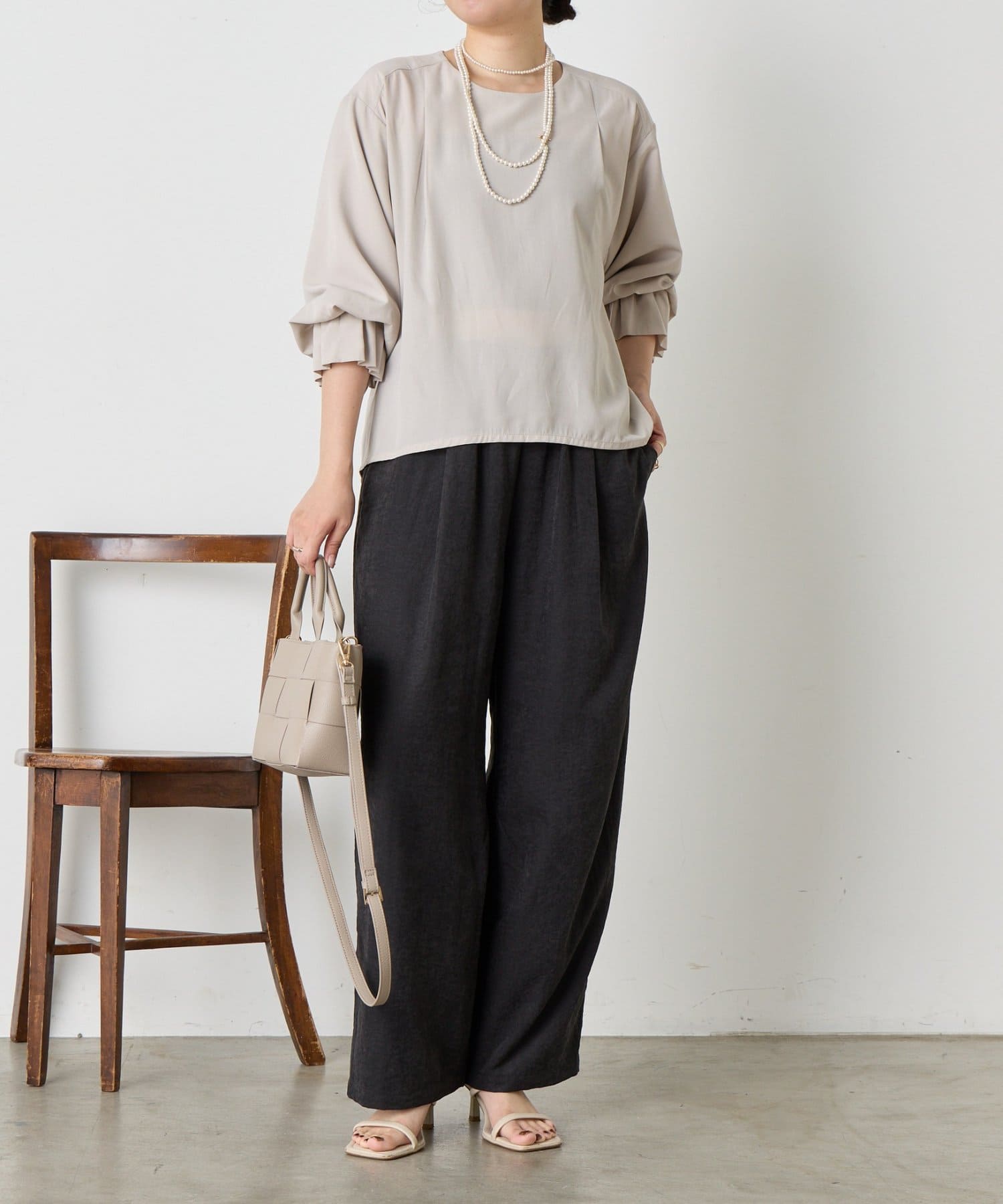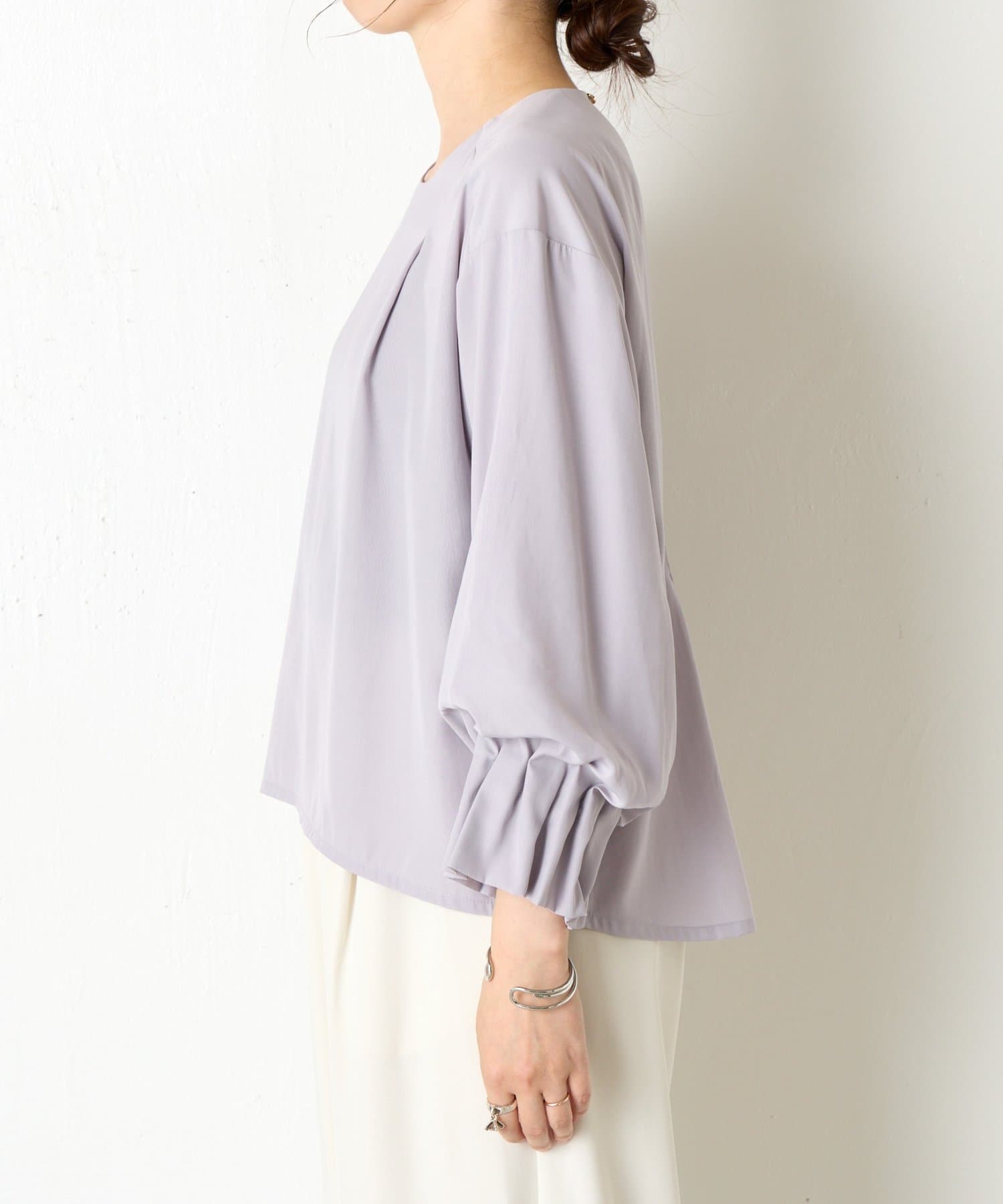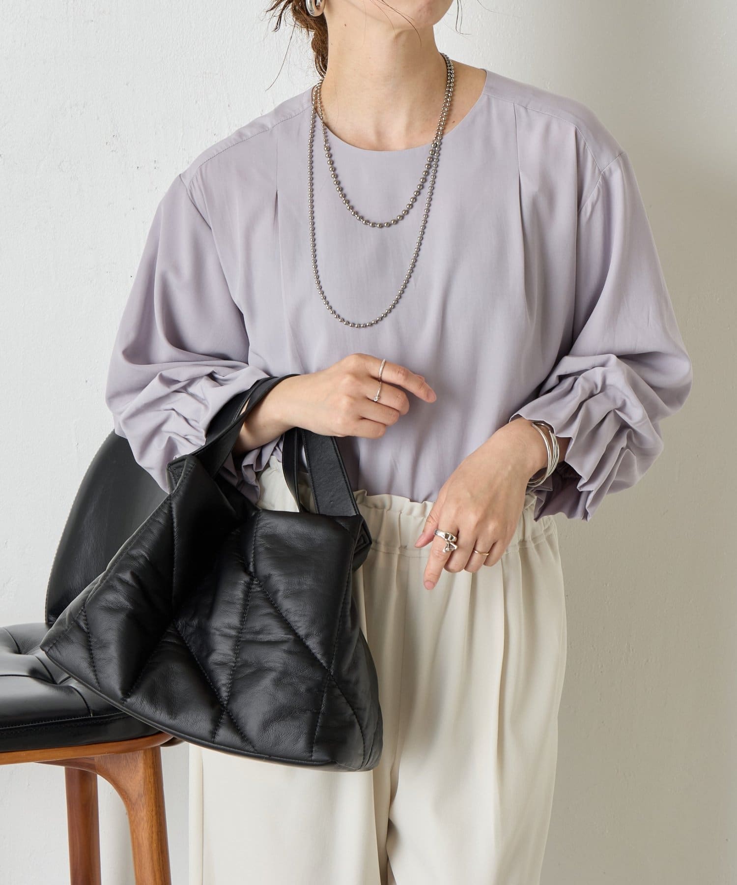 ・袖口にボリュームのあるギャザーとバックデザインにはタックが施された大人ブラウス。