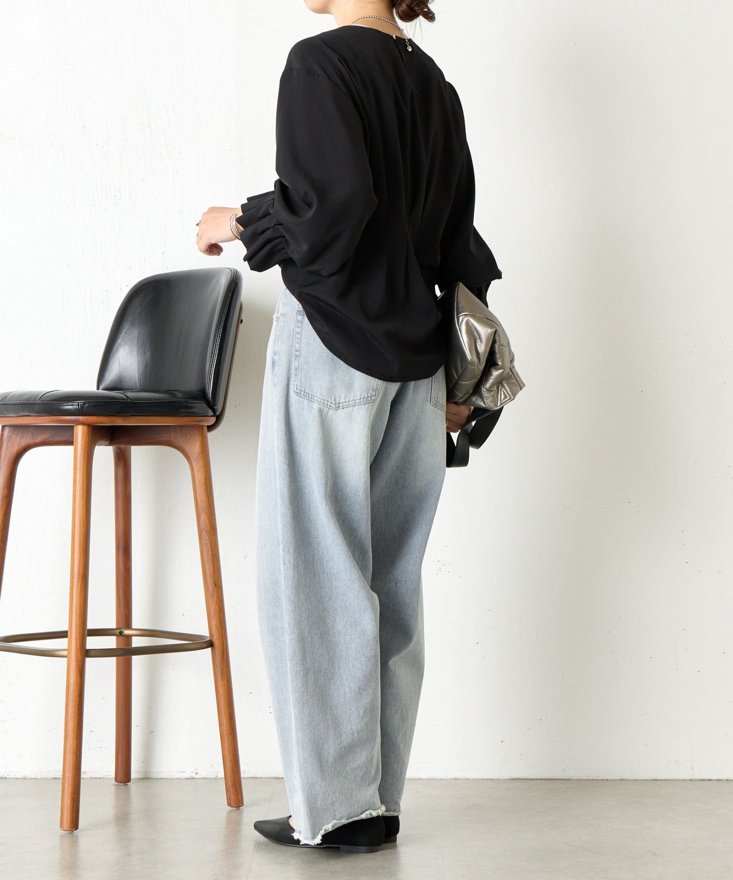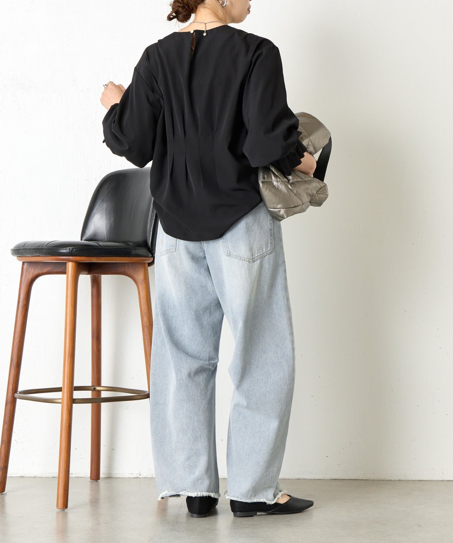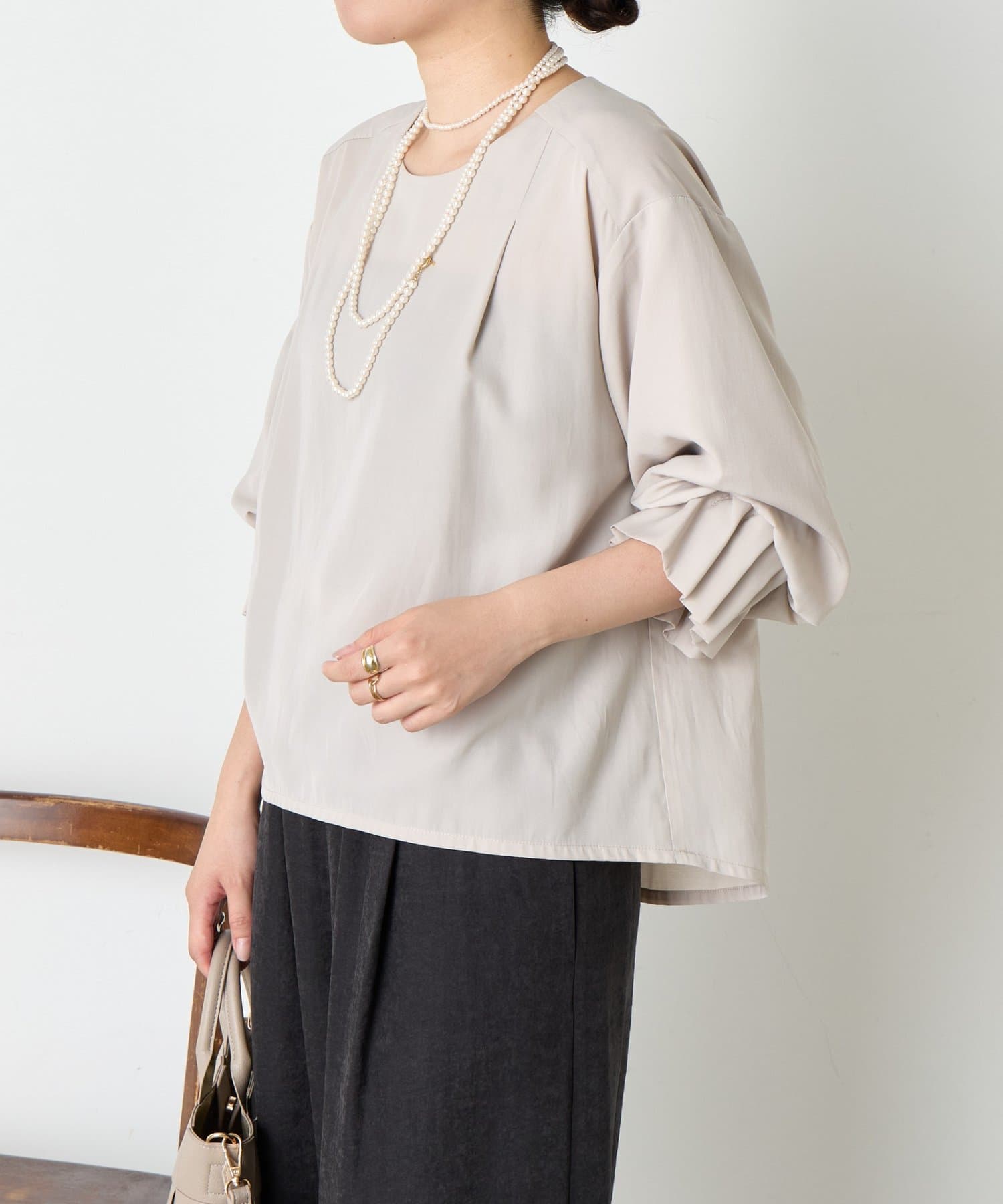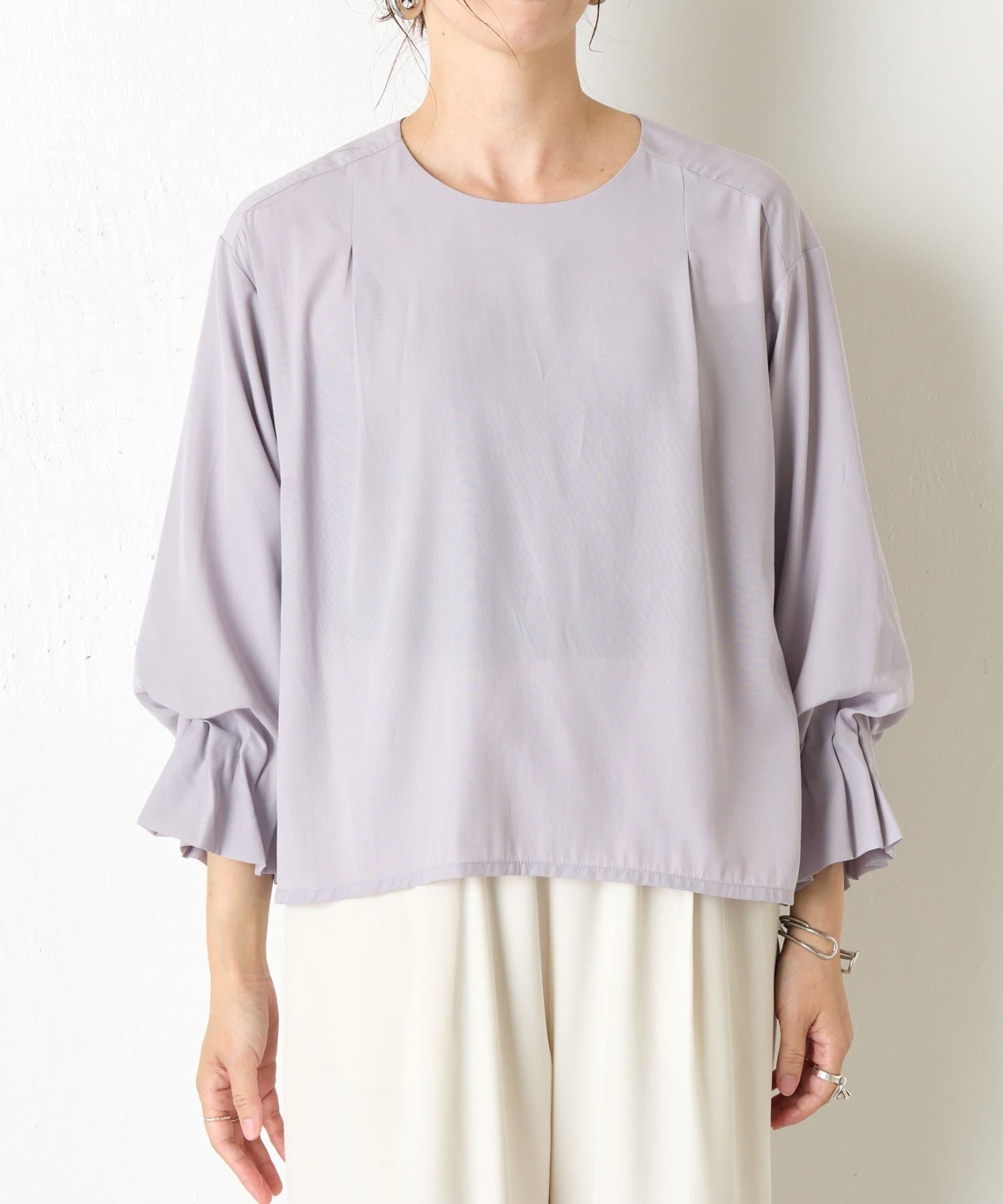 ・袖口にボリュームのあるギャザーとバックデザインにはタックが施された大人ブラウス。
