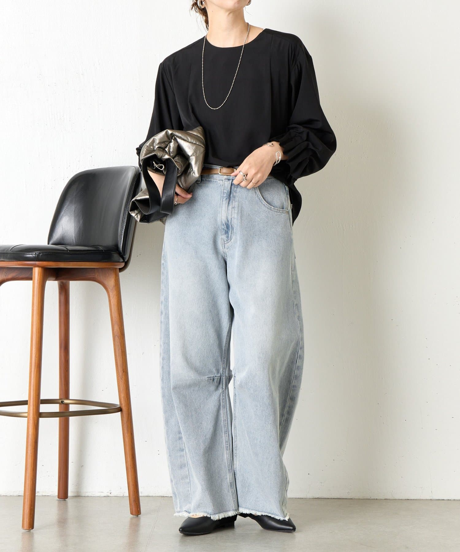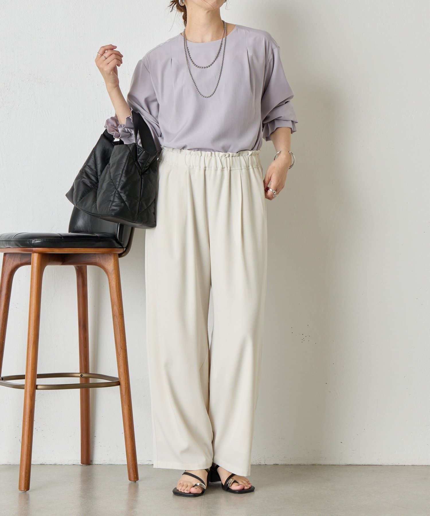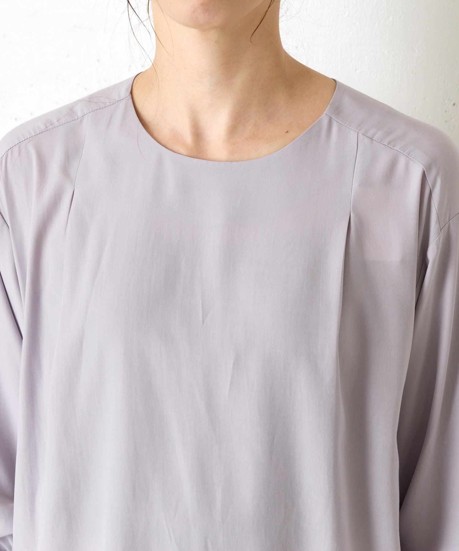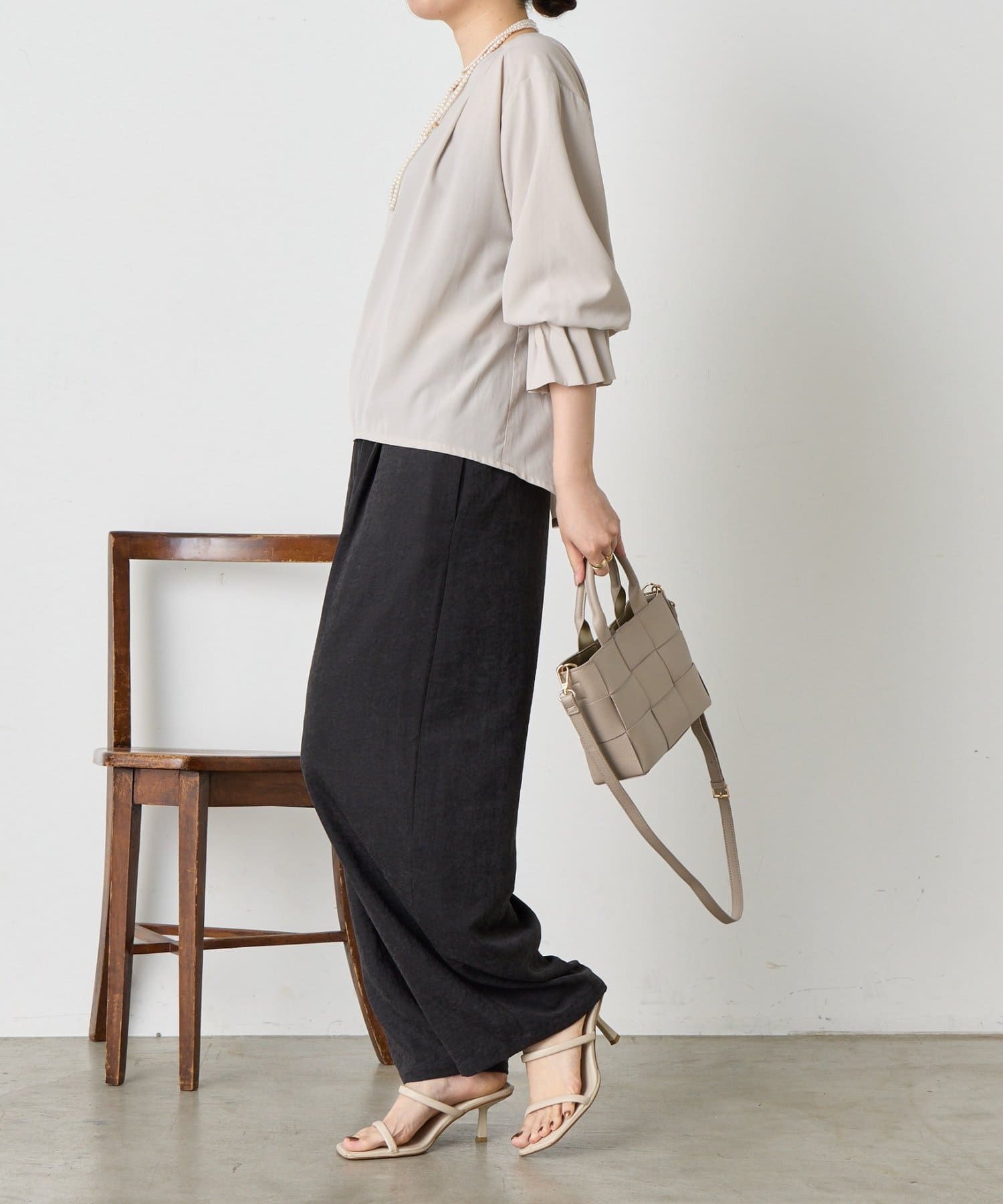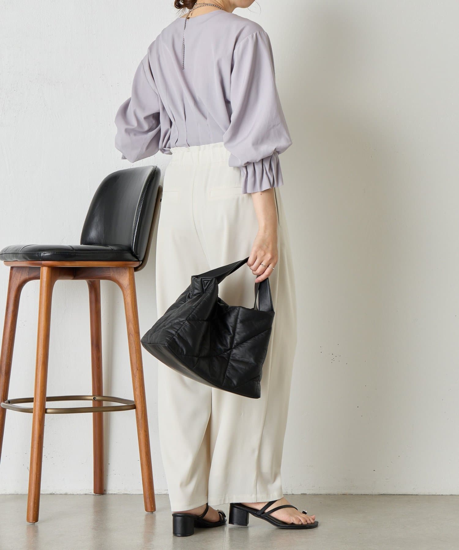 ・袖口にボリュームのあるギャザーとバックデザインにはタックが施された大人ブラウス。
