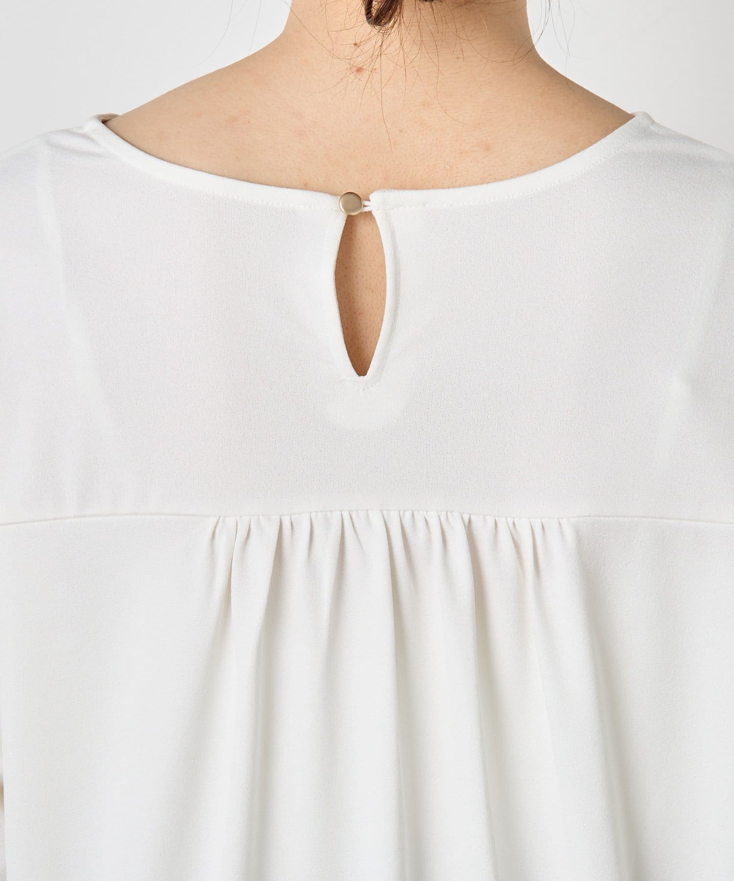 ・シワになりにくいカットジョーゼット素材を使用したシンプルブラウス。