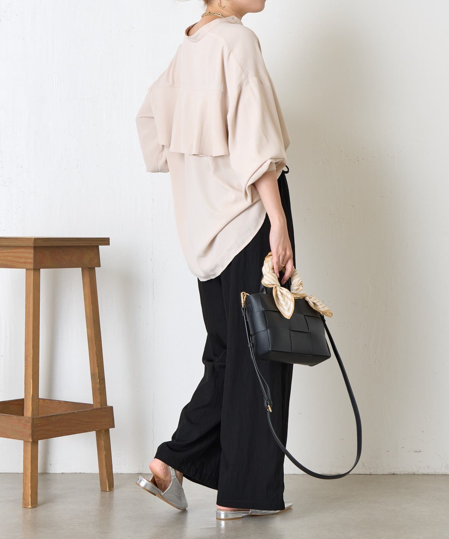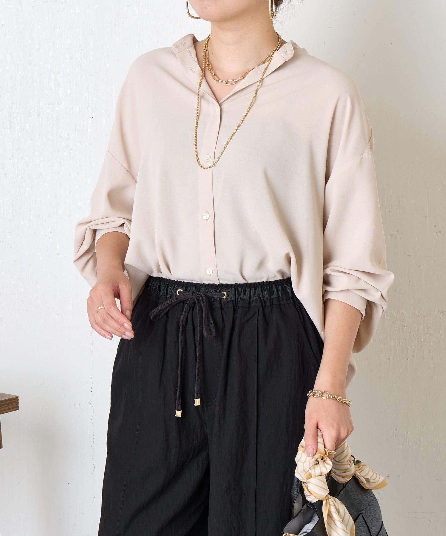 ・袖口はゴムで少し手首を見せて抜け感をつくるとこなれた着こなしに。
