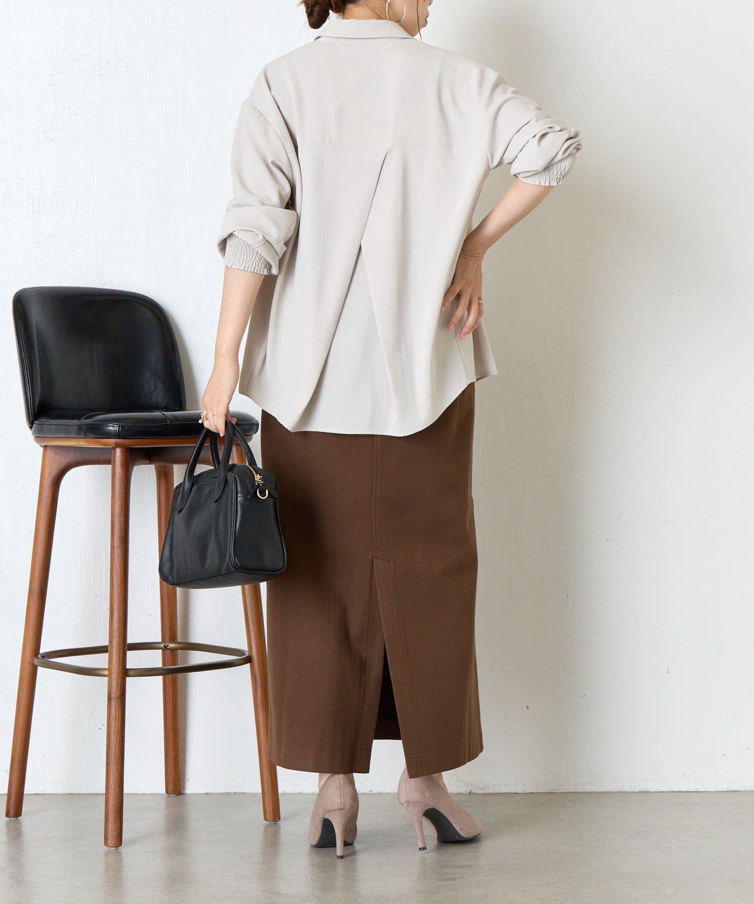 ・ニュアンスのあるカラーと、ゆったりとしたシルエットが、大人の余裕を感じさせる一枚。