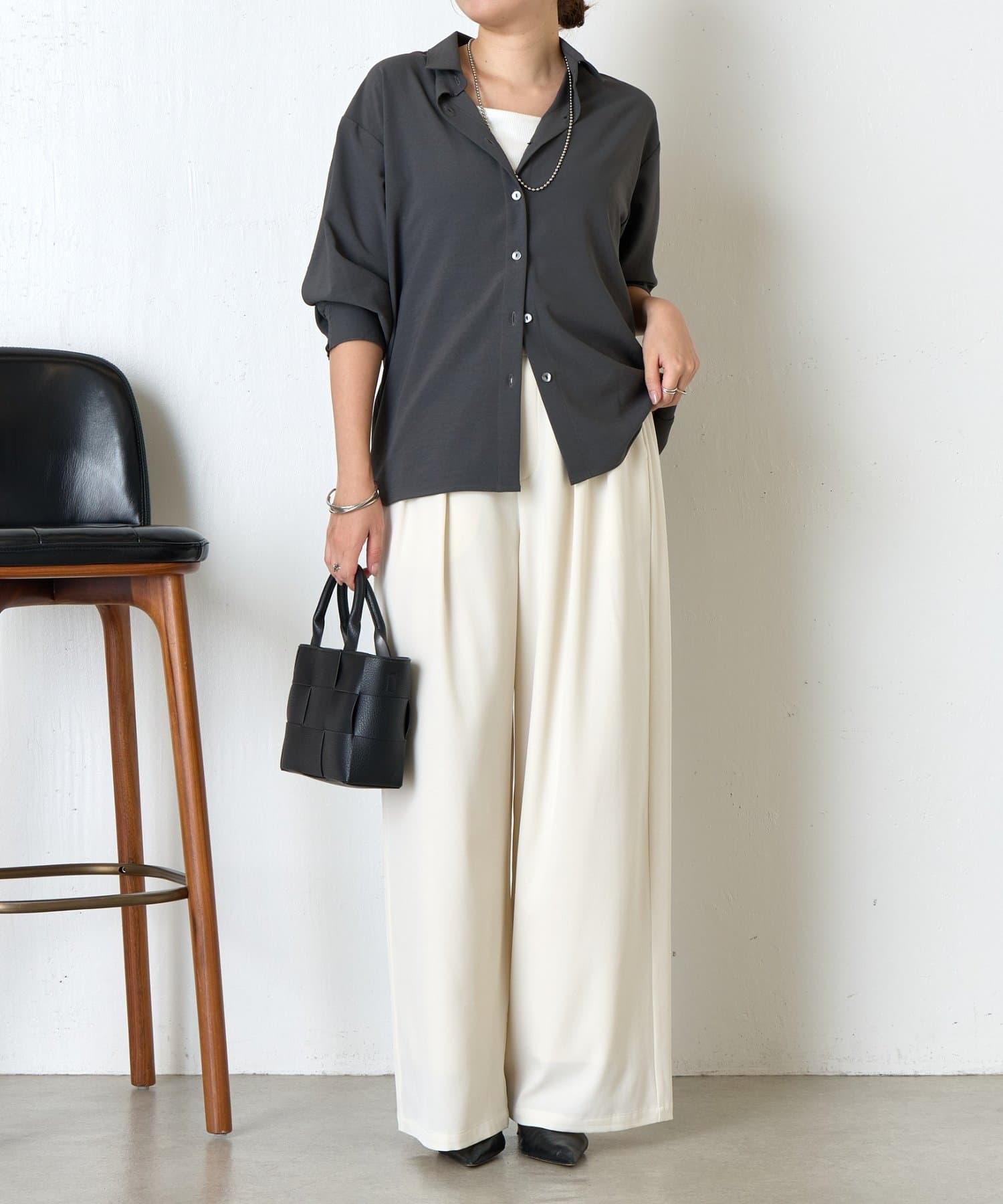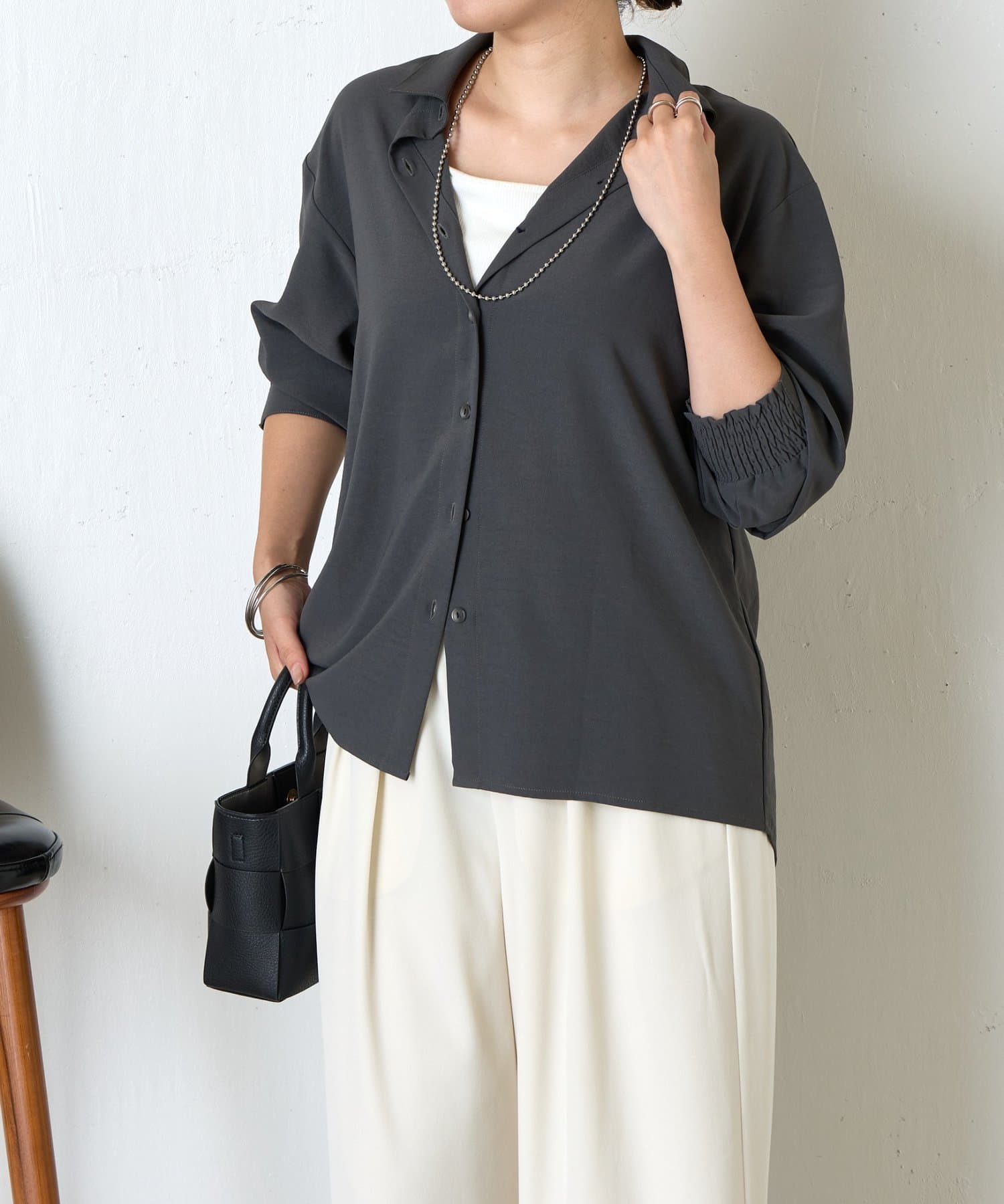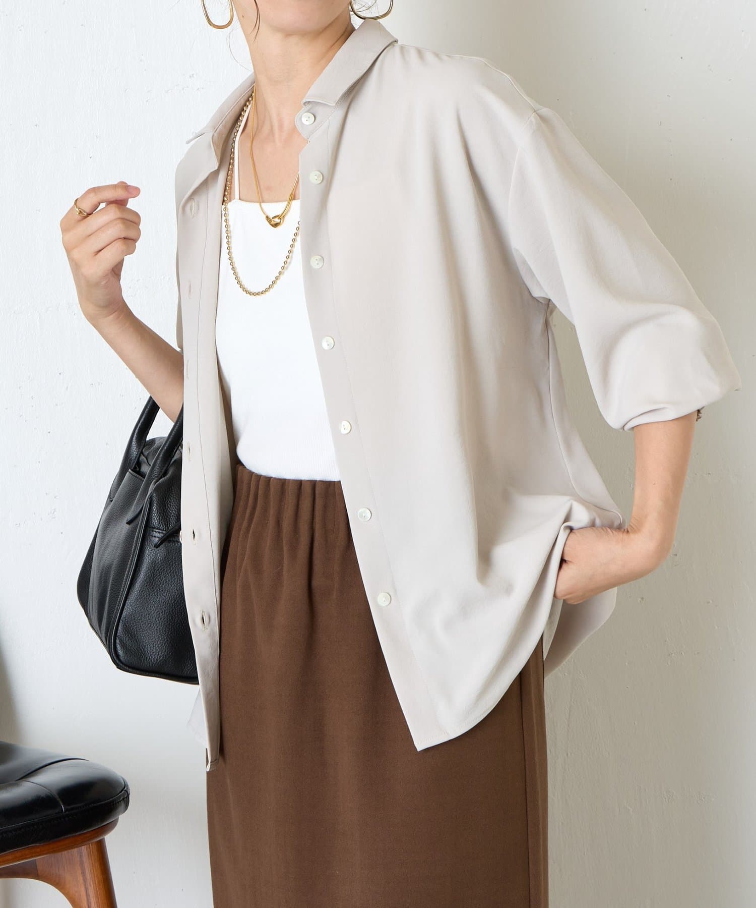 ・ニュアンスのあるカラーと、ゆったりとしたシルエットが、大人の余裕を感じさせる一枚。