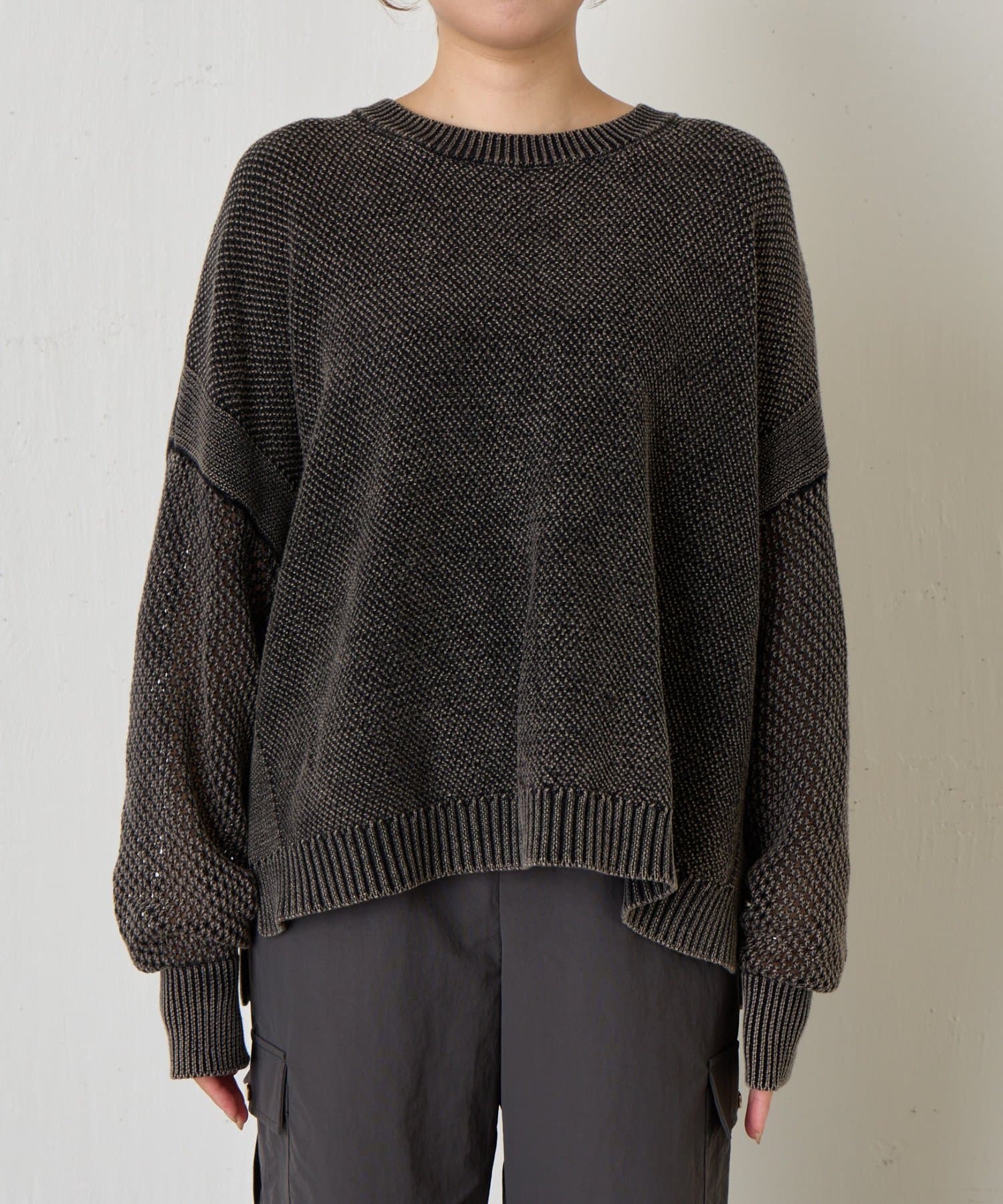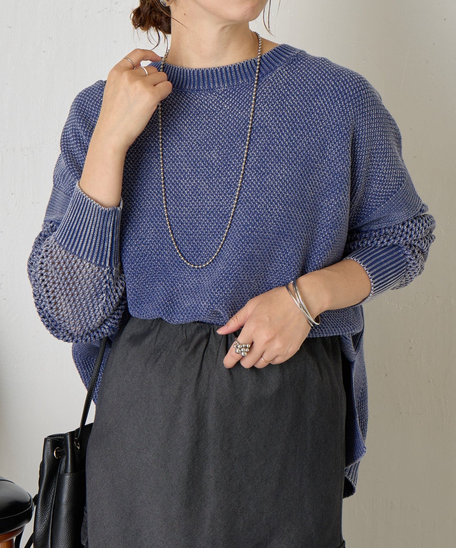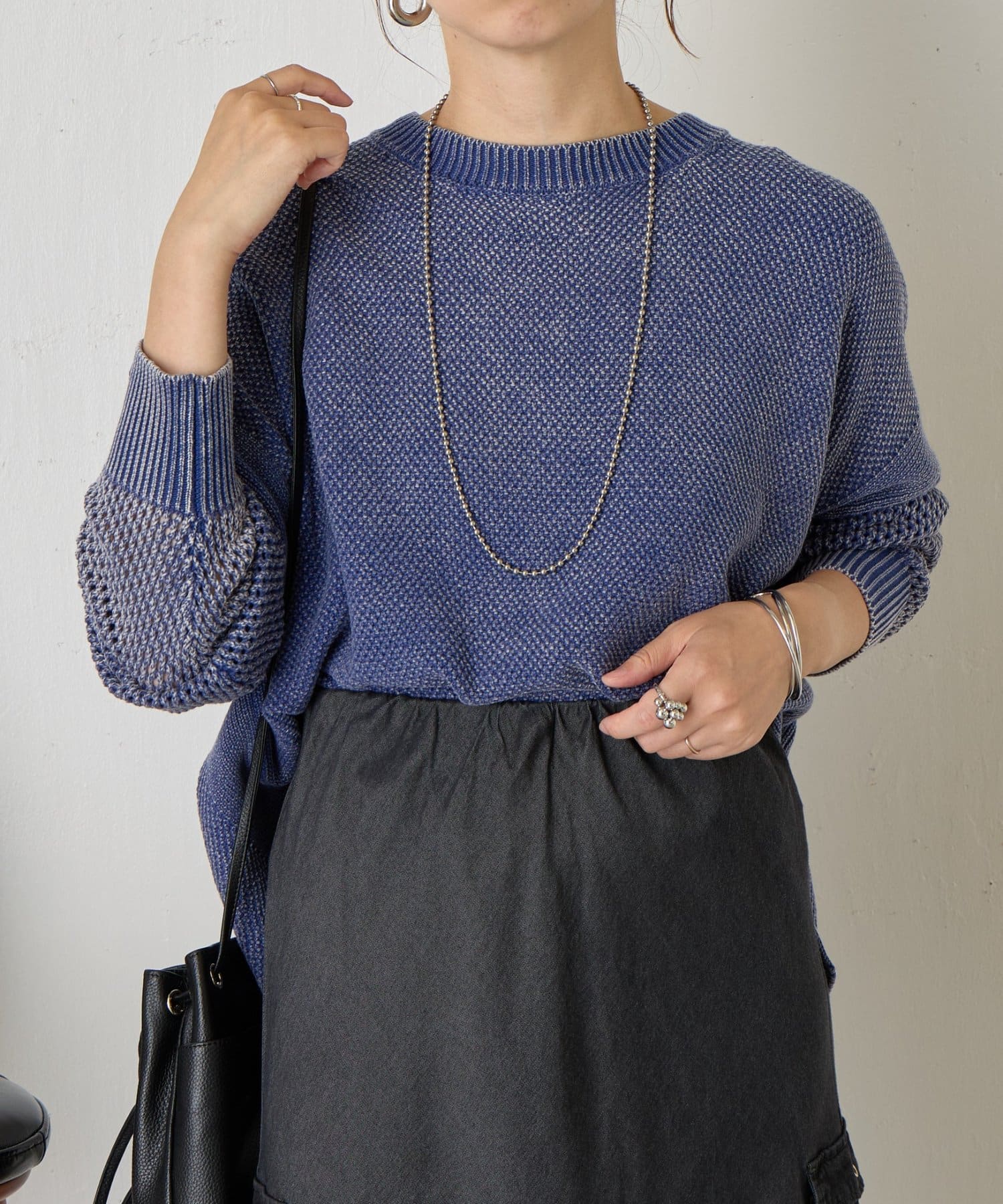 ・袖部分は目の粗いデザインで抜け感をプラス。シンプルながら奥行きのあるこだわりのデザイン。