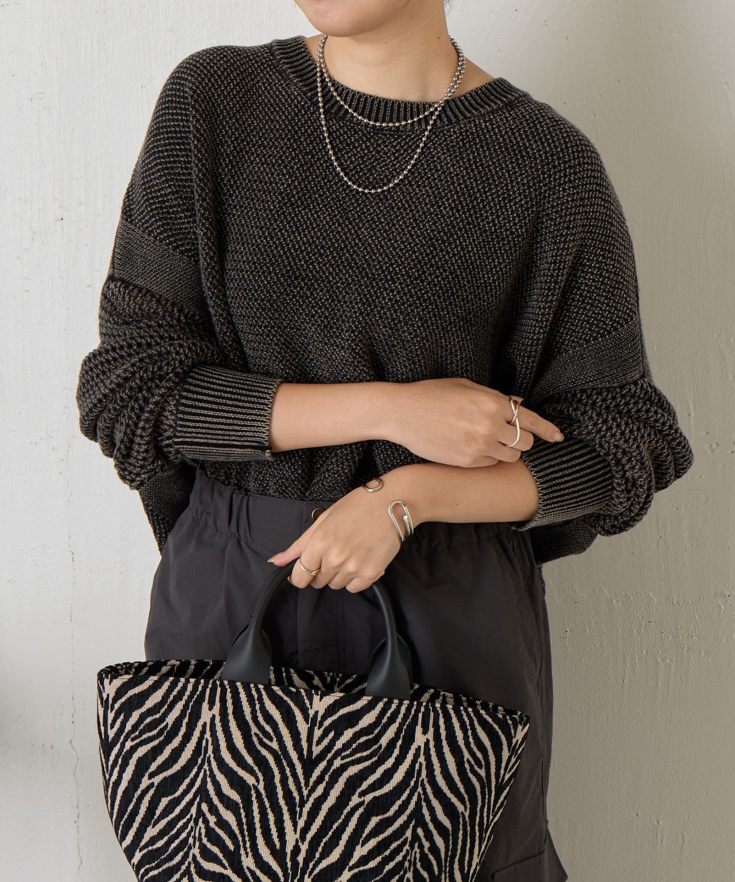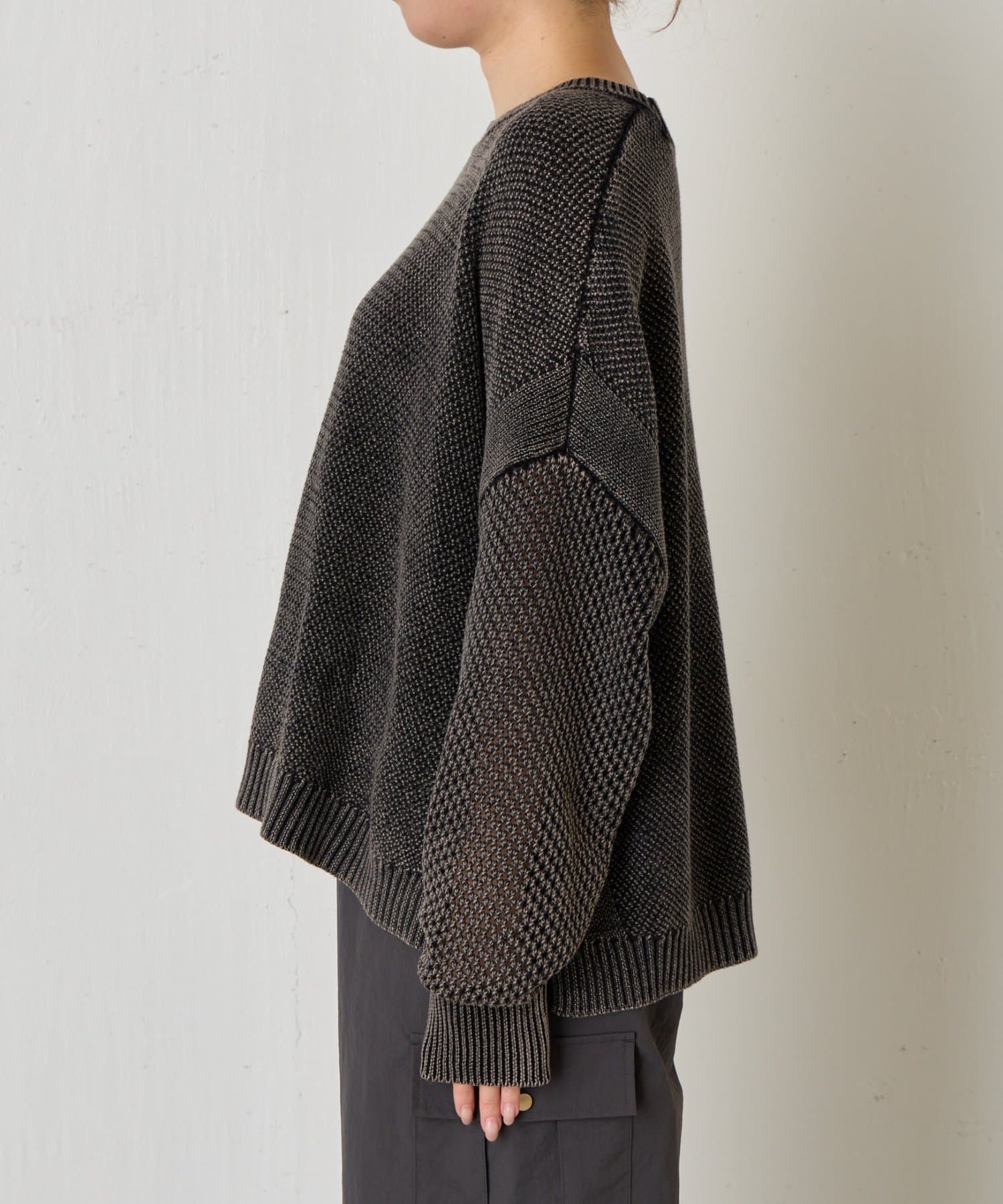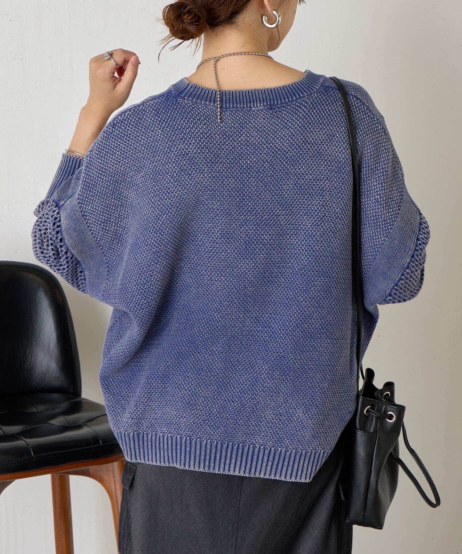 ・袖部分は目の粗いデザインで抜け感をプラス。シンプルながら奥行きのあるこだわりのデザイン。