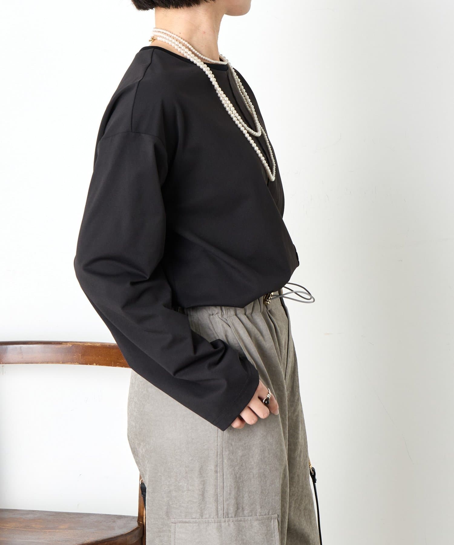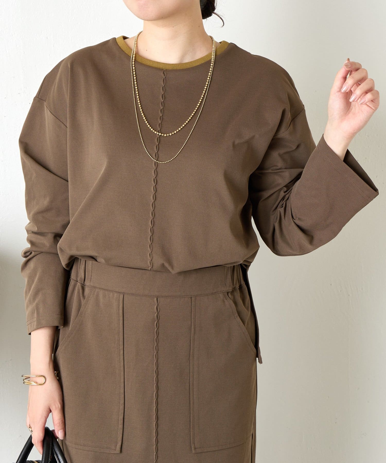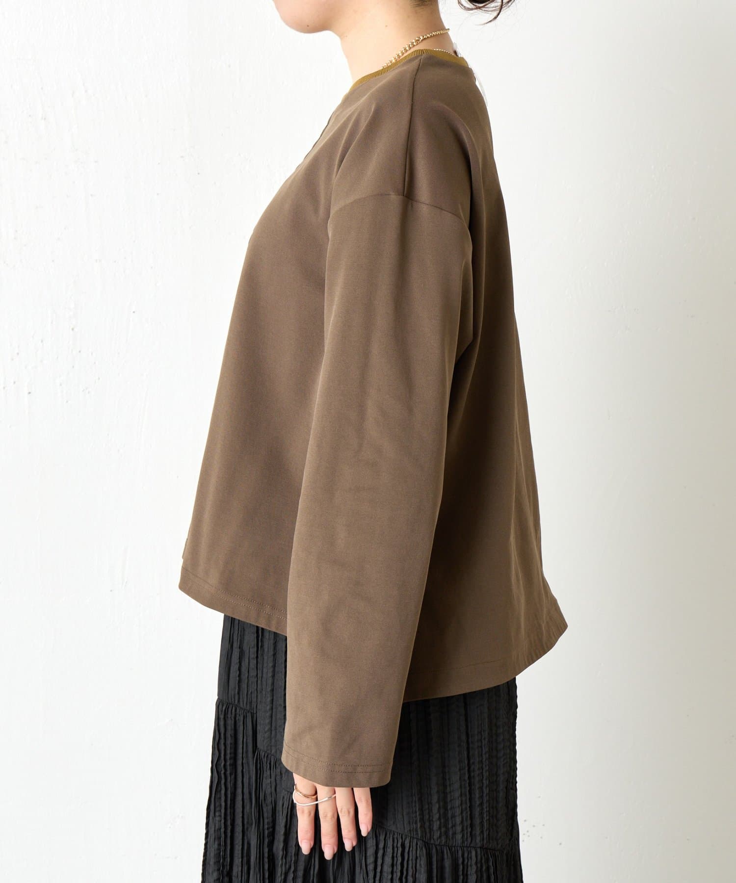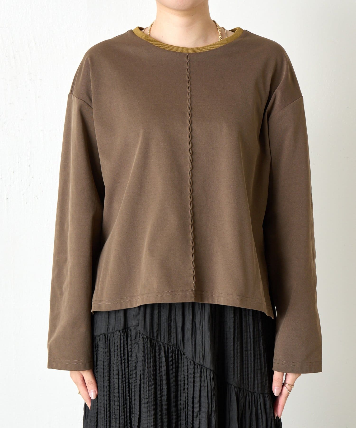 ・襟リブがカジュアルな印象をプラスし、センターラインにはさりげないピンタックのデザインを施したカットソー。