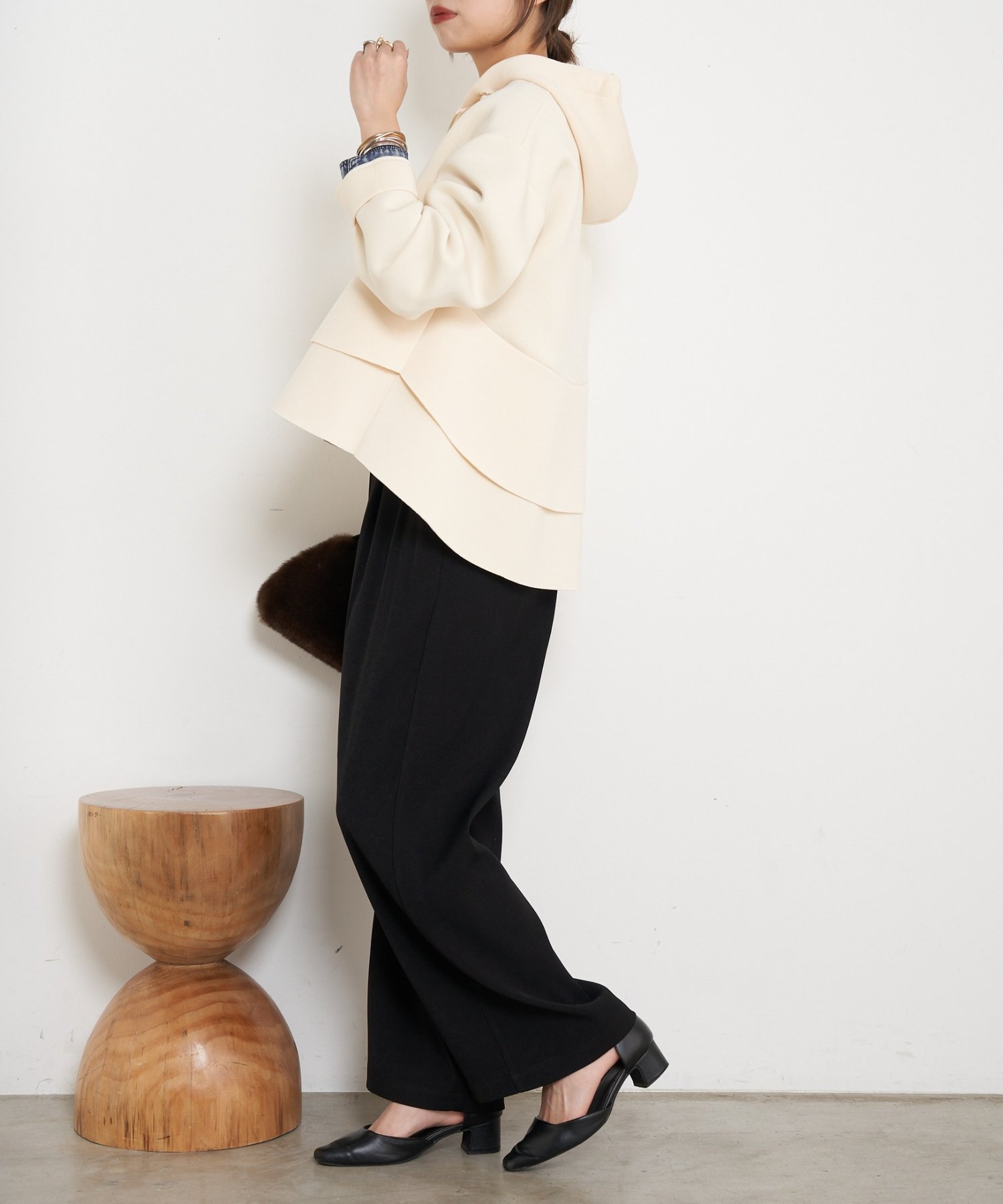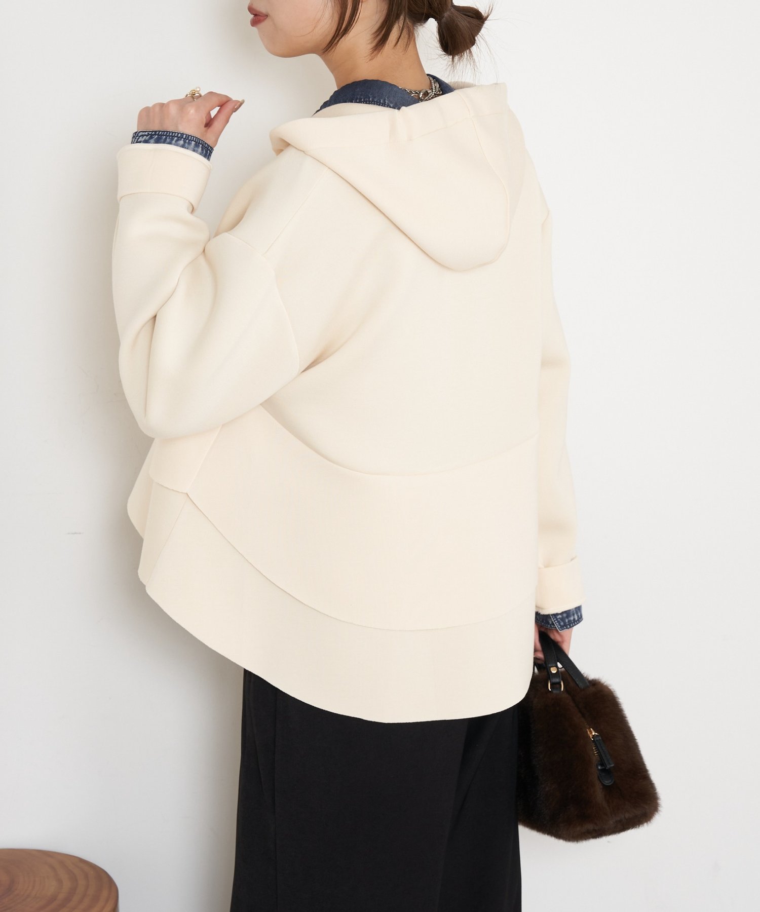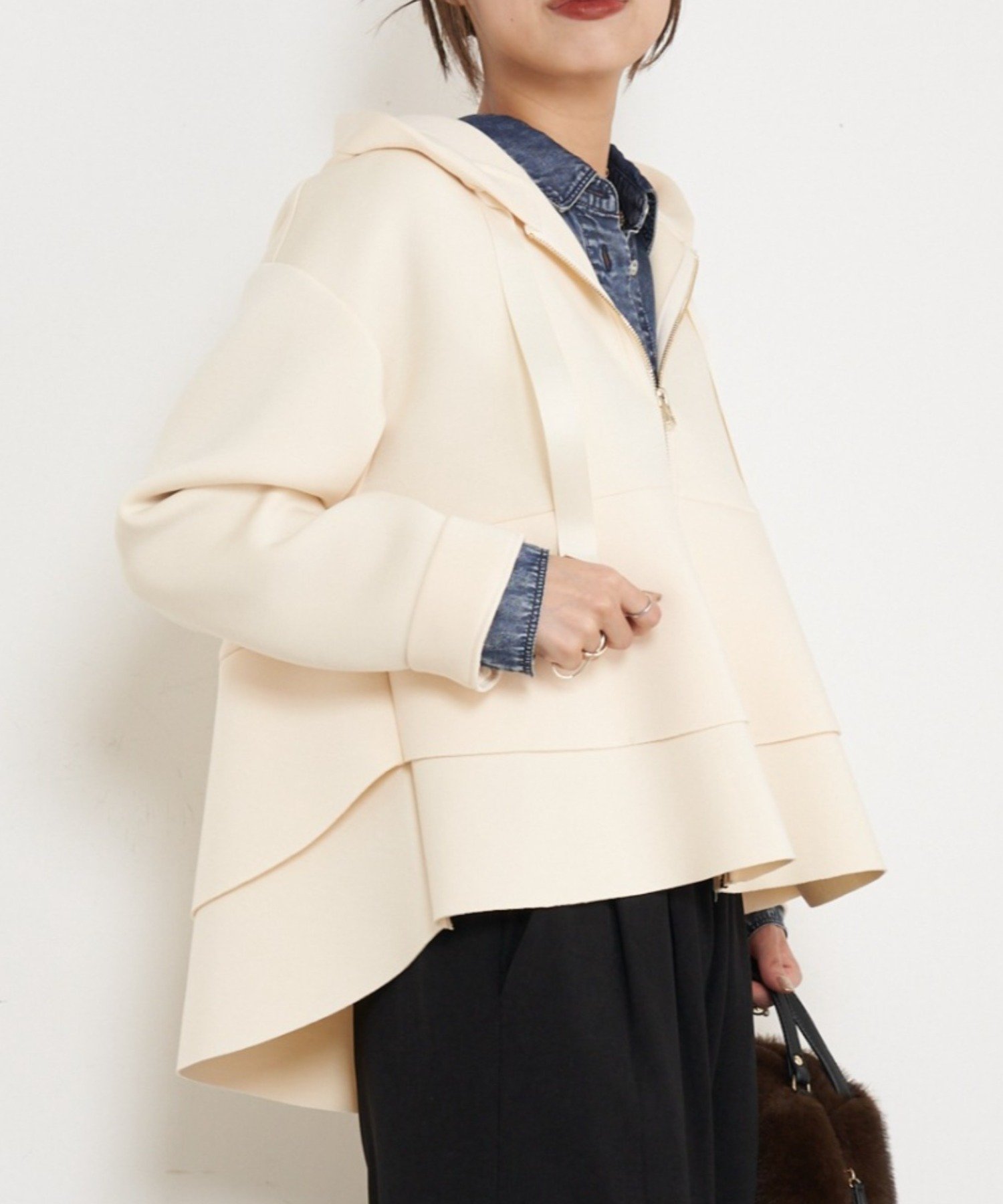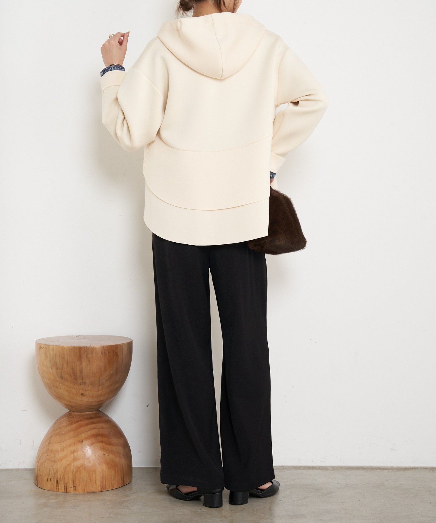 ・ウエストからふんわりと広がる二段のフリルデザインが、女性らしい柔らかさと動きを演出してくれるフード付きパーカー。