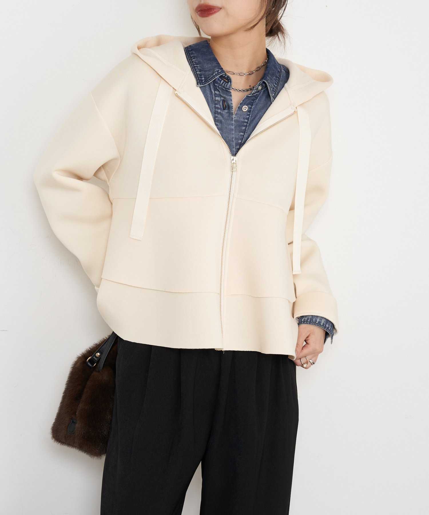 フェミニンさとカジュアルさを絶妙に融合させた、大人のためのフーディー