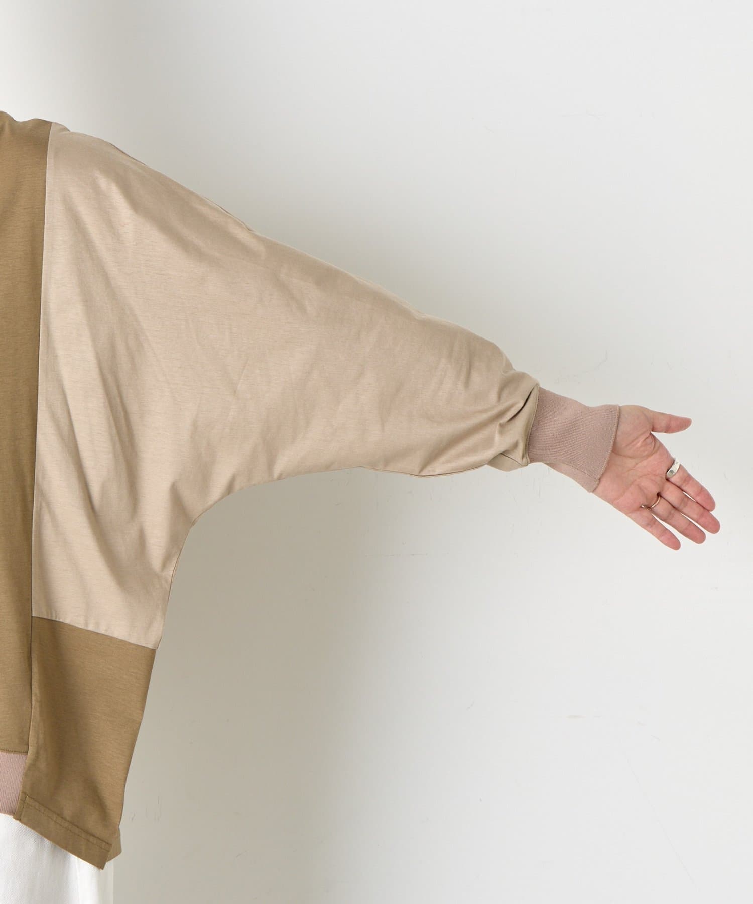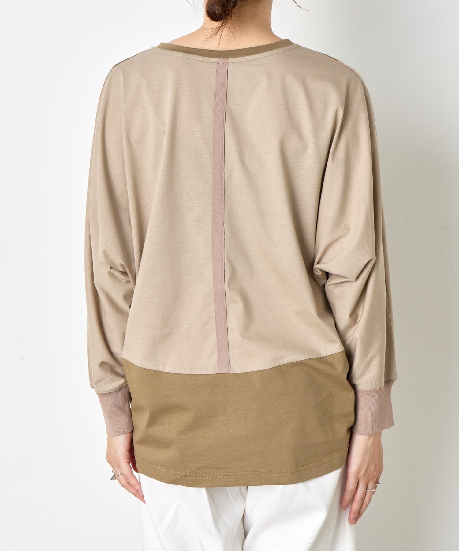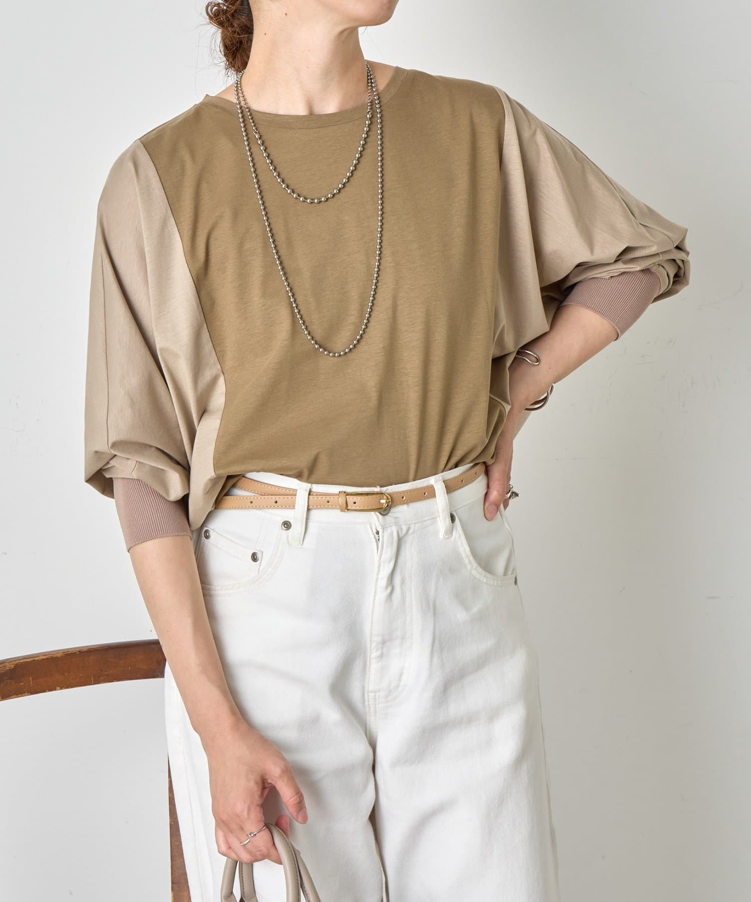 ・ナチュラルな配色とドルマンスリーブのリラックス感が魅力のカットソー。