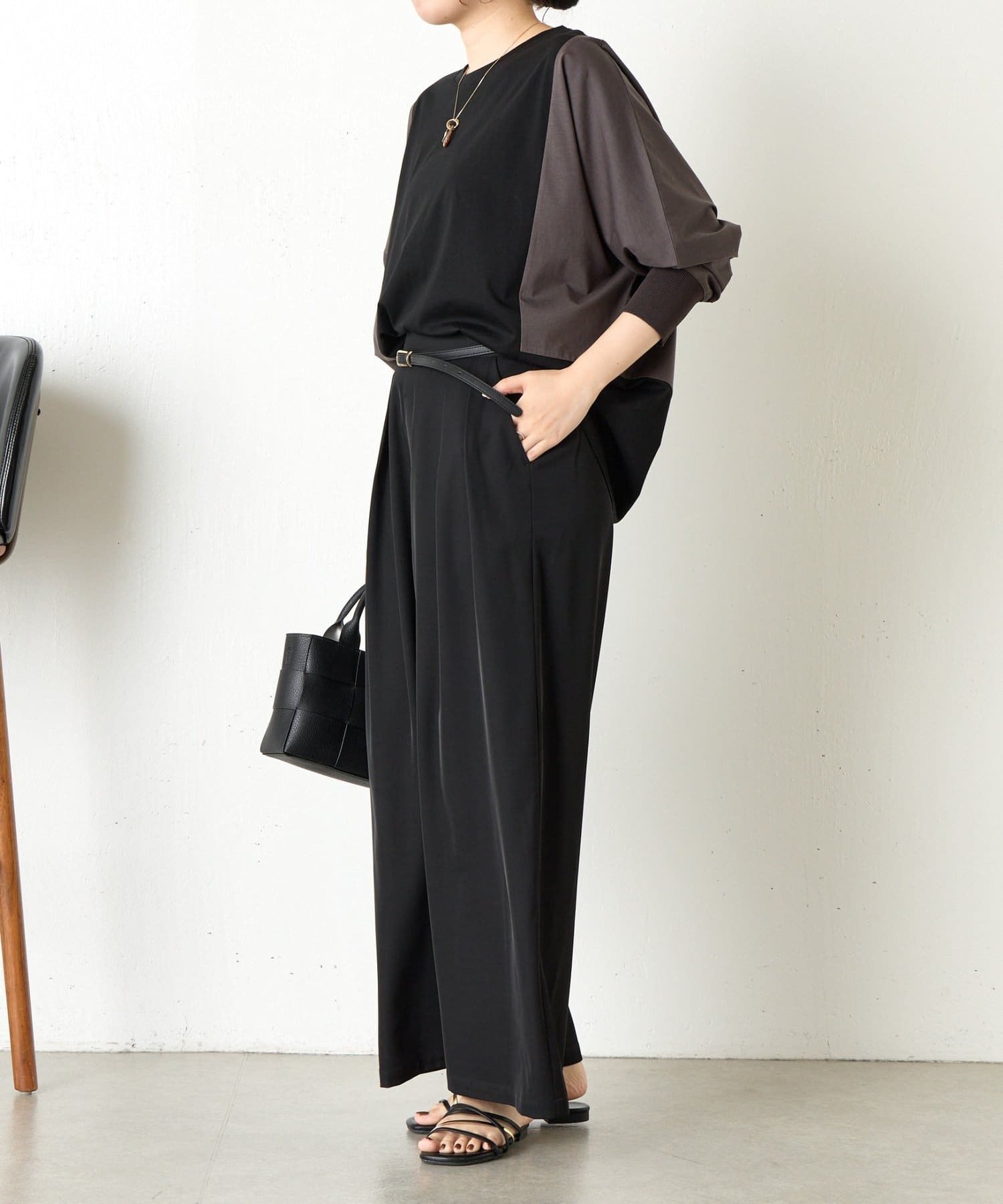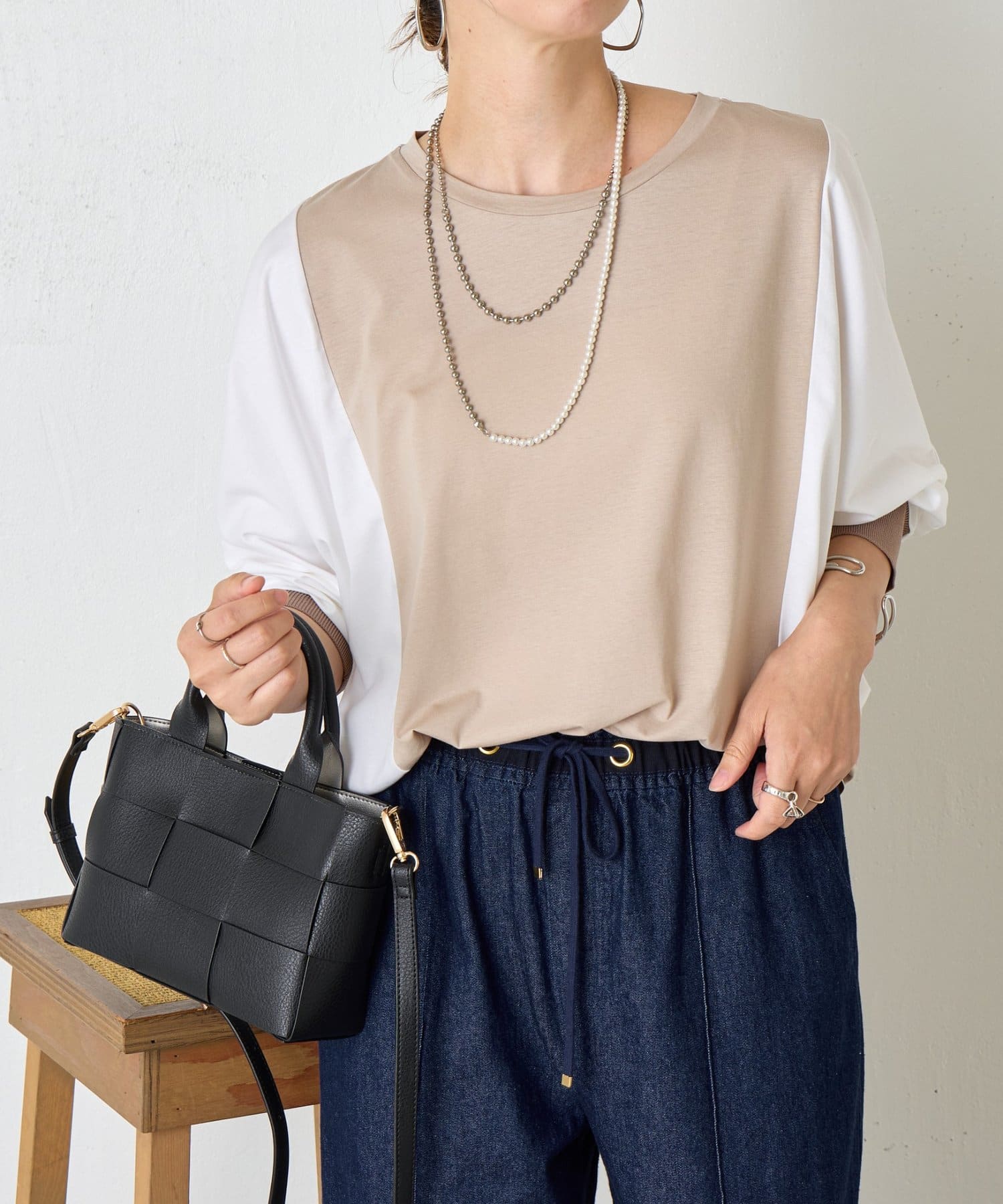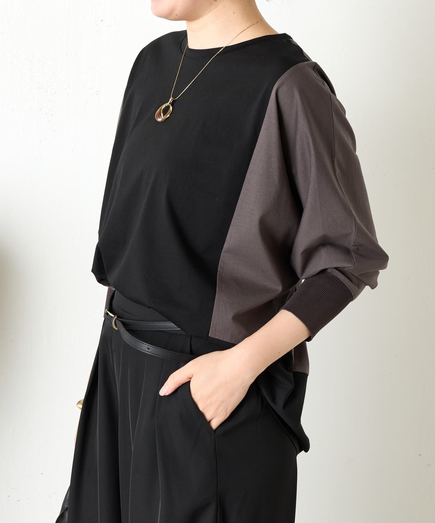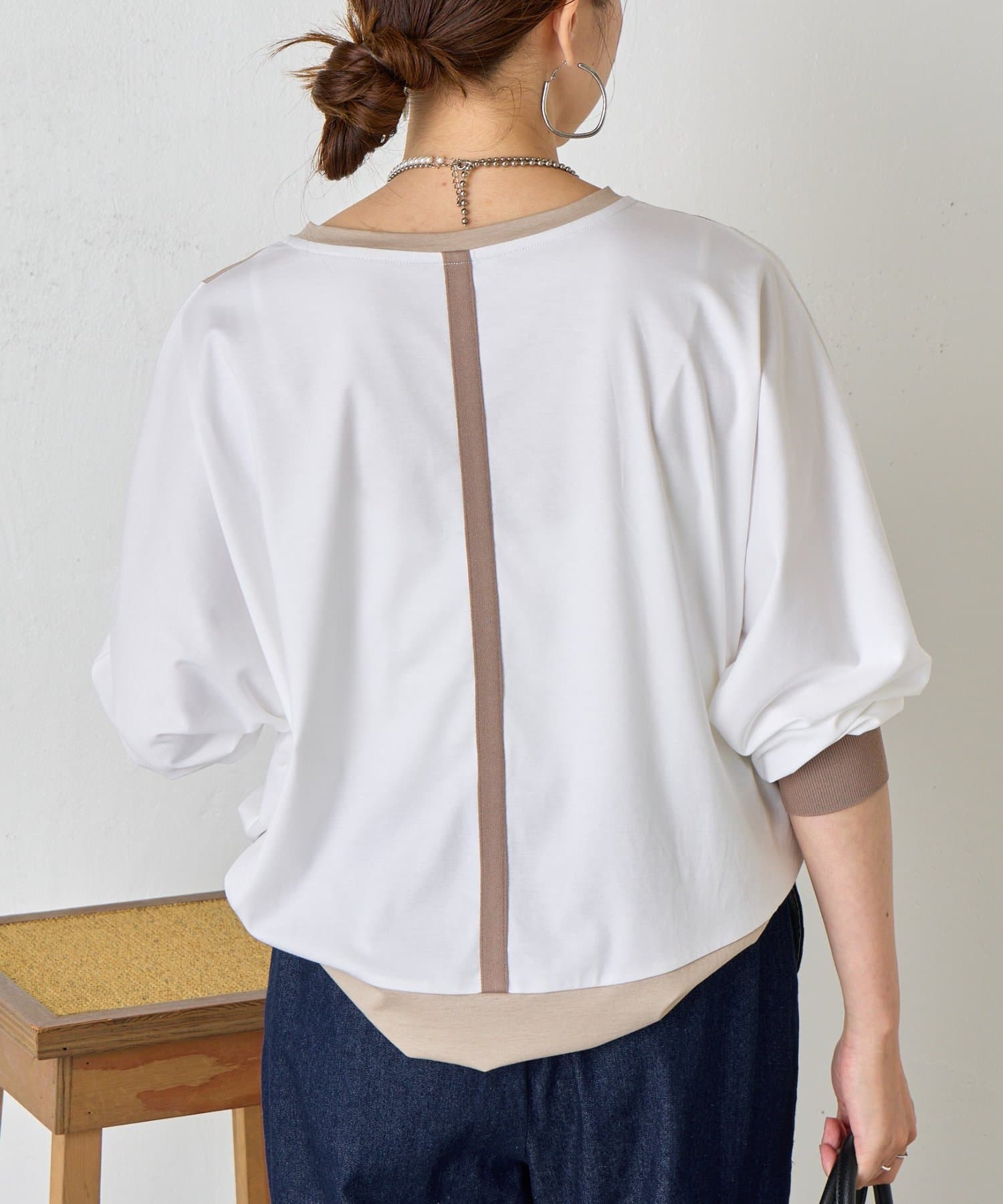 ・ナチュラルな配色とドルマンスリーブのリラックス感が魅力のカットソー。