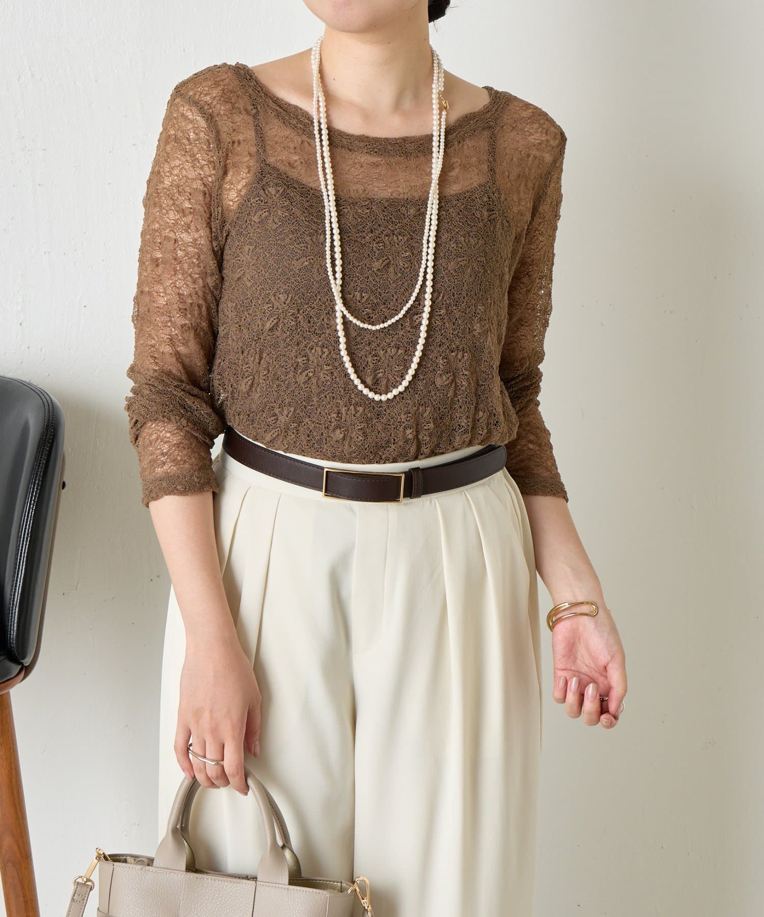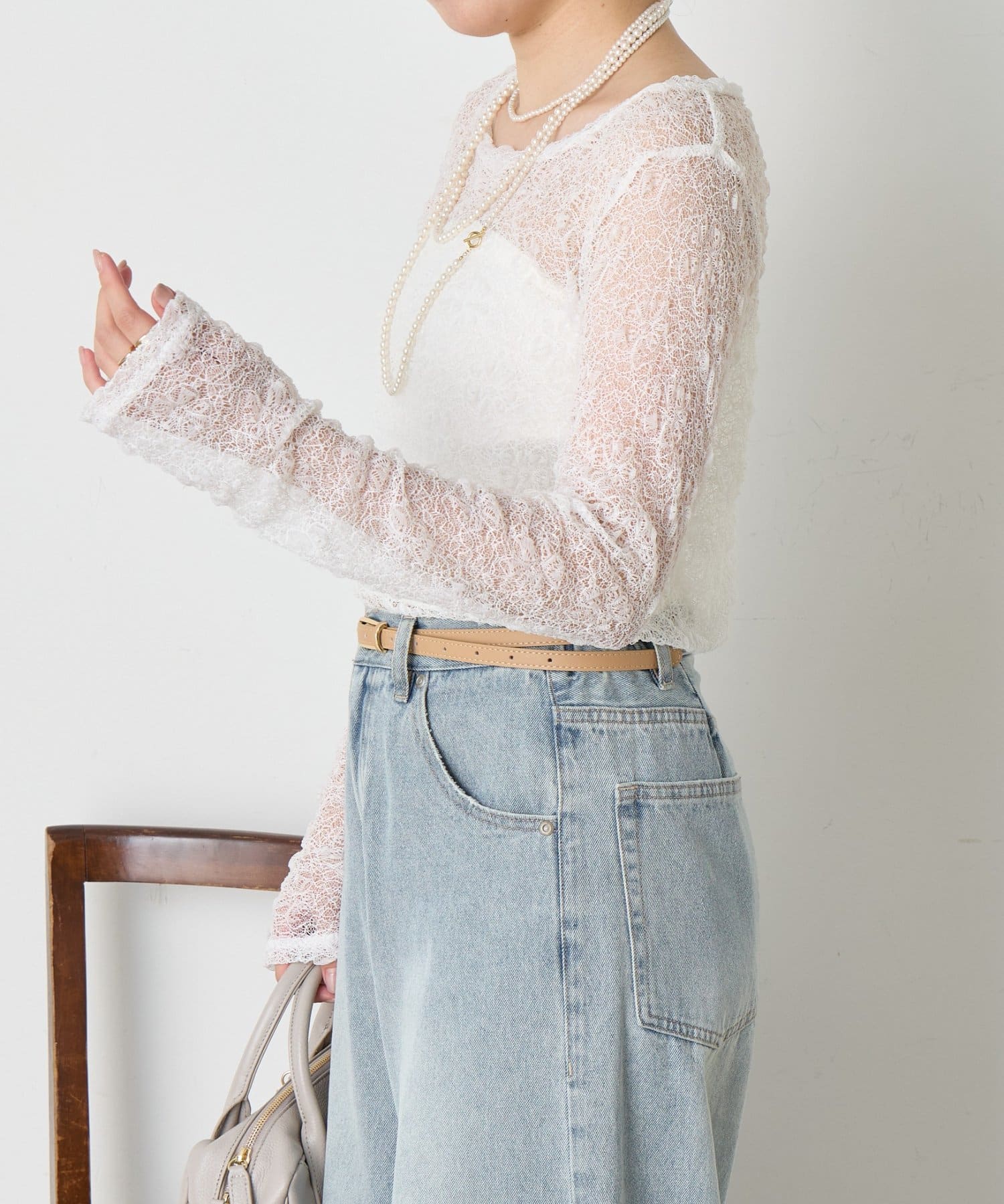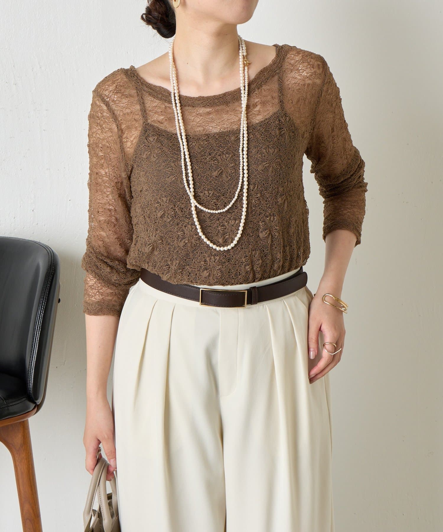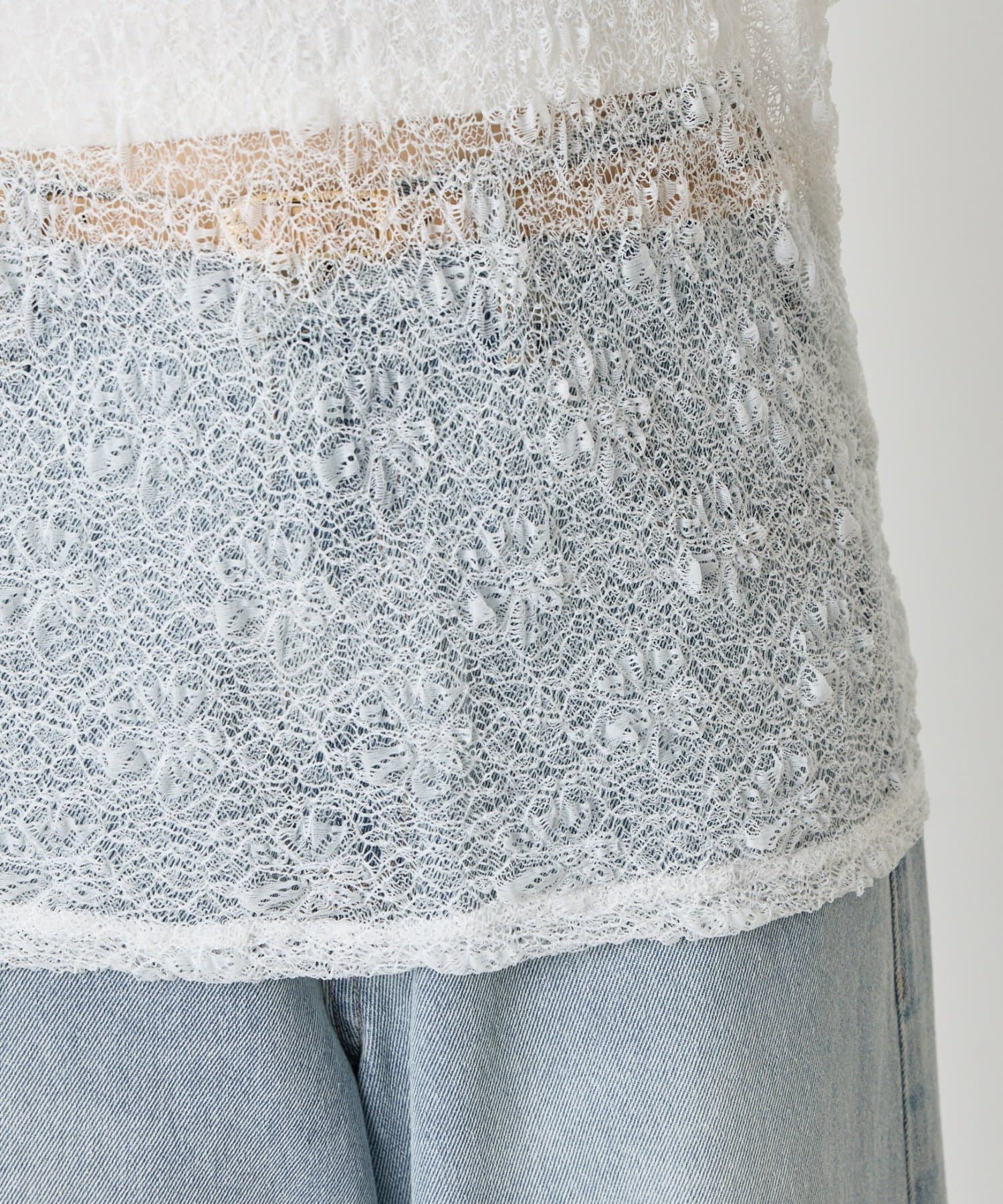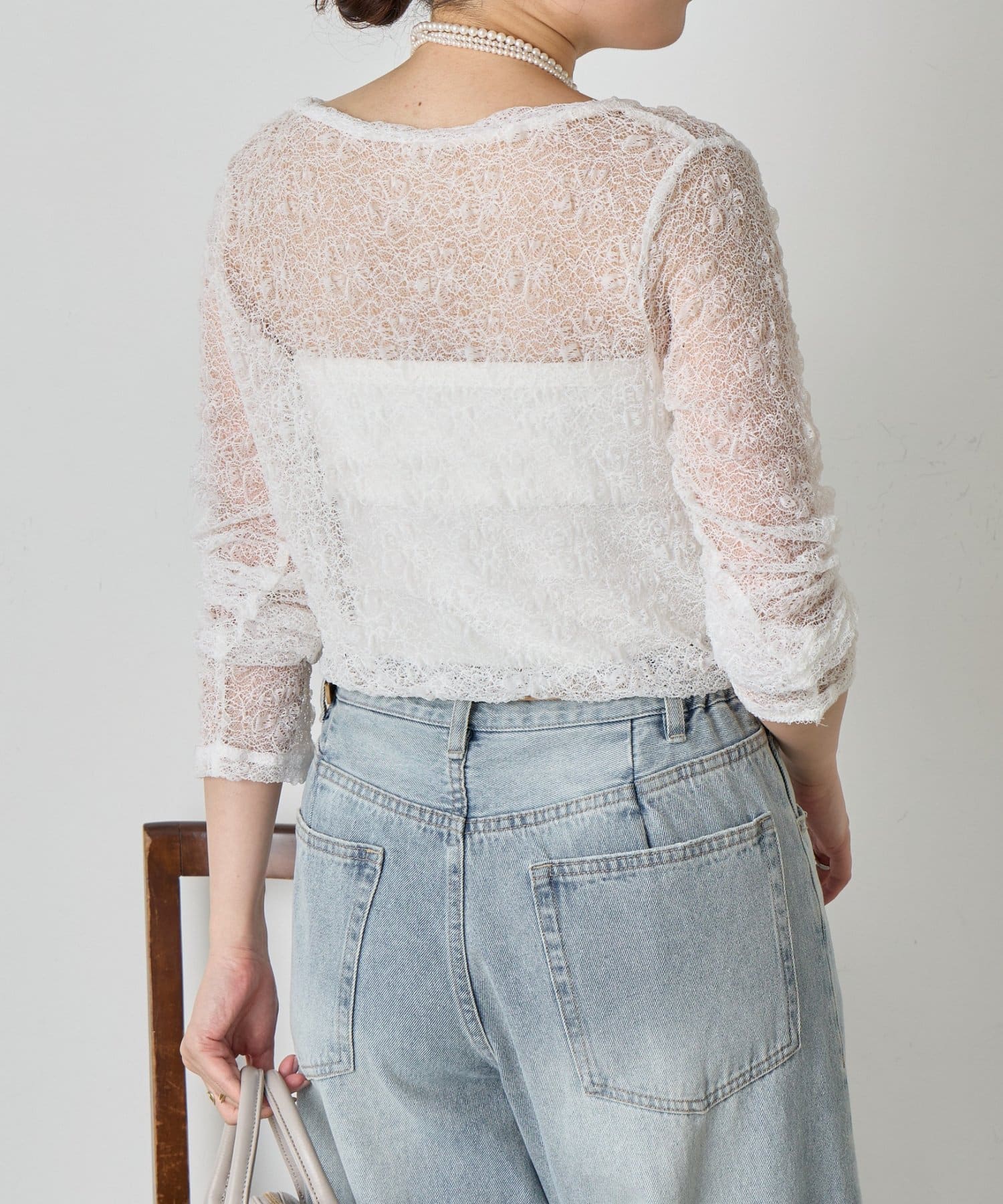 ・透け感のあるレースが、普段のコーデをワンランク上げるシアートップス。