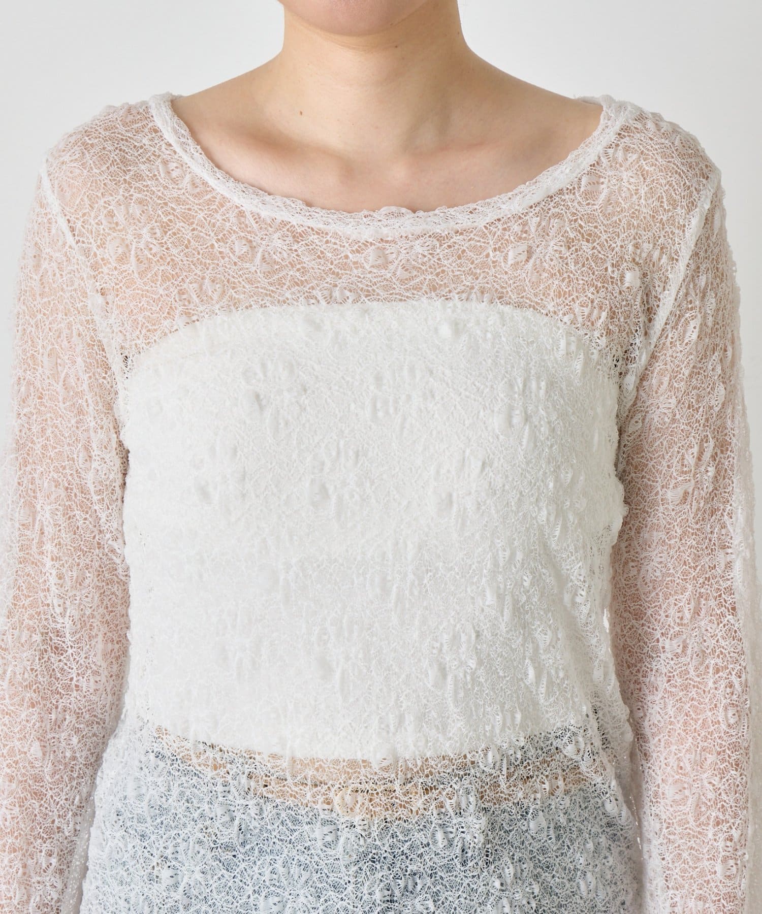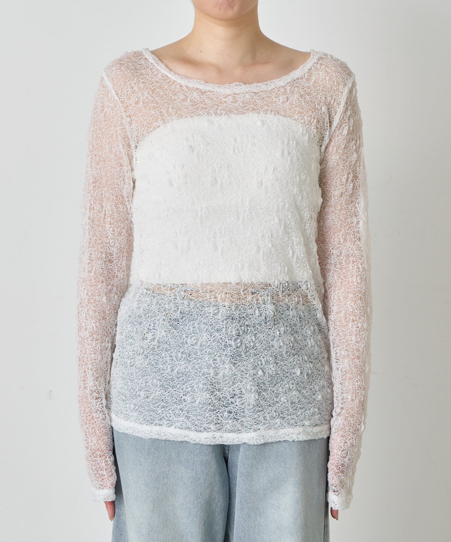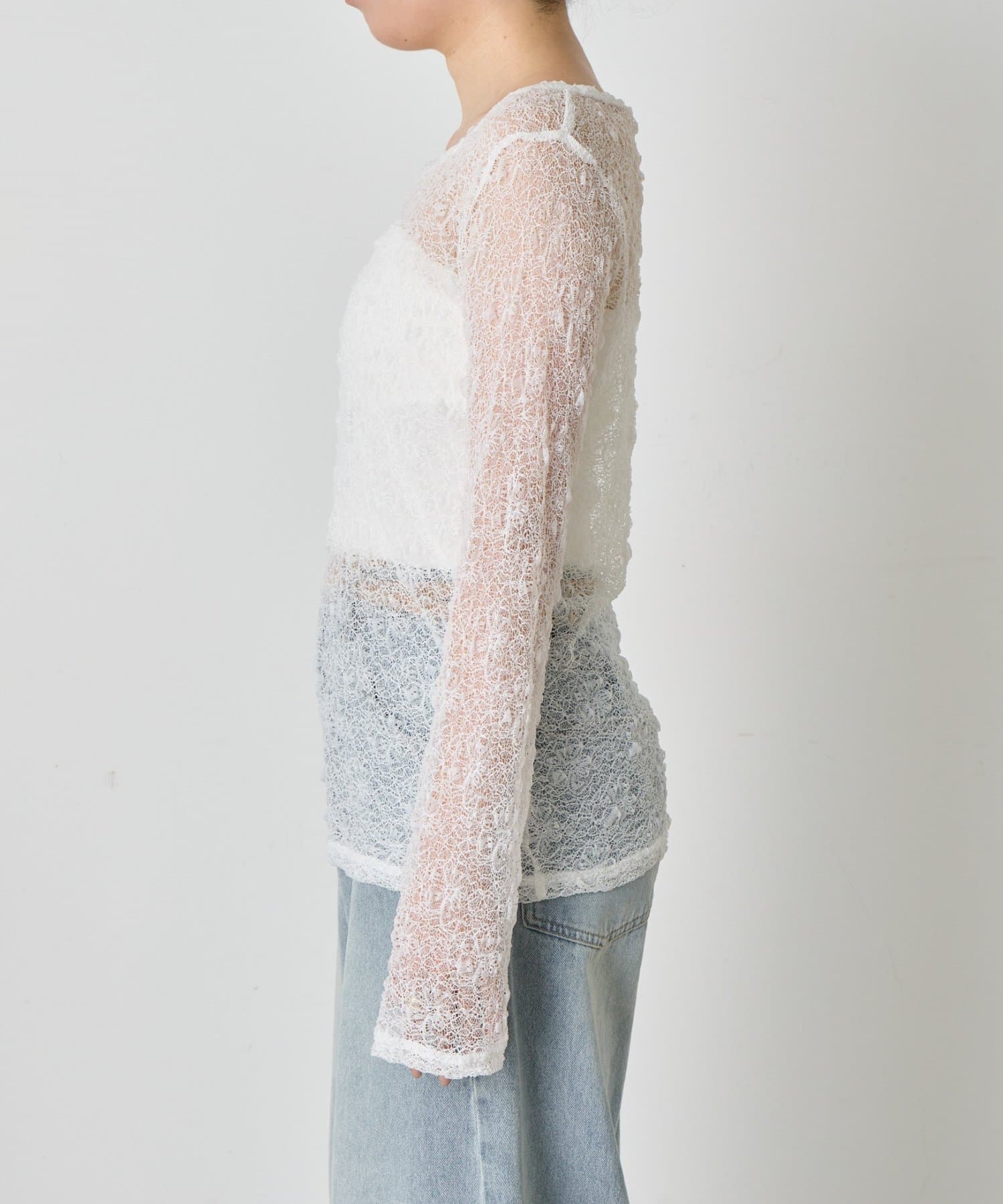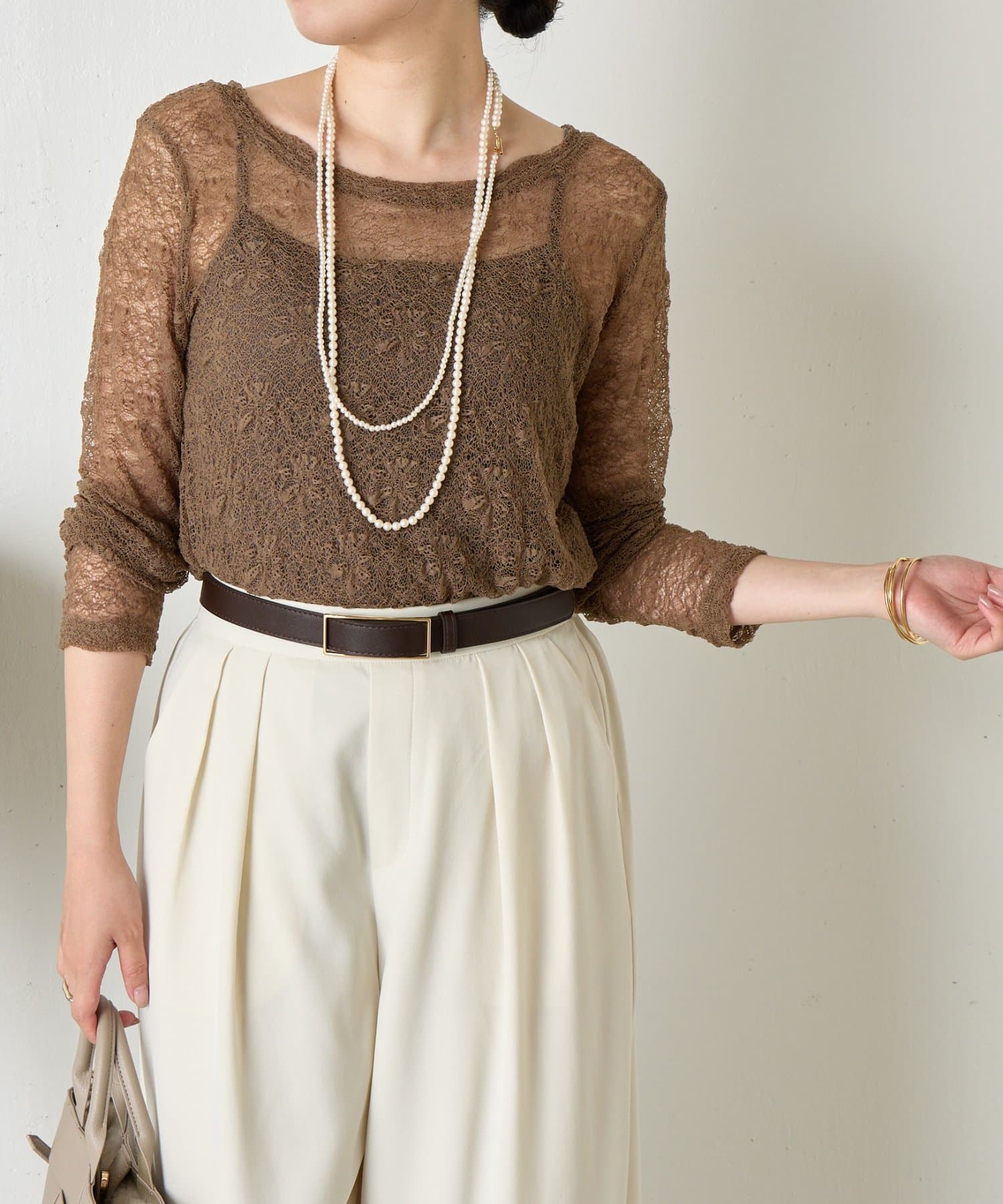 ・透け感のあるレースが、普段のコーデをワンランク上げるシアートップス。