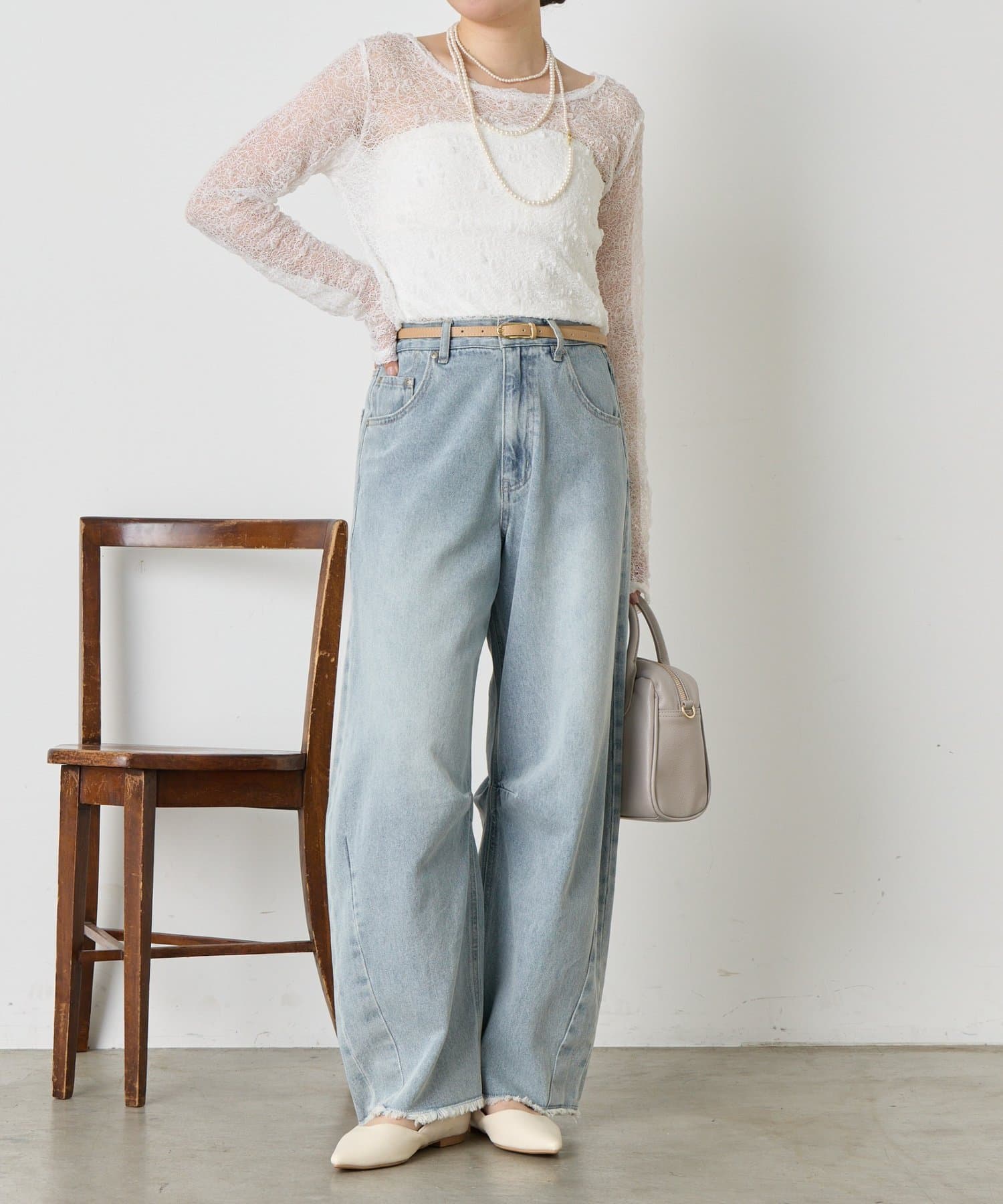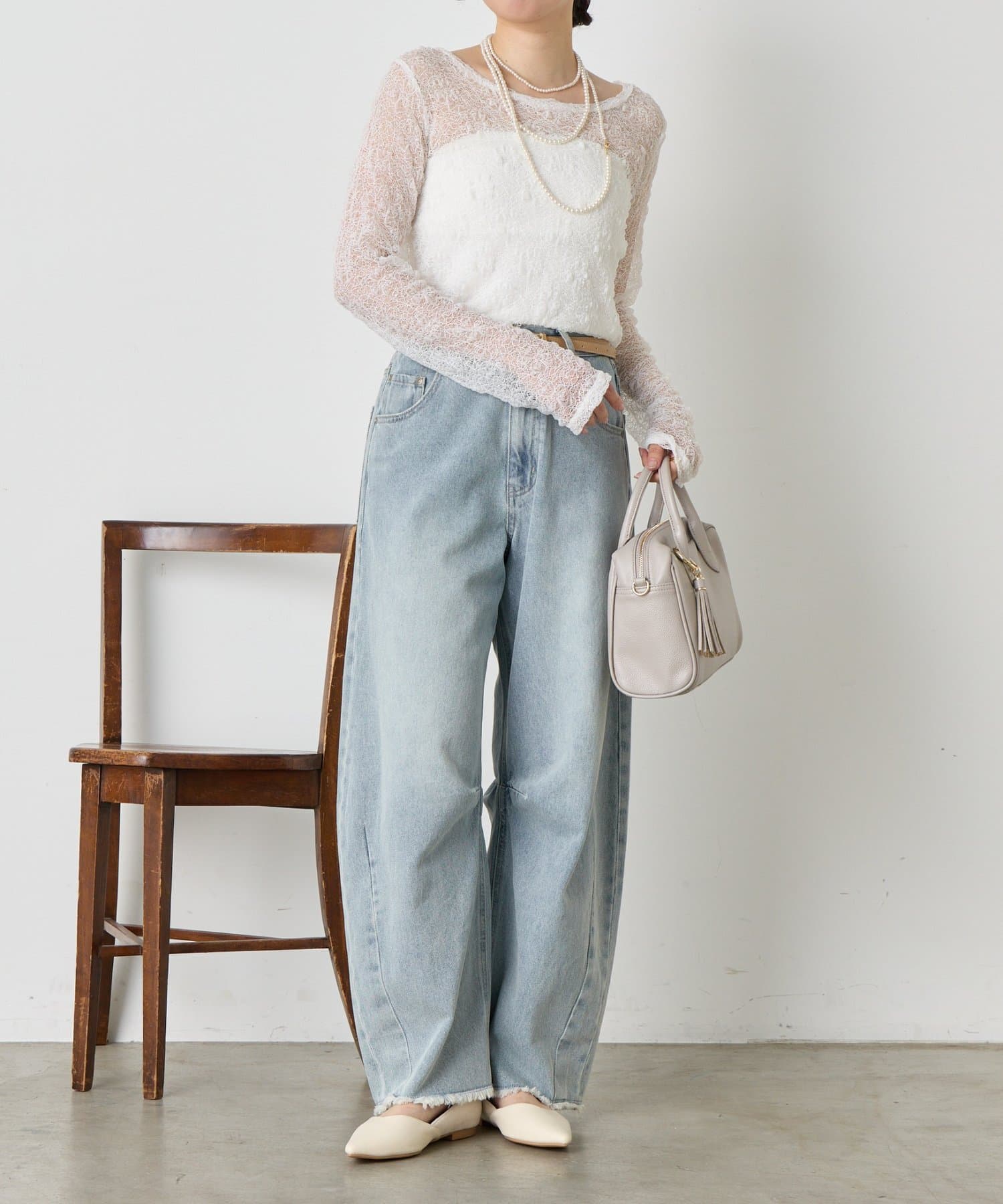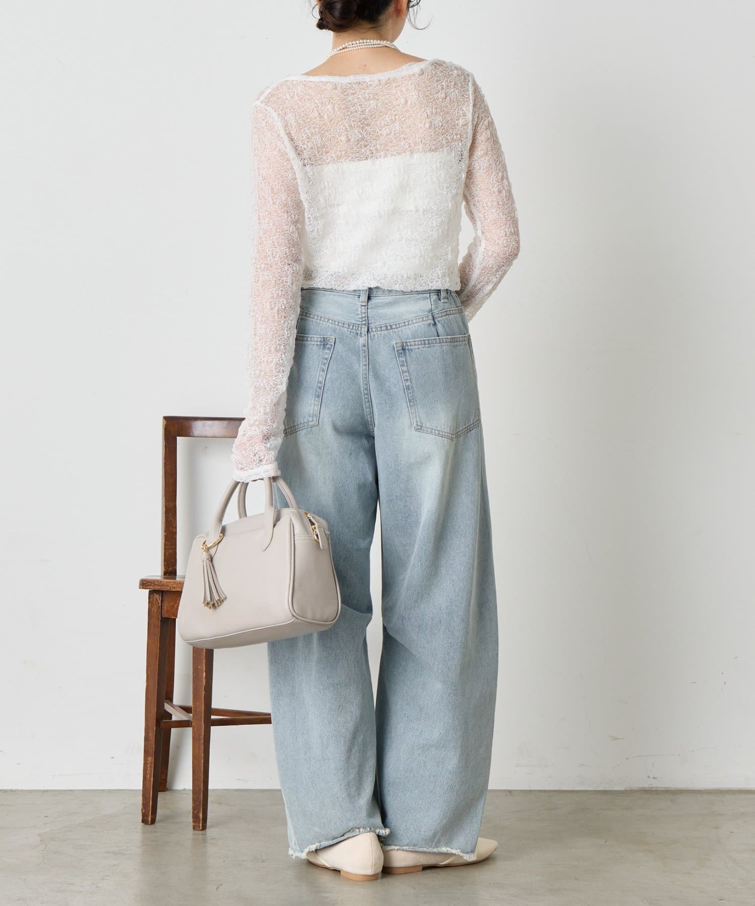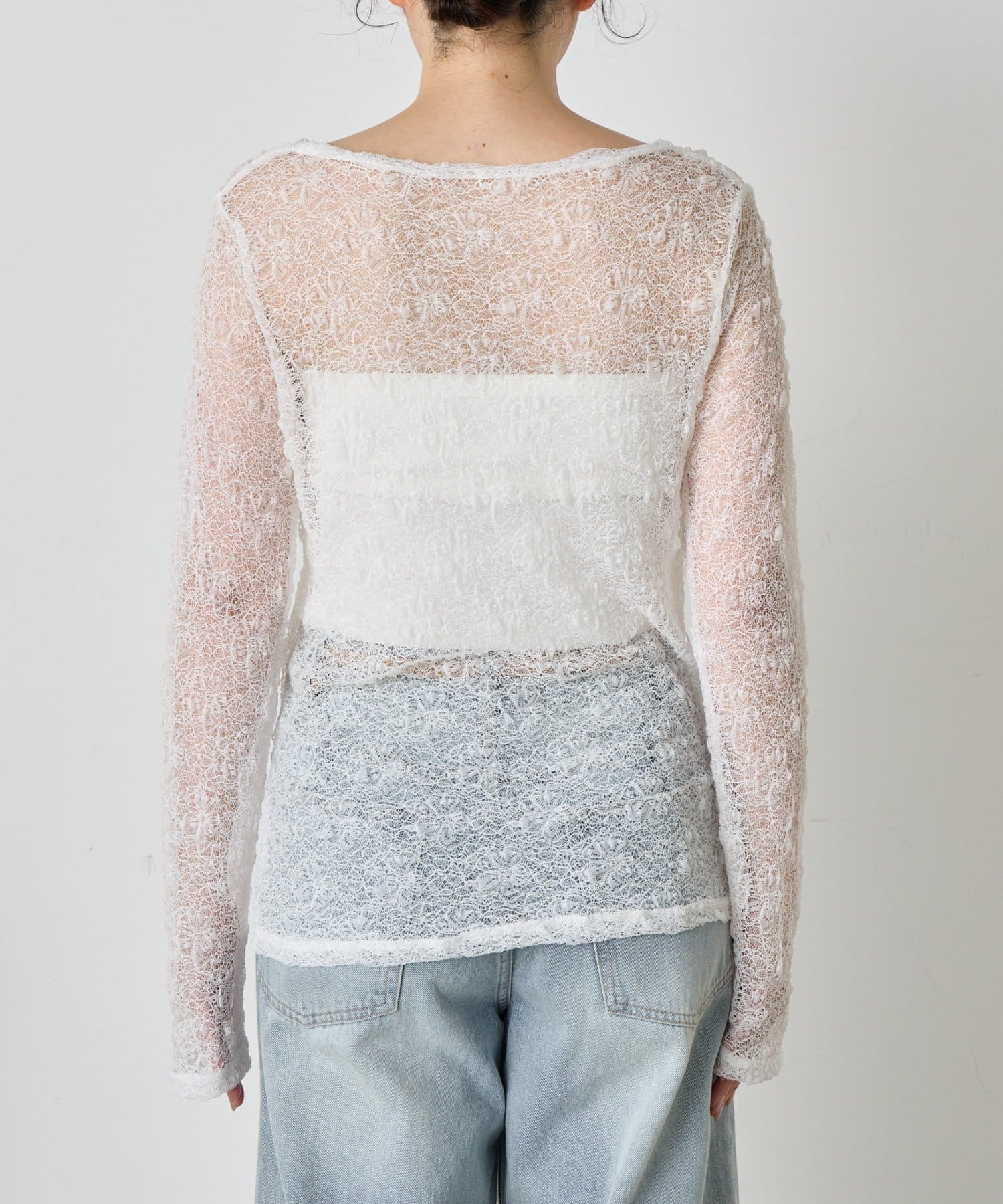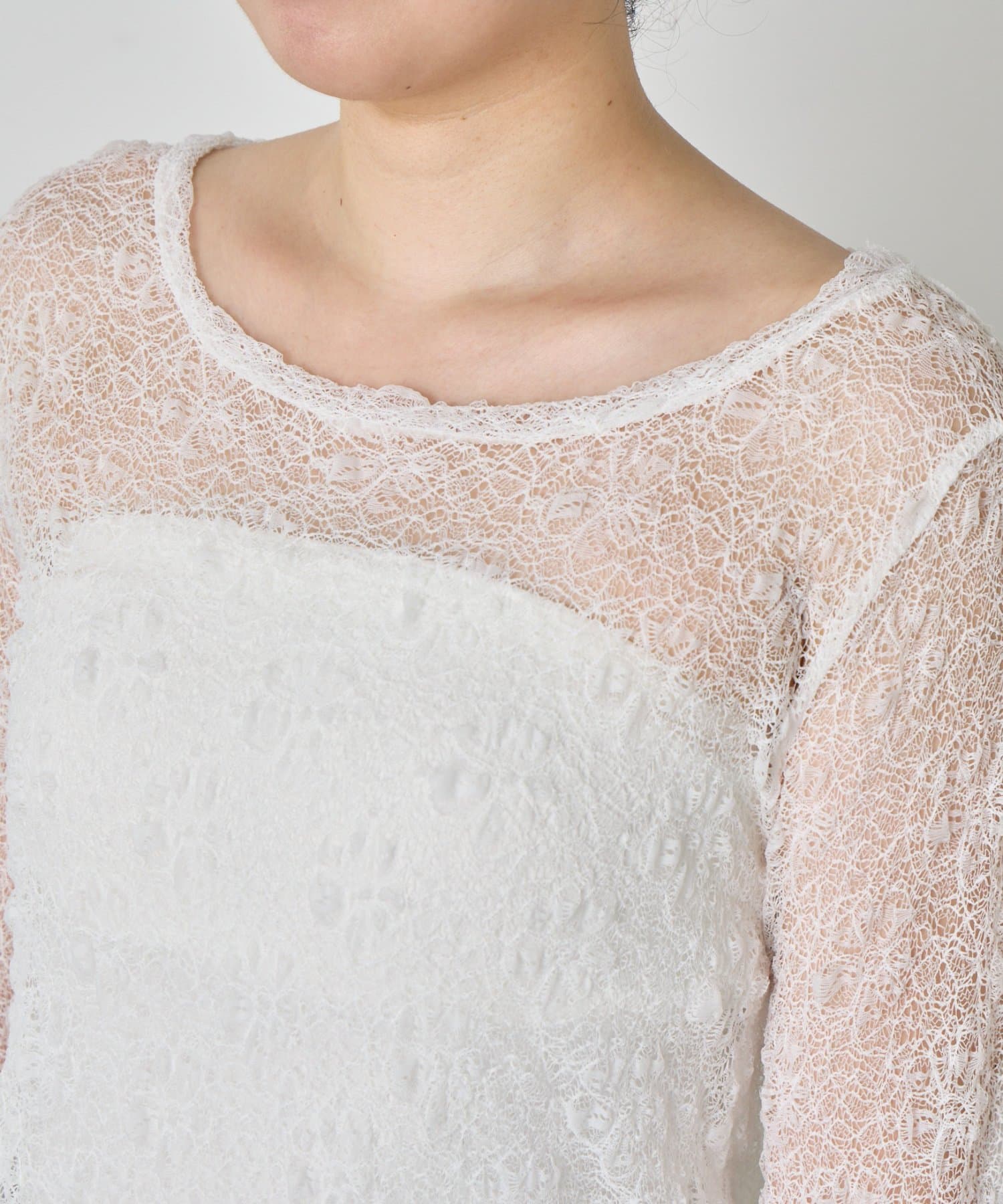 ・透け感のあるレースが、普段のコーデをワンランク上げるシアートップス。