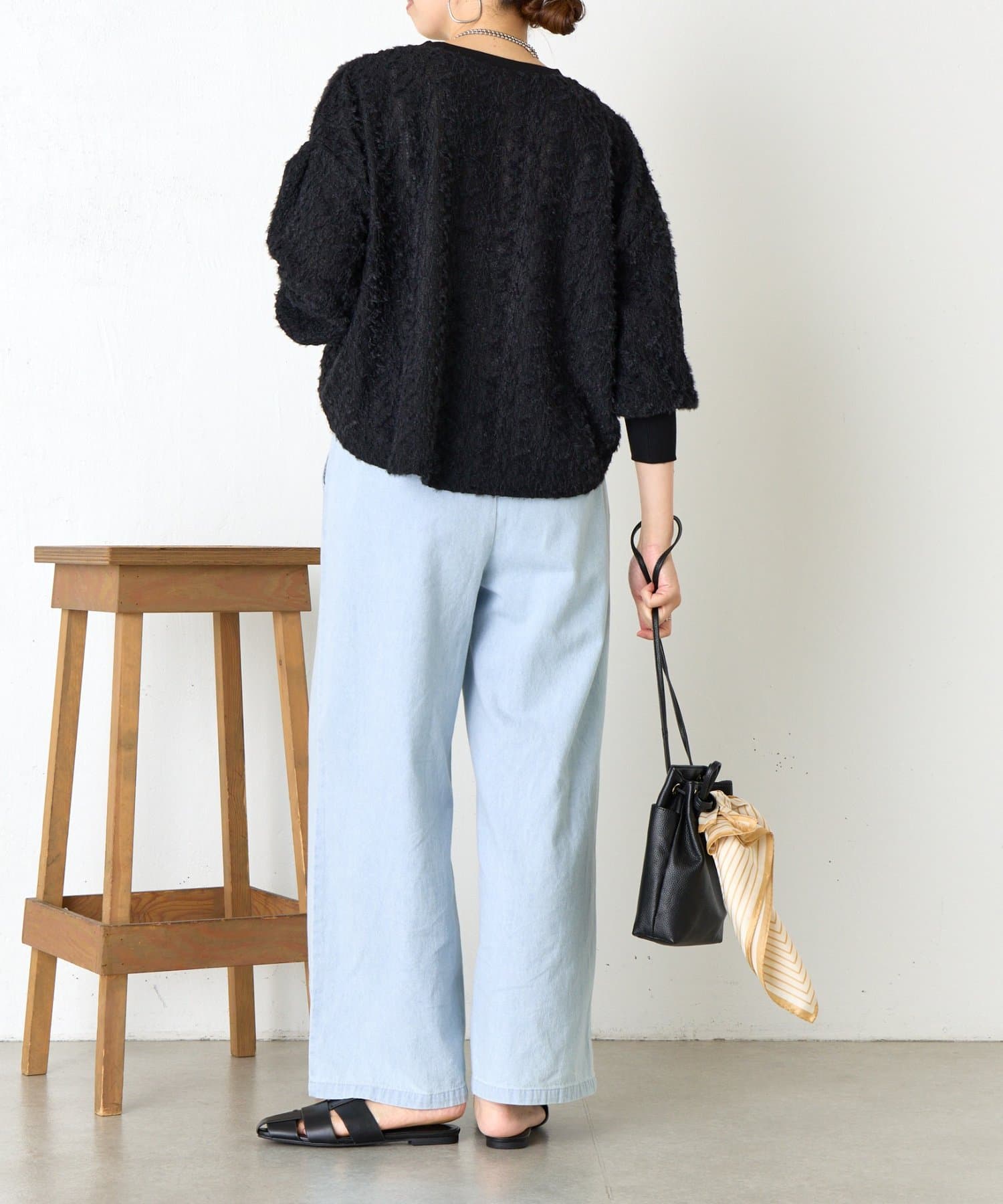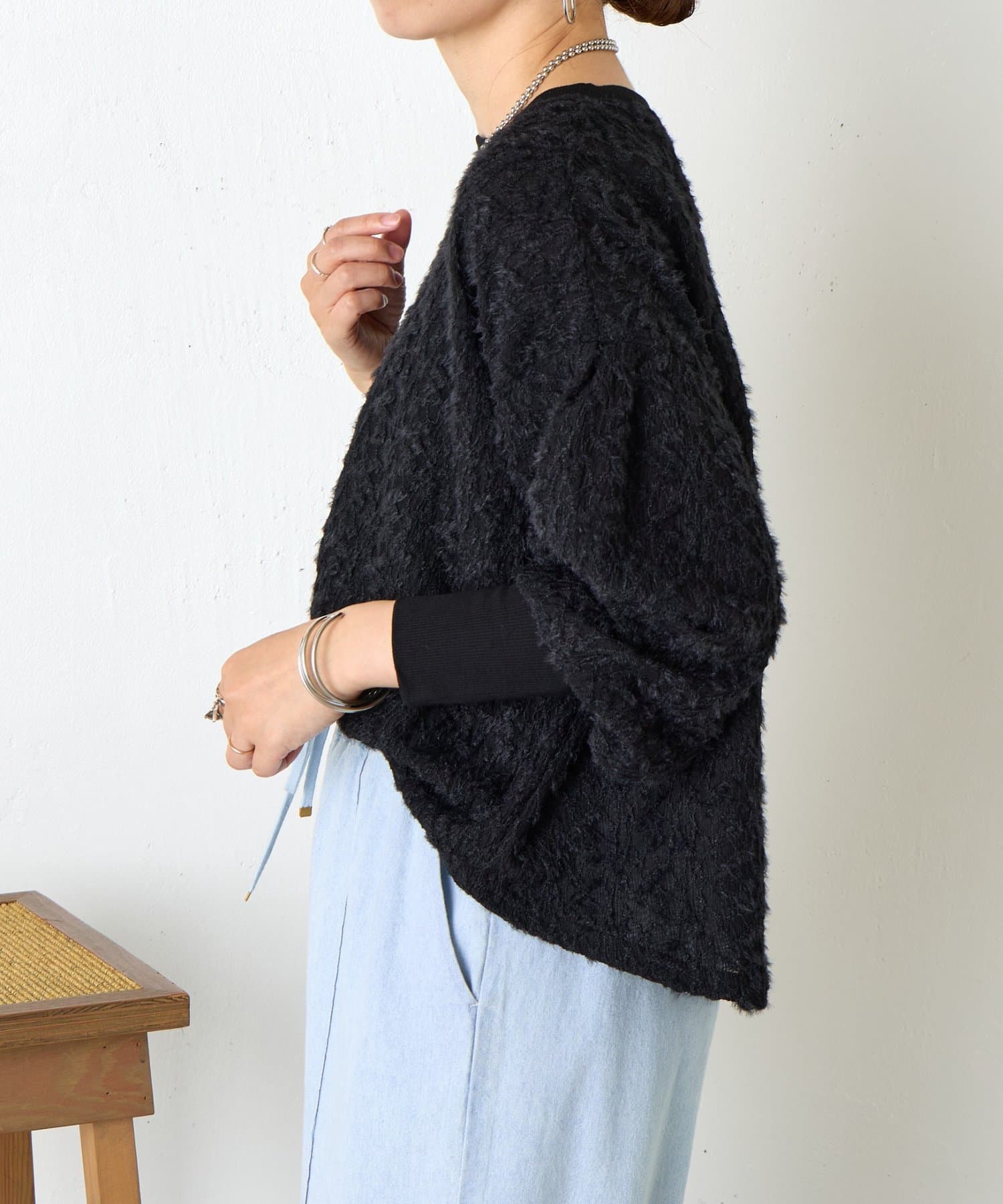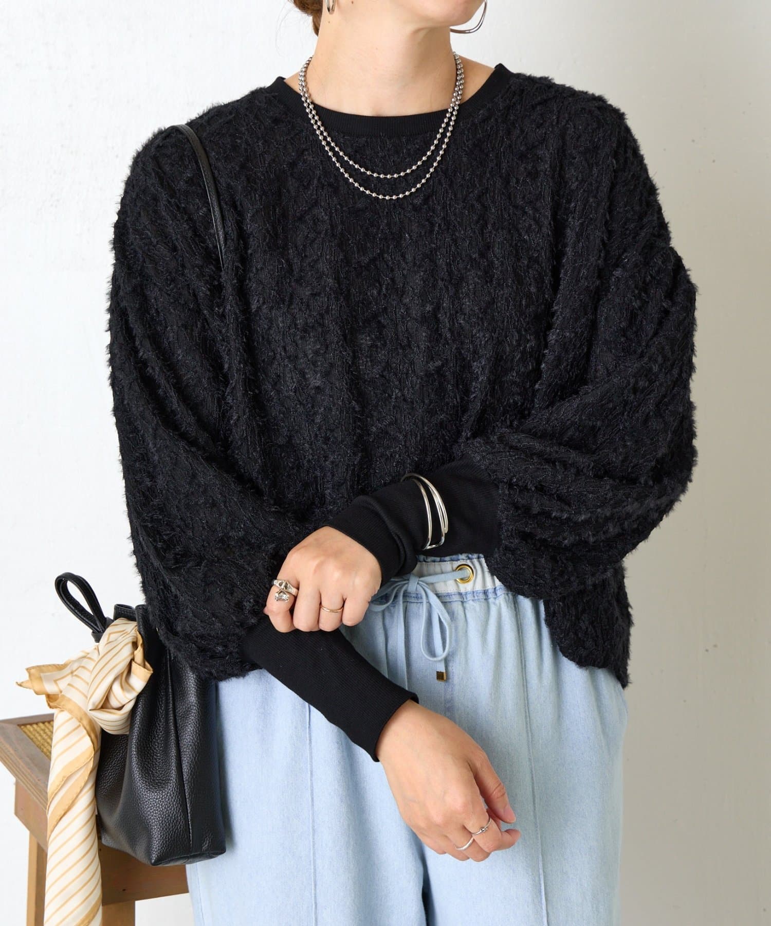 ・ふんわりとしたシルエットとドロップショルダーのバランスが絶妙で、リラックス感がありながらも女性らしい抜け感を演出。