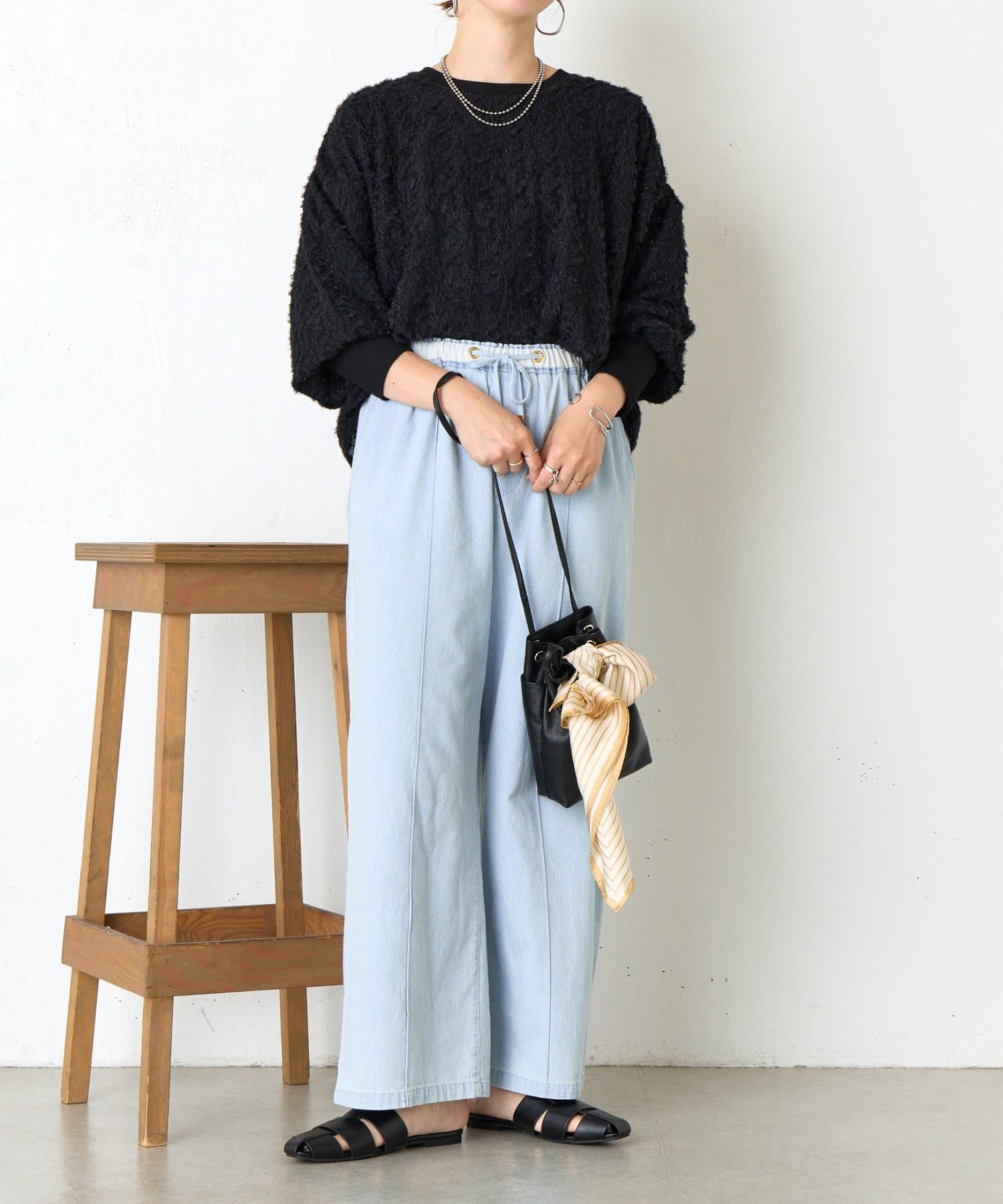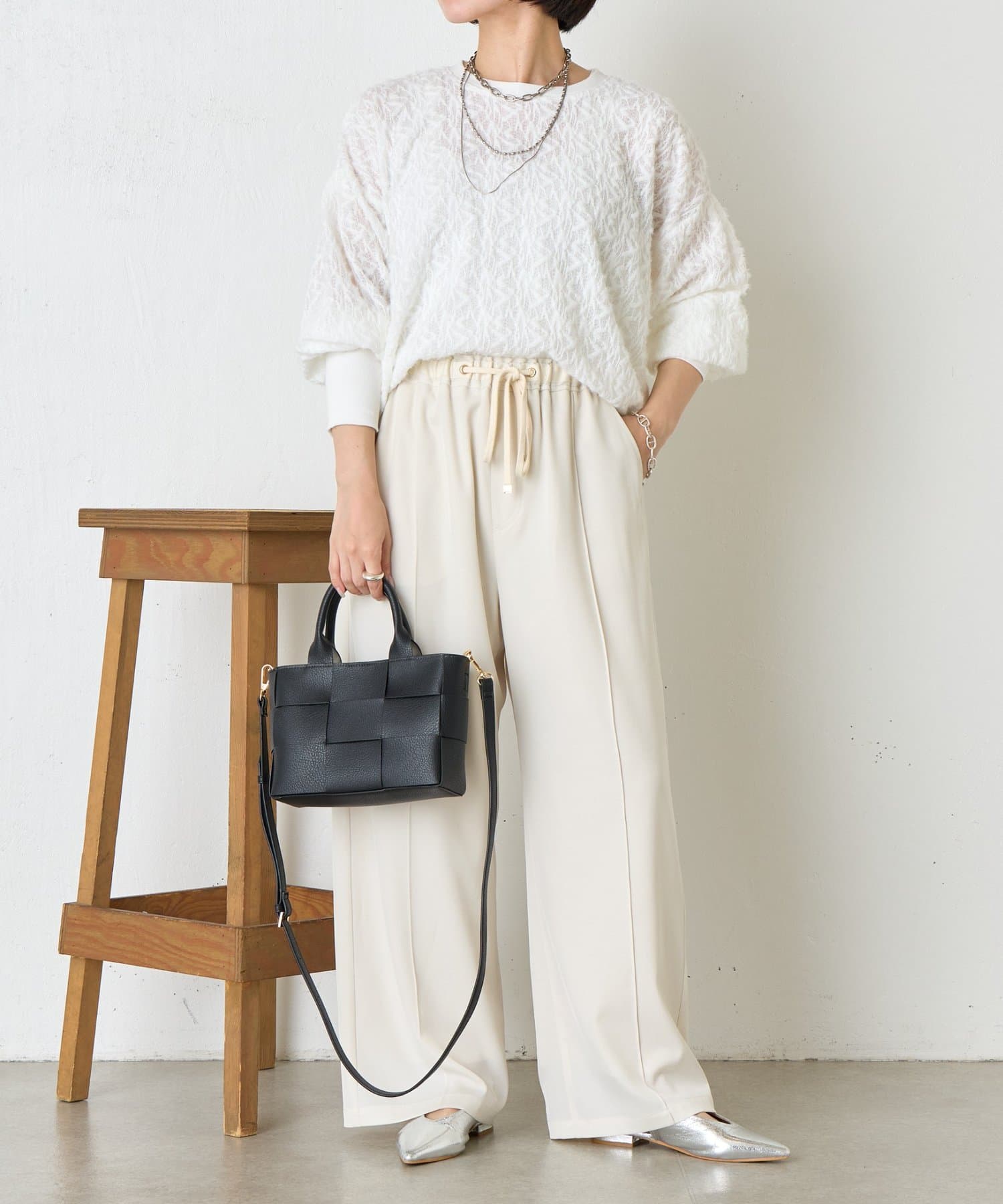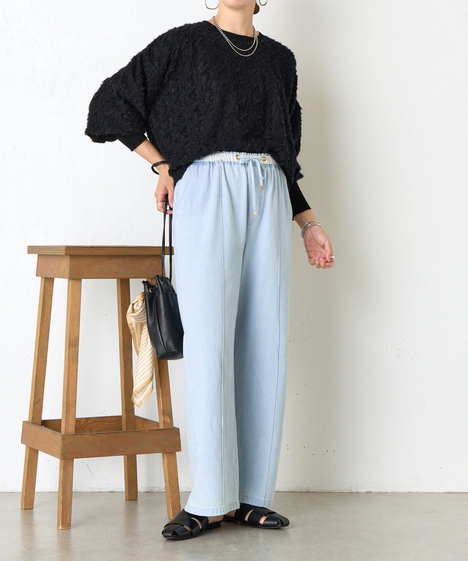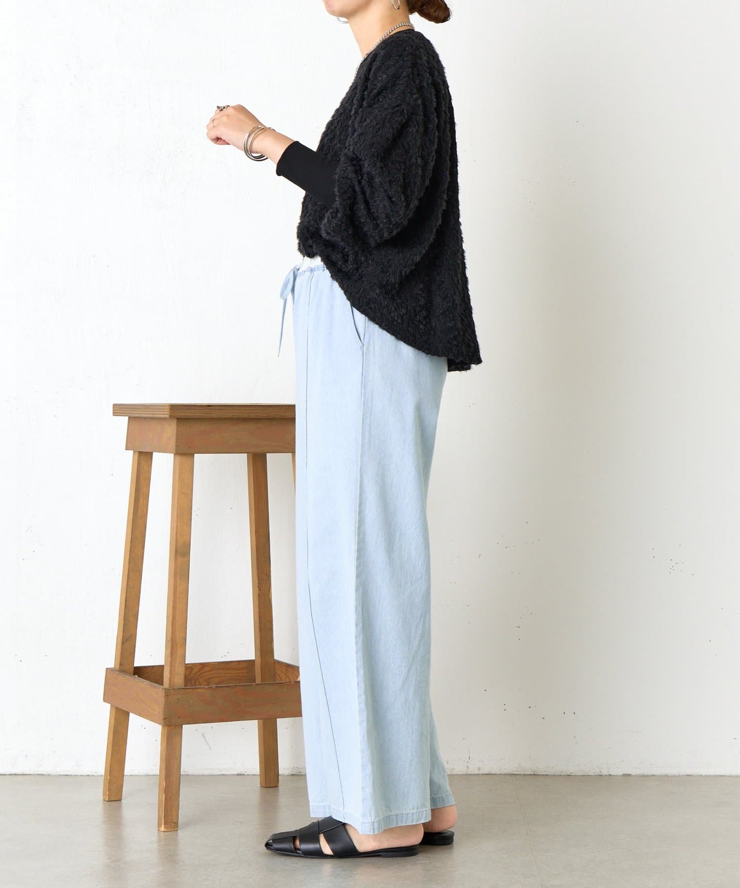 ・ふんわりとしたシルエットとドロップショルダーのバランスが絶妙で、リラックス感がありながらも女性らしい抜け感を演出。
