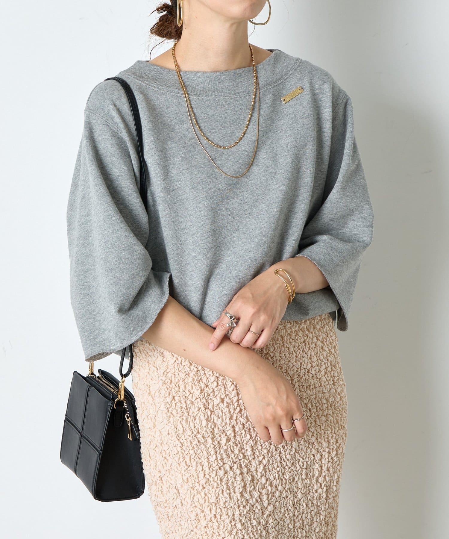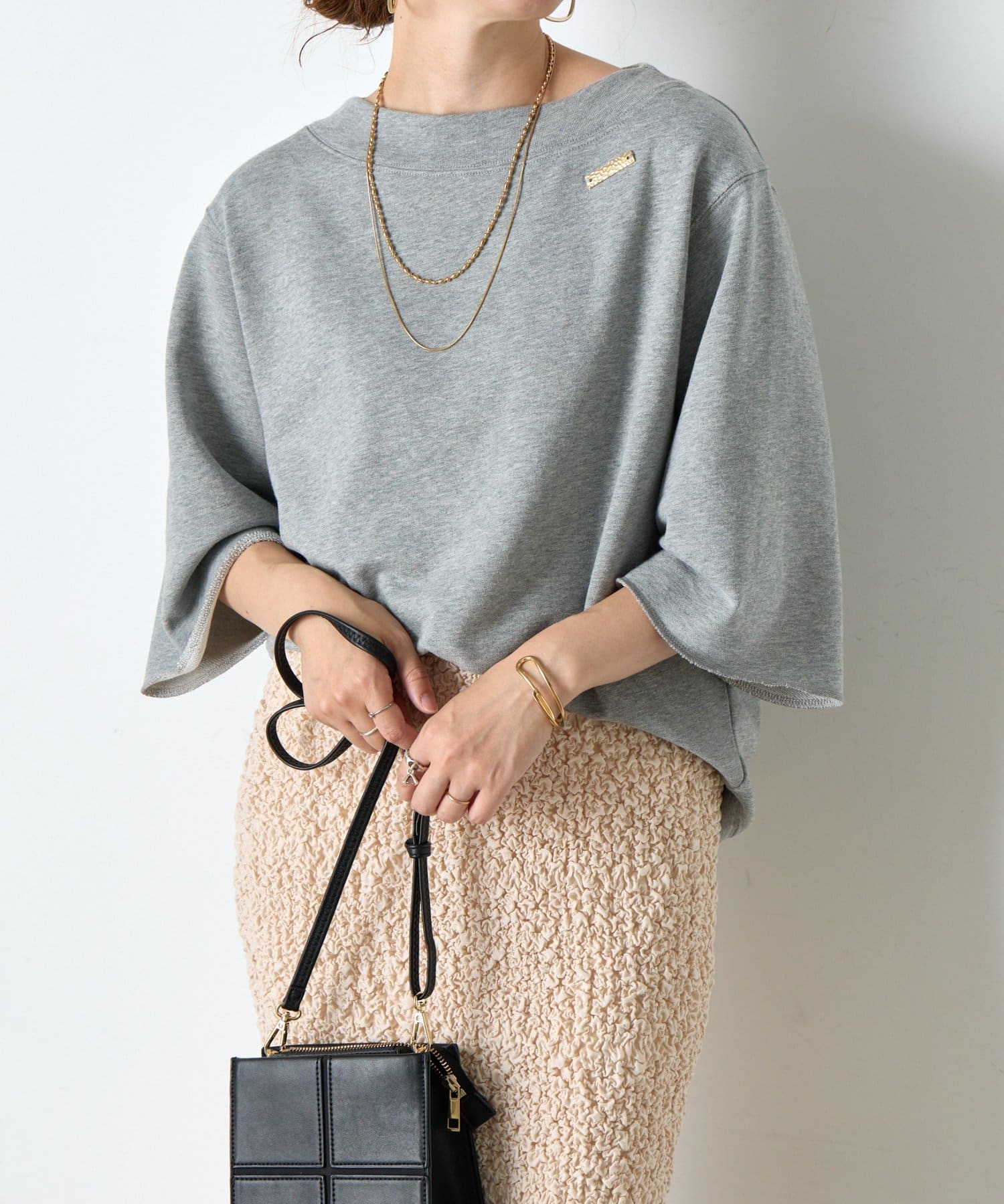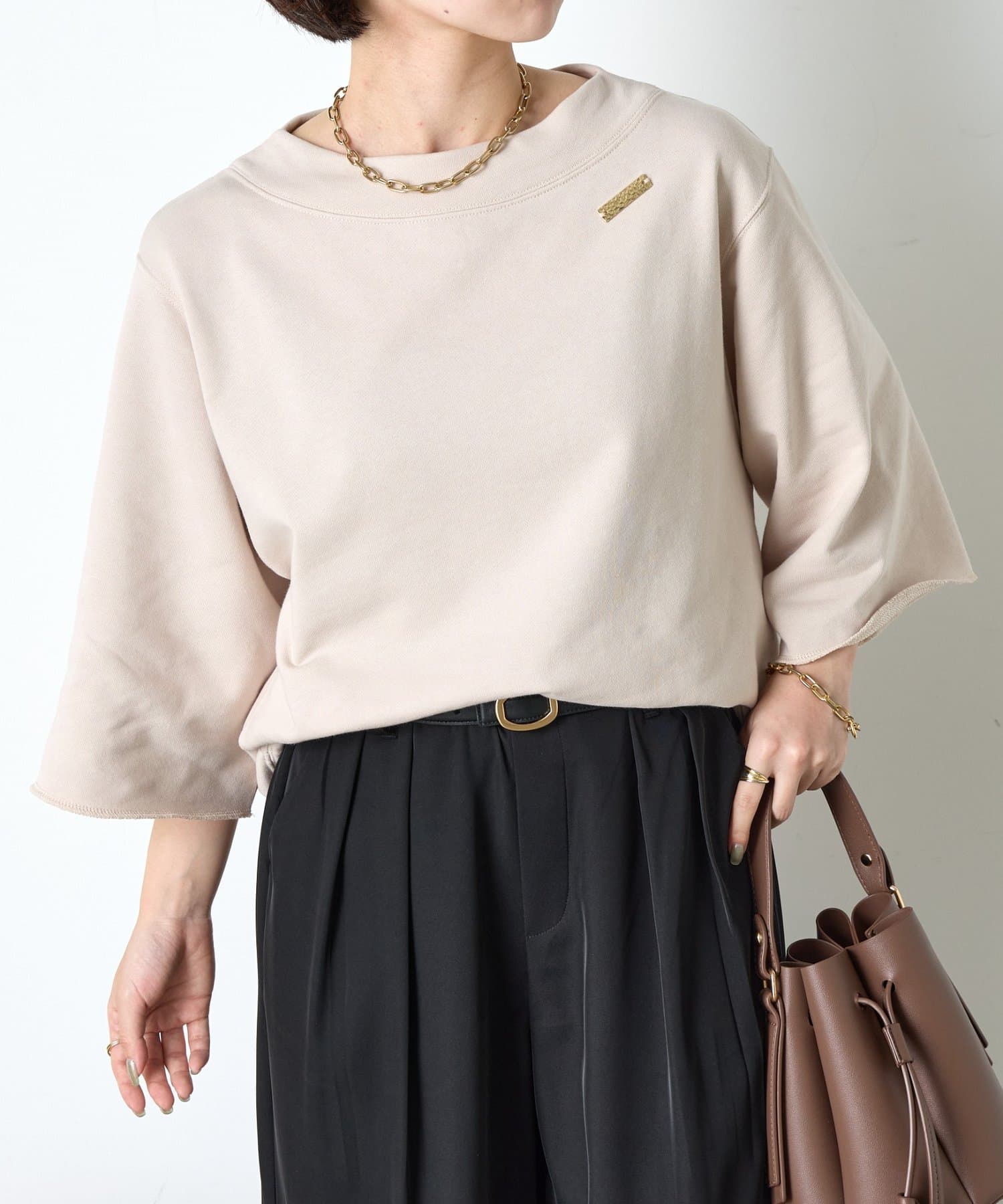• Jena espace merveilleux(ジェナ エスパスメルヴェイユ) プレート付7分袖裏毛プルオーバー