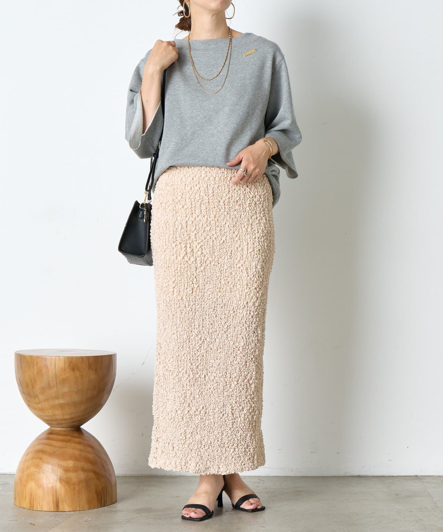 ・デコルテラインを程よく見せてくれるので、顔周りがすっきりと見えて女性らしい抜け感をプラス。
