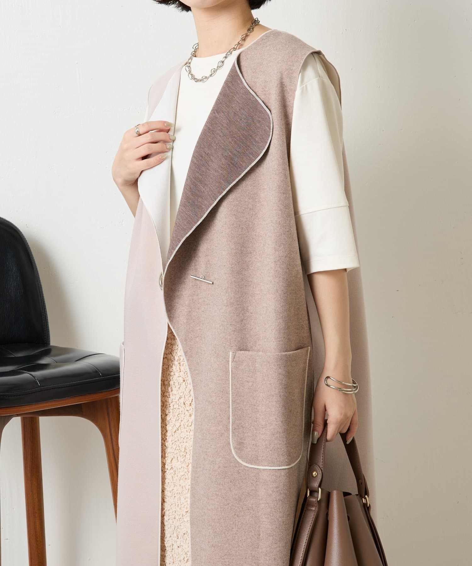 綺麗めに見えるジレです。初秋に大活躍です。
