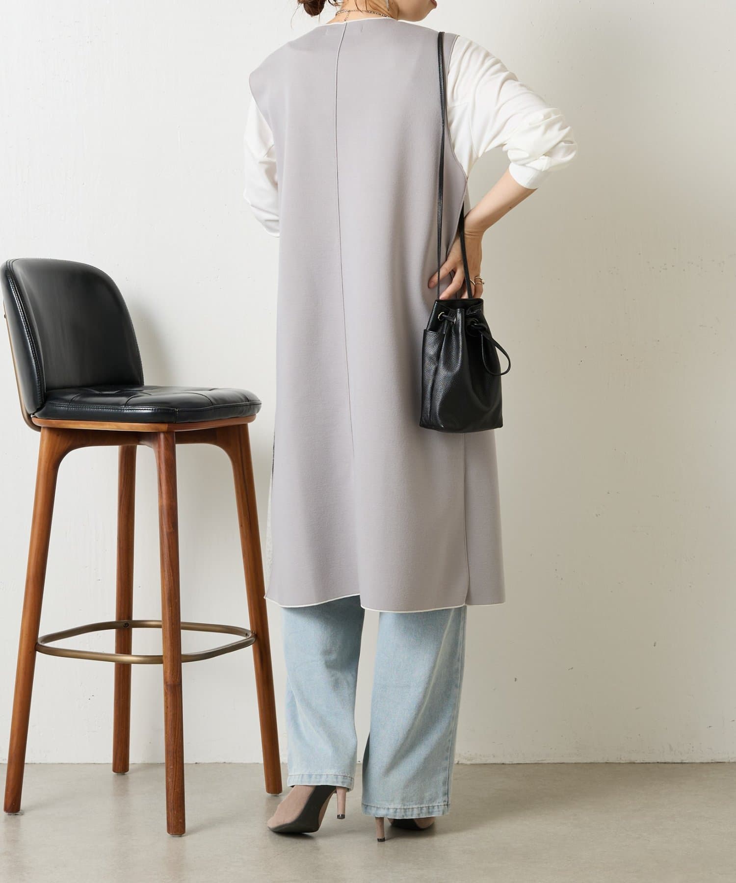 ・気温がさがってきたらシアートップスやカットソーだけでなくニットや薄手のアウターとのレイヤードもおすすめ◎