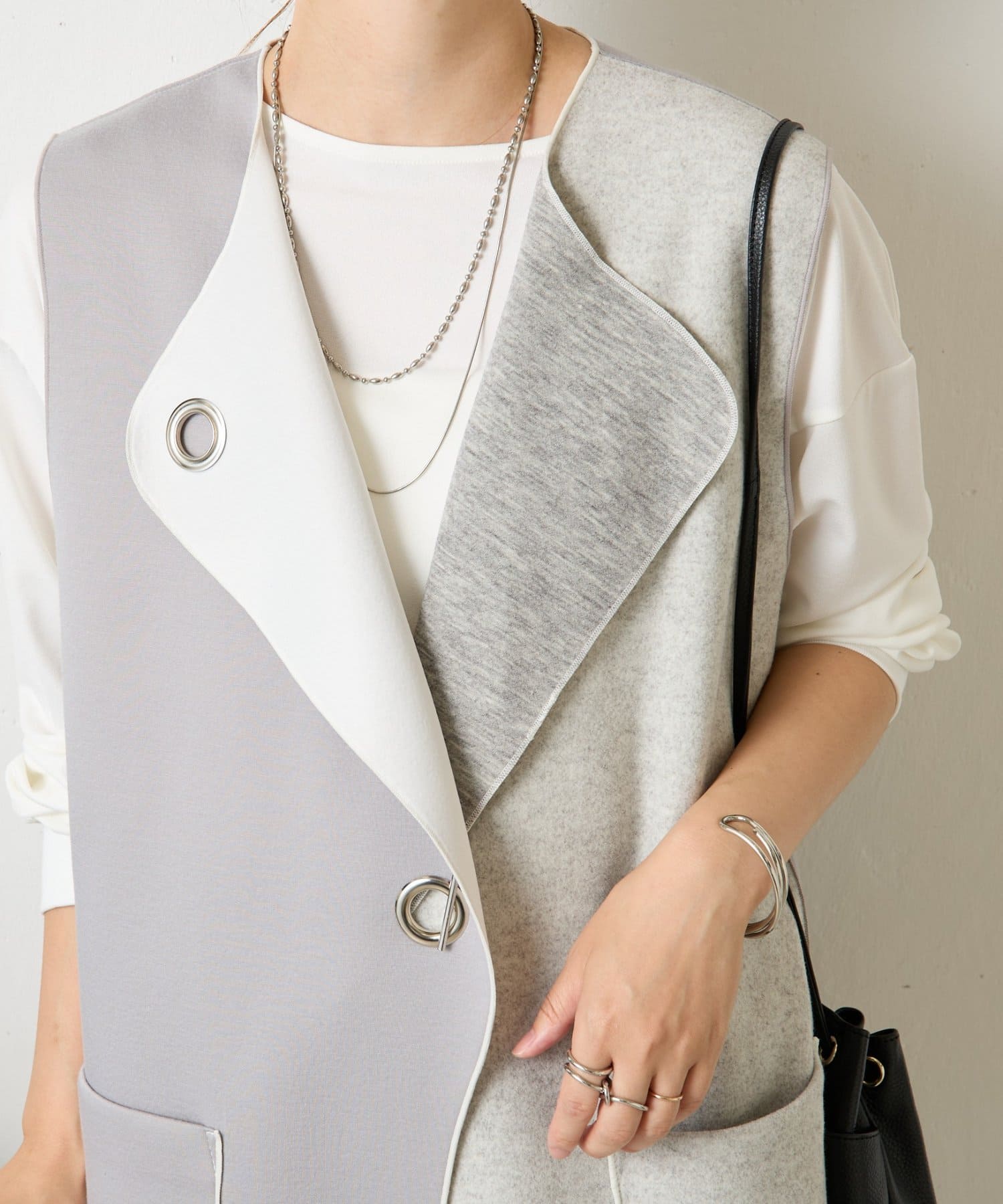 TOP > Jena espace merveilleux > レディース > ジャケット/アウター > ベスト/ジレ > 異素材バーボタンジレ