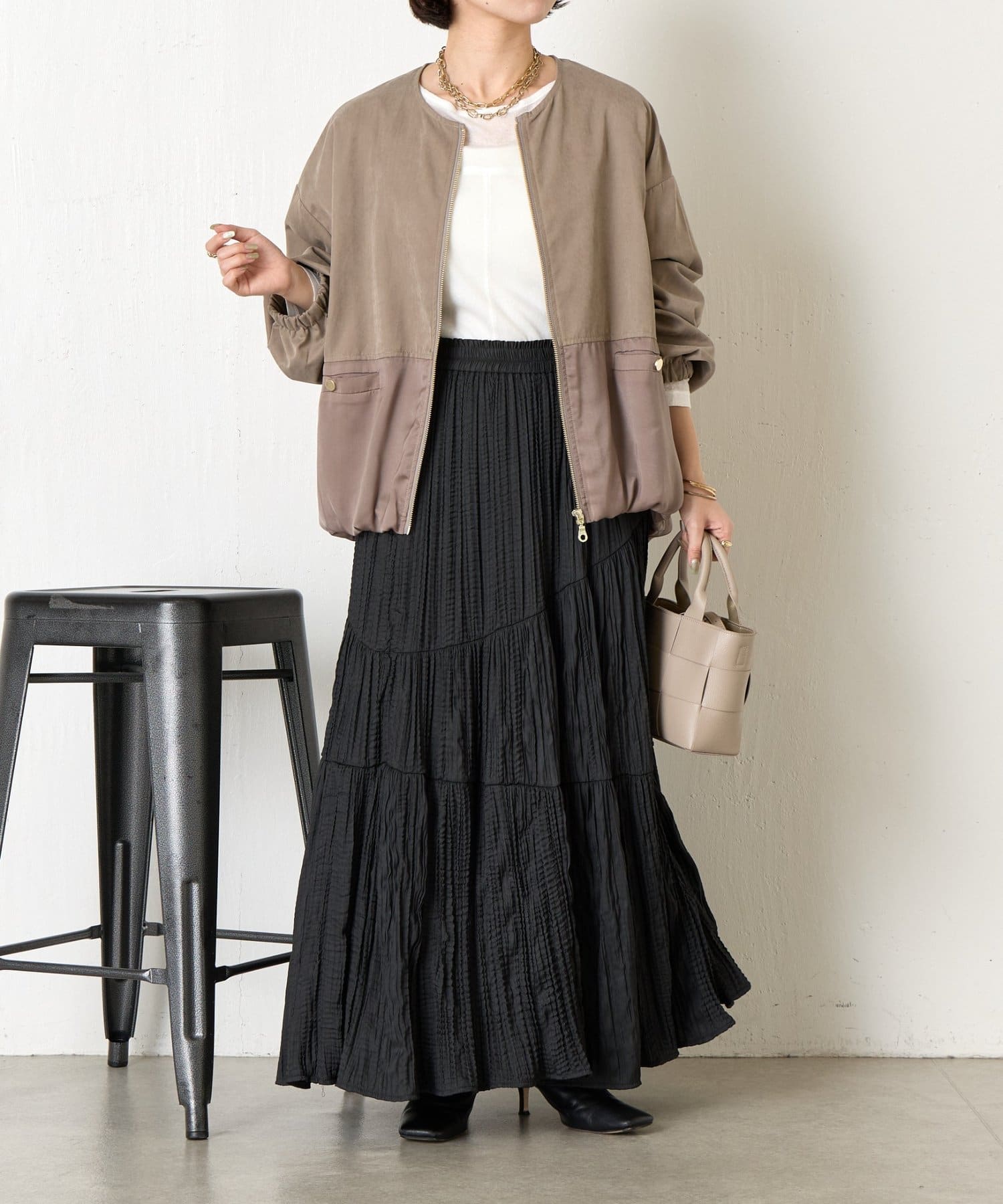・秋らしさを感じる素材ながら、着用感はとても軽量です。季節の変わり目におすすめ!