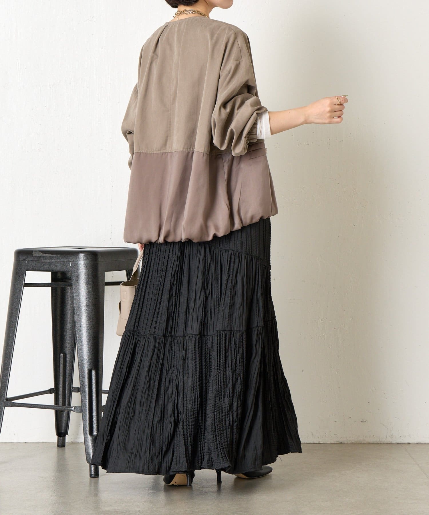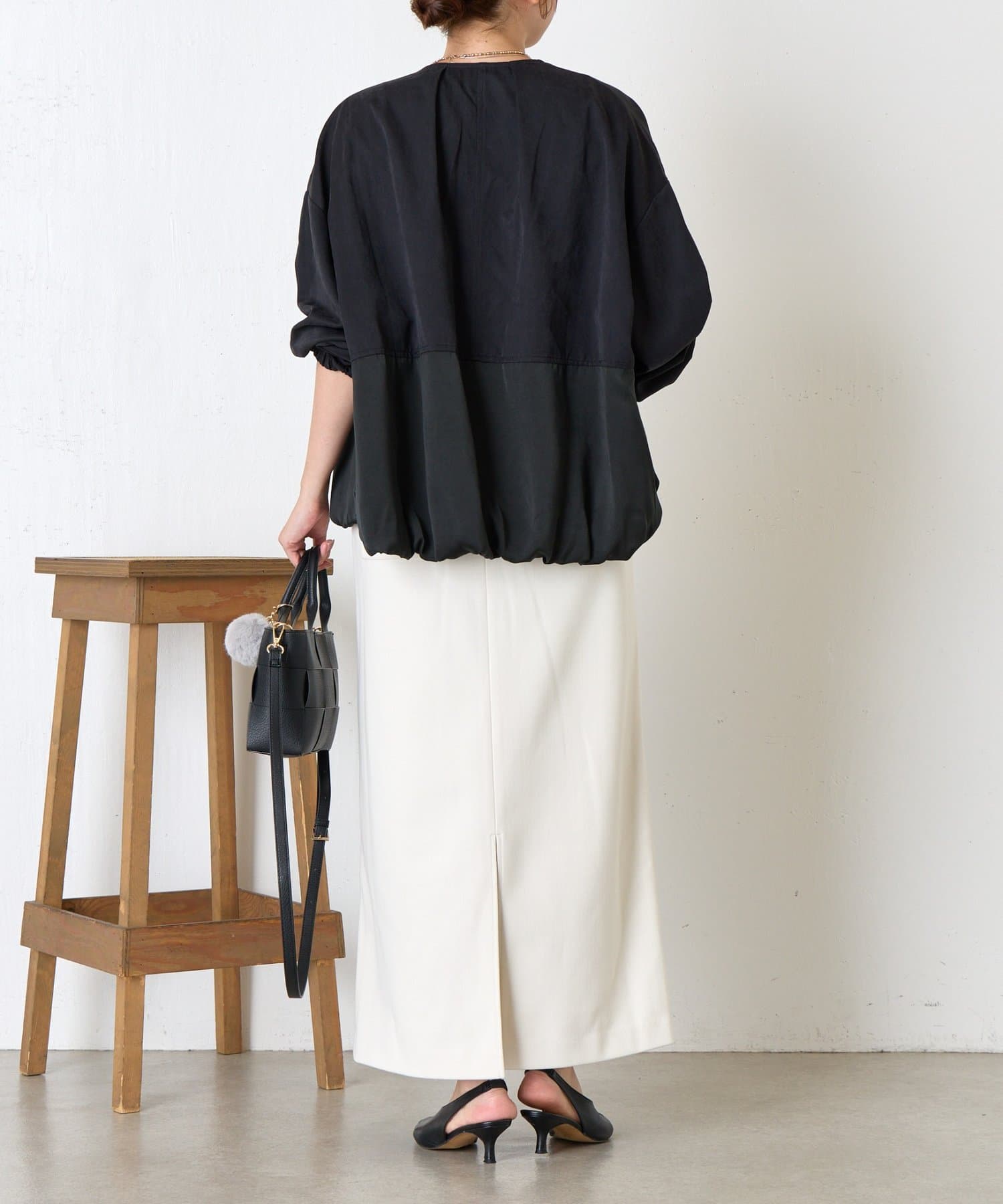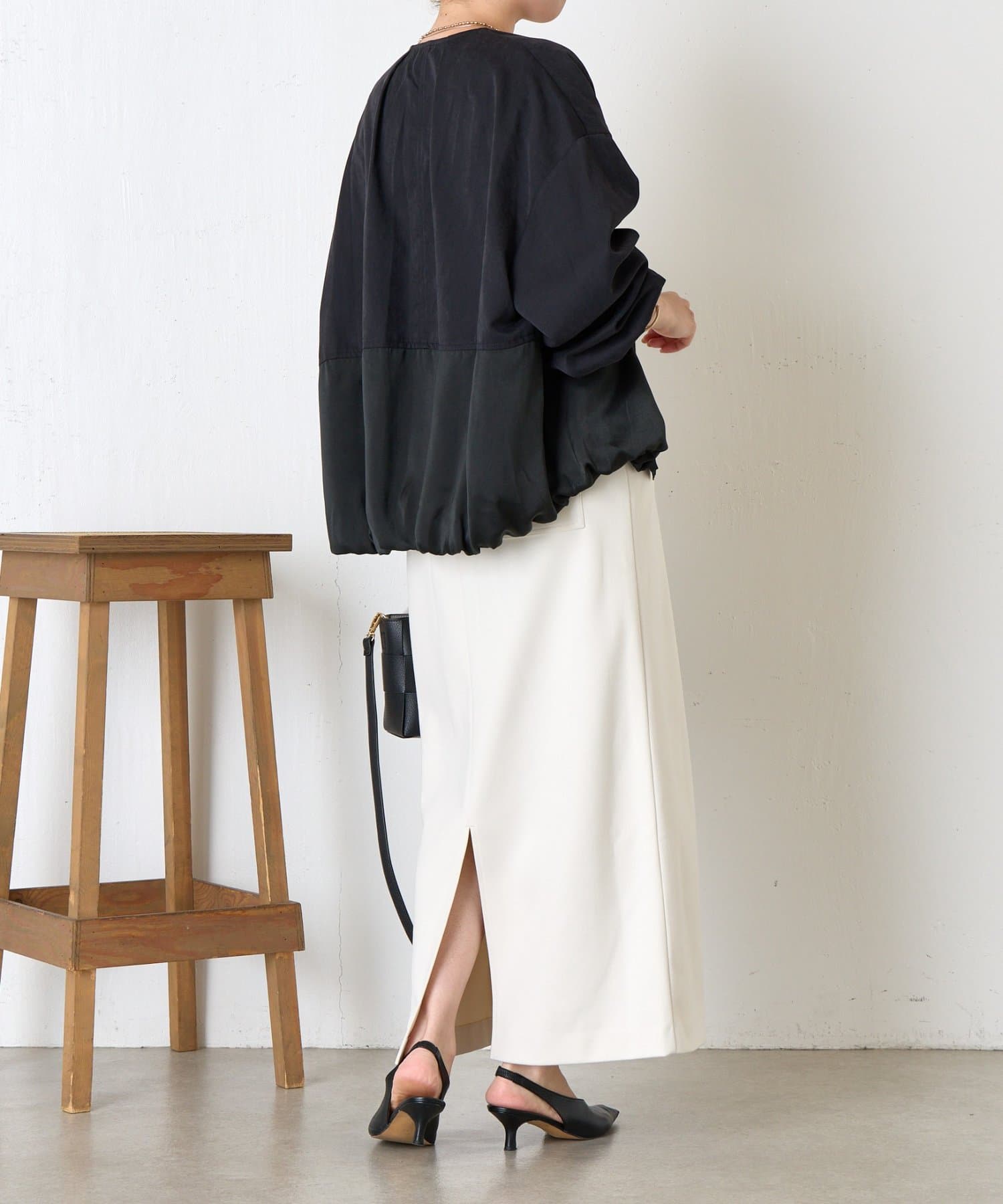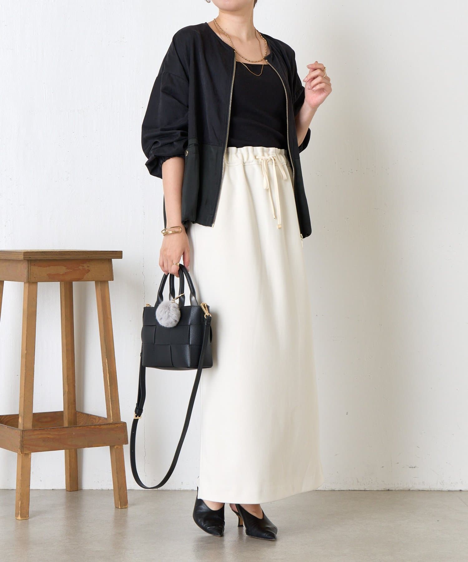 ・裾の異素材切替が腰位置を高く見せてくれ、スタイルアップ効果も◎