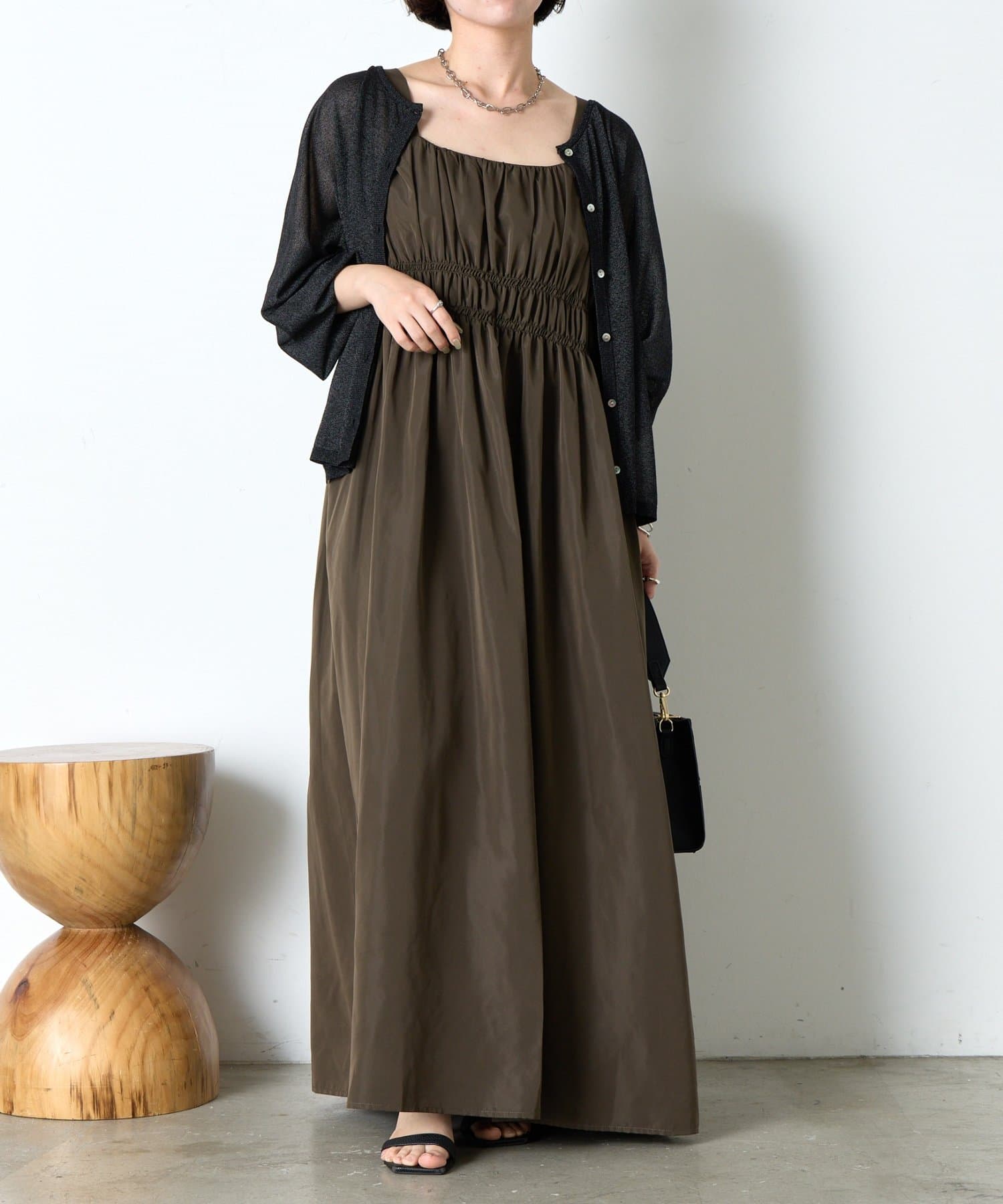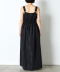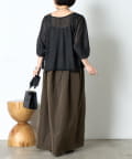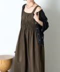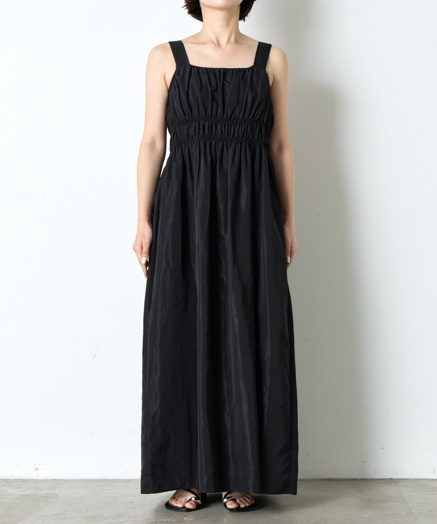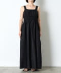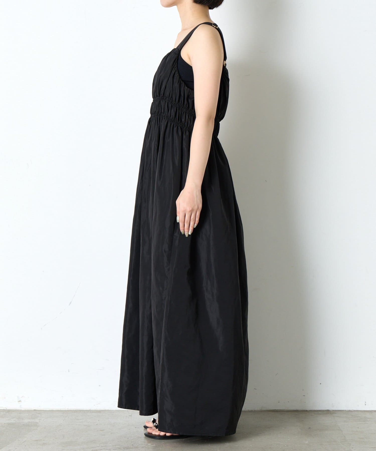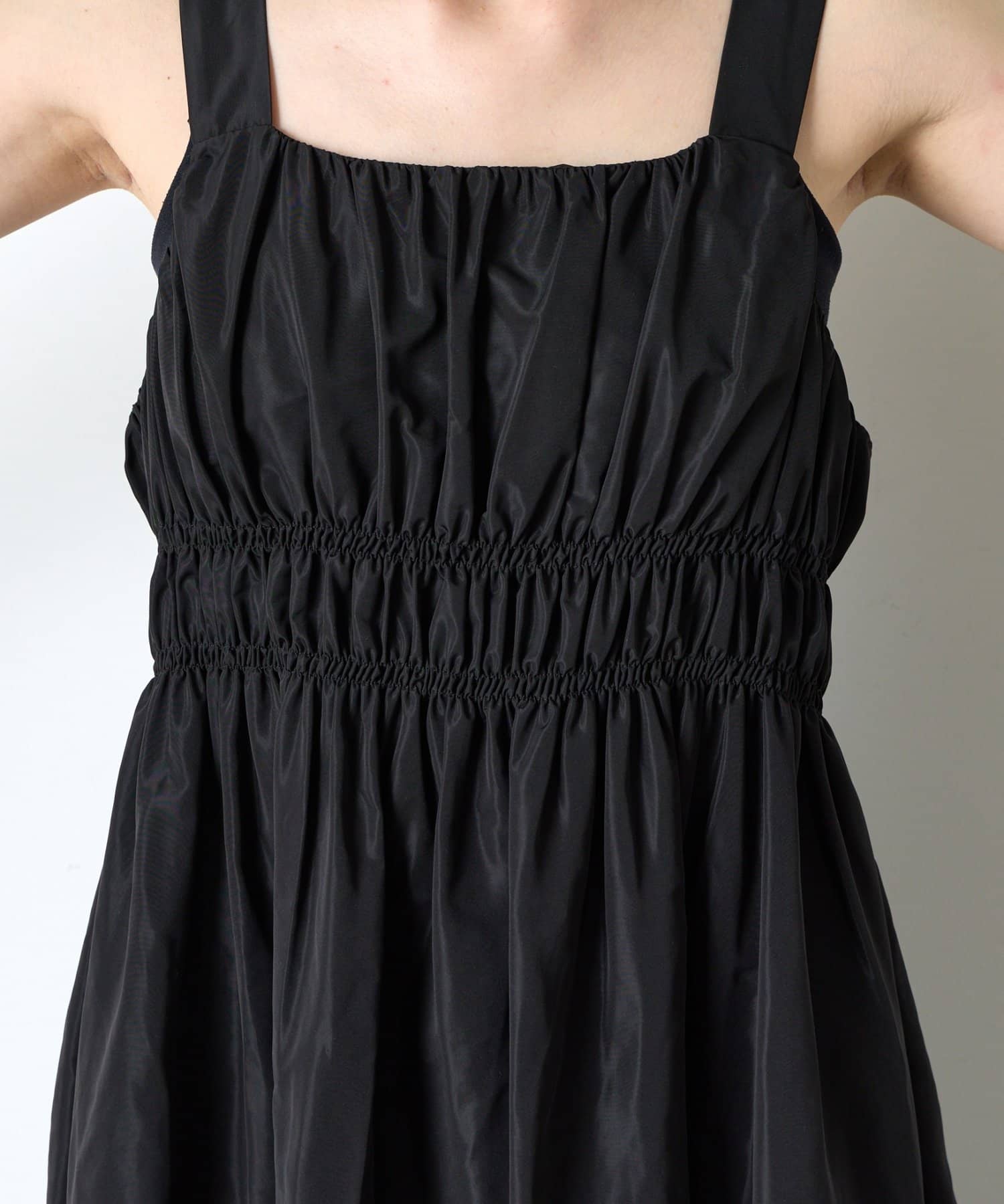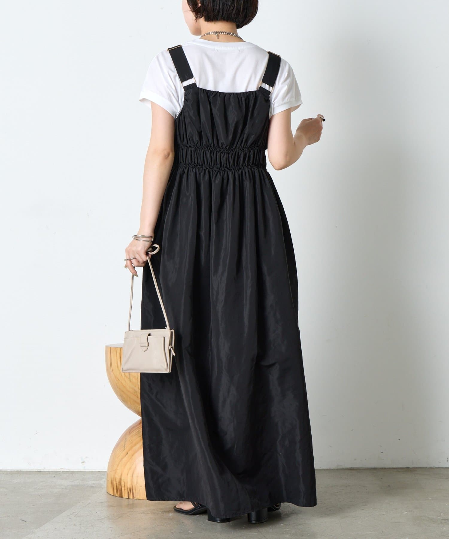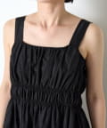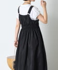 ・ウエストのシャーリングデザインが大人の甘さをプラスしたカジュアル過ぎないナイロン素材のジャンスカ。