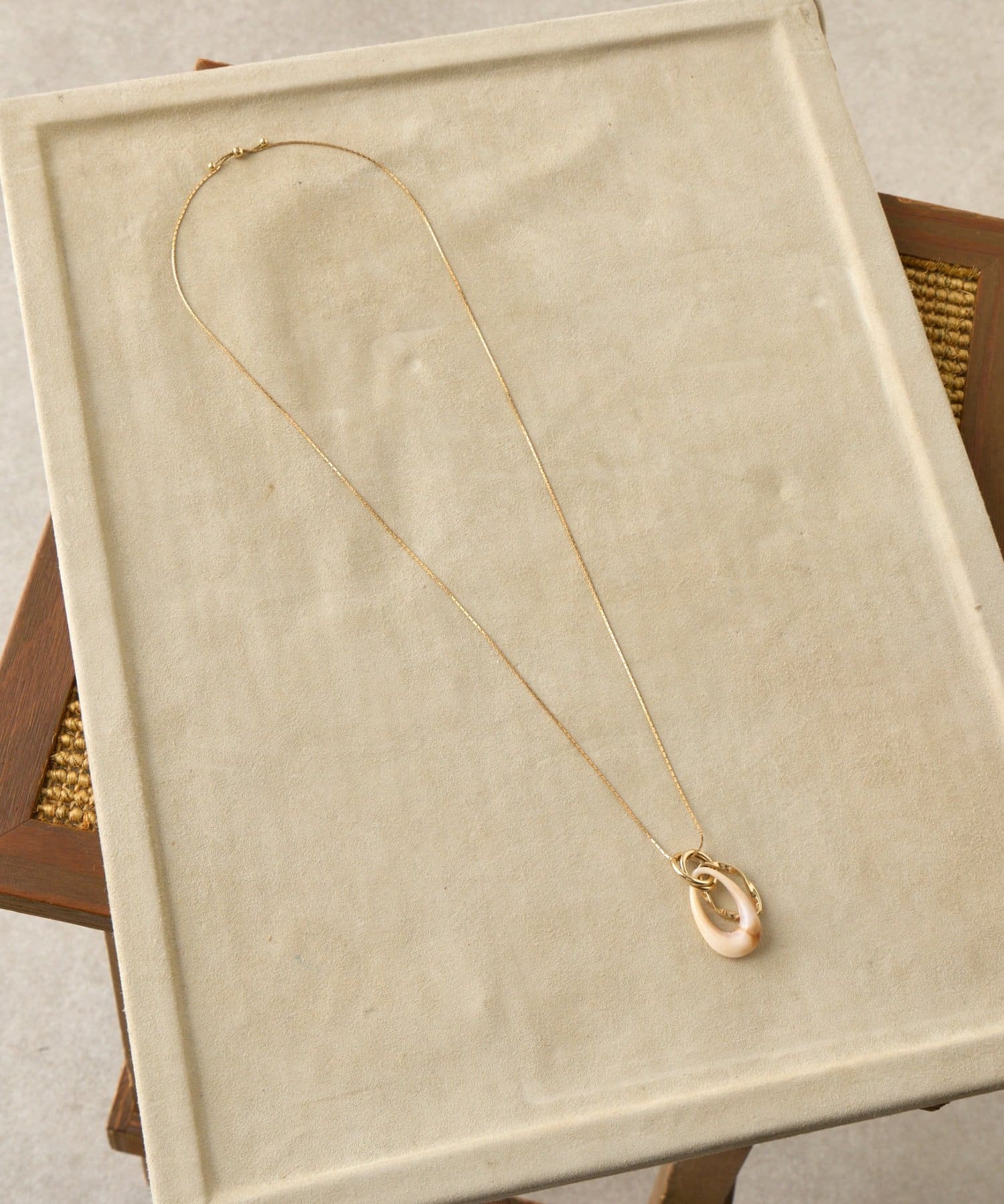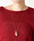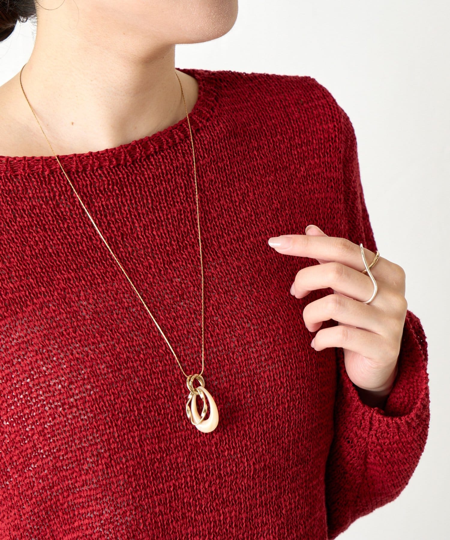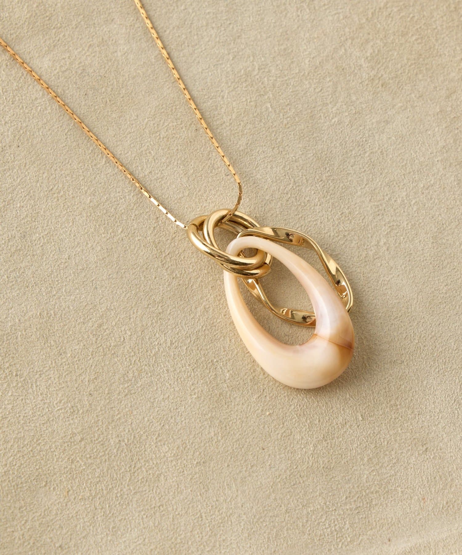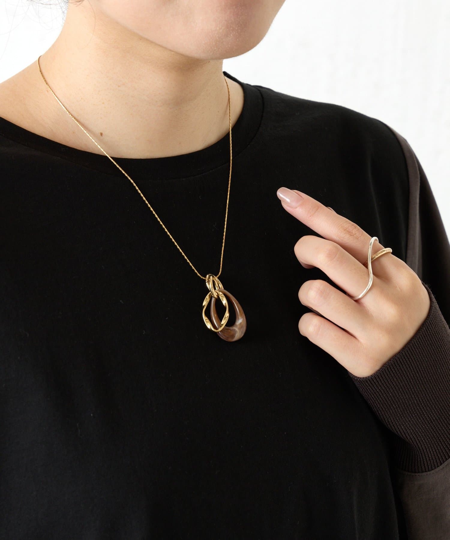 ・ゴールドカラーのメタルリングとべっ甲のドロップモチーフを重ねた奥行きと動きのあるチェーンネックレス。