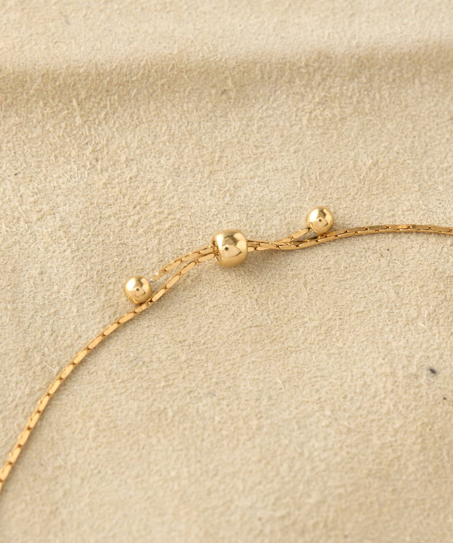 ・チェーンはゴールドカラーで華奢で上品な印象に。スライド式でお好みの長さに調整可能◎
