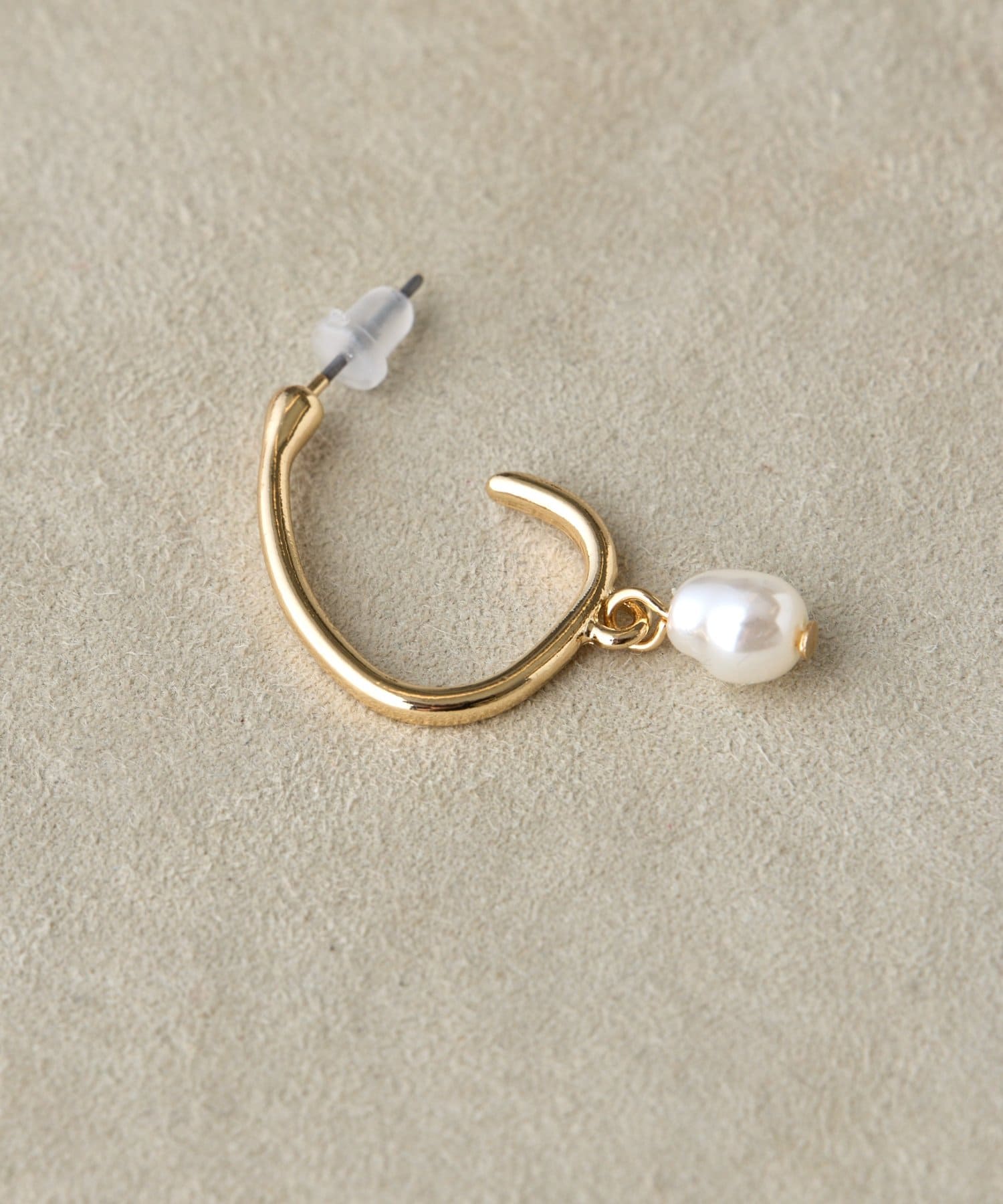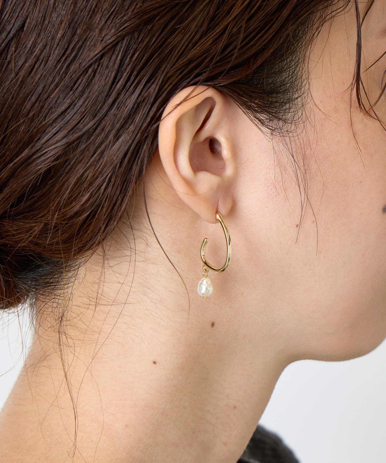 ・月のような形のフープに淡水パールを組み合わせた上品なピアス。
