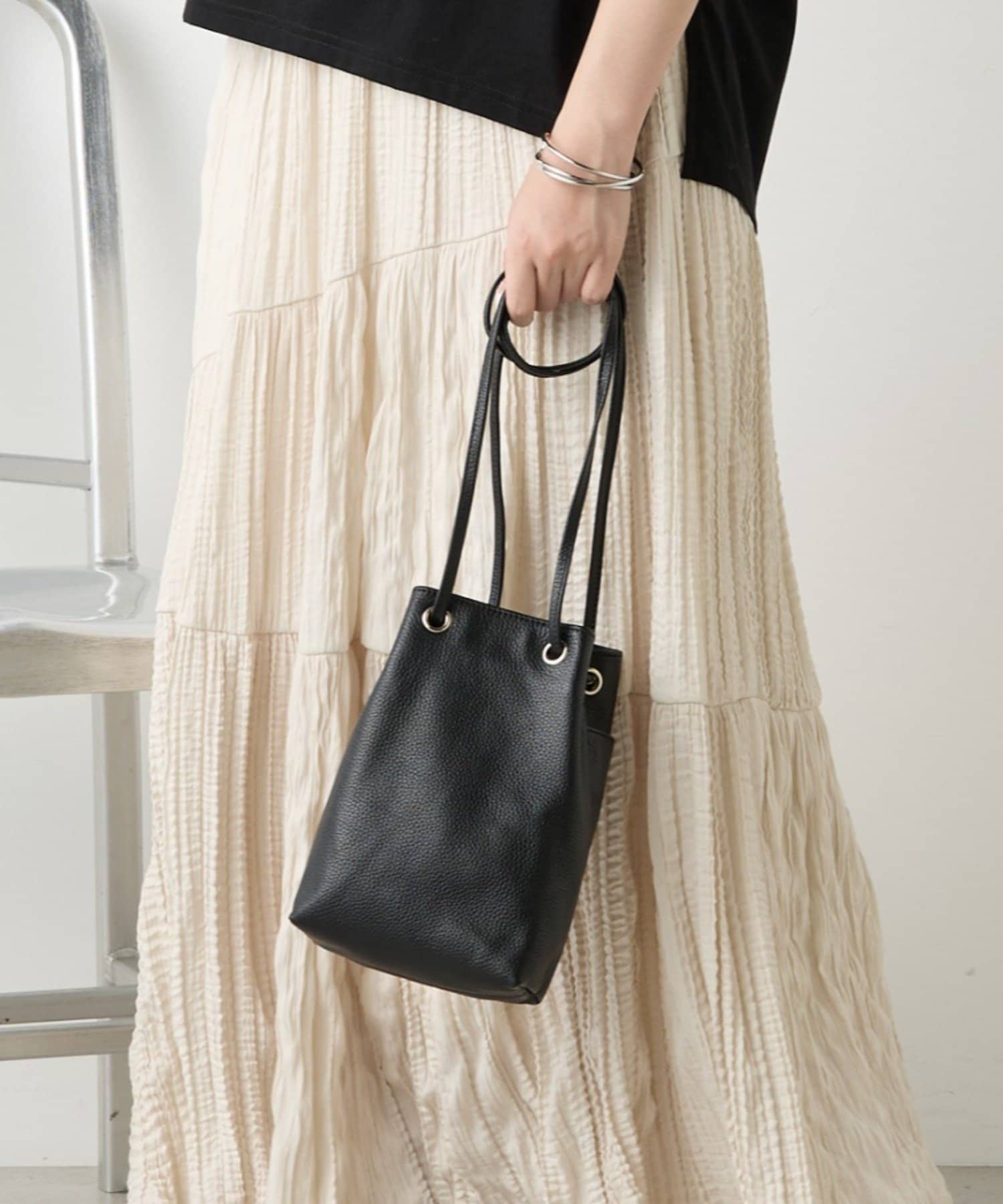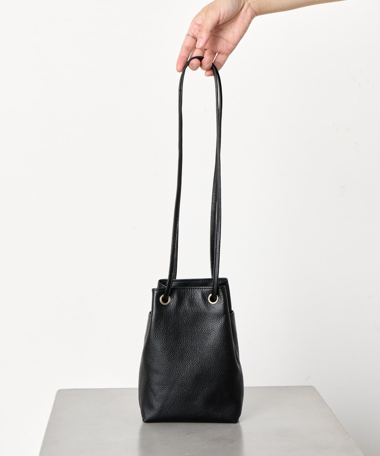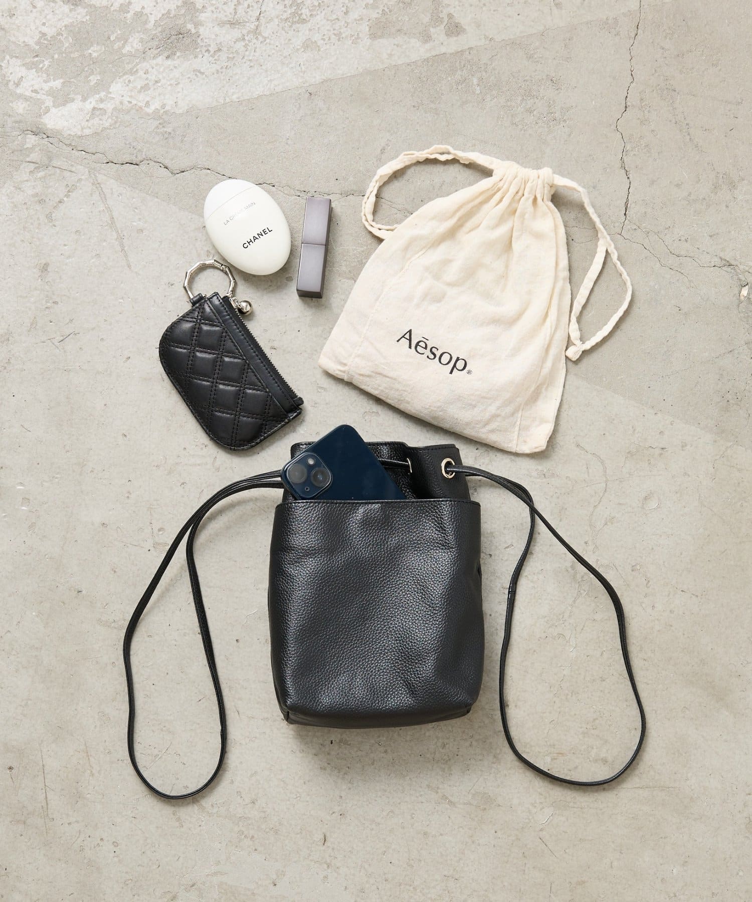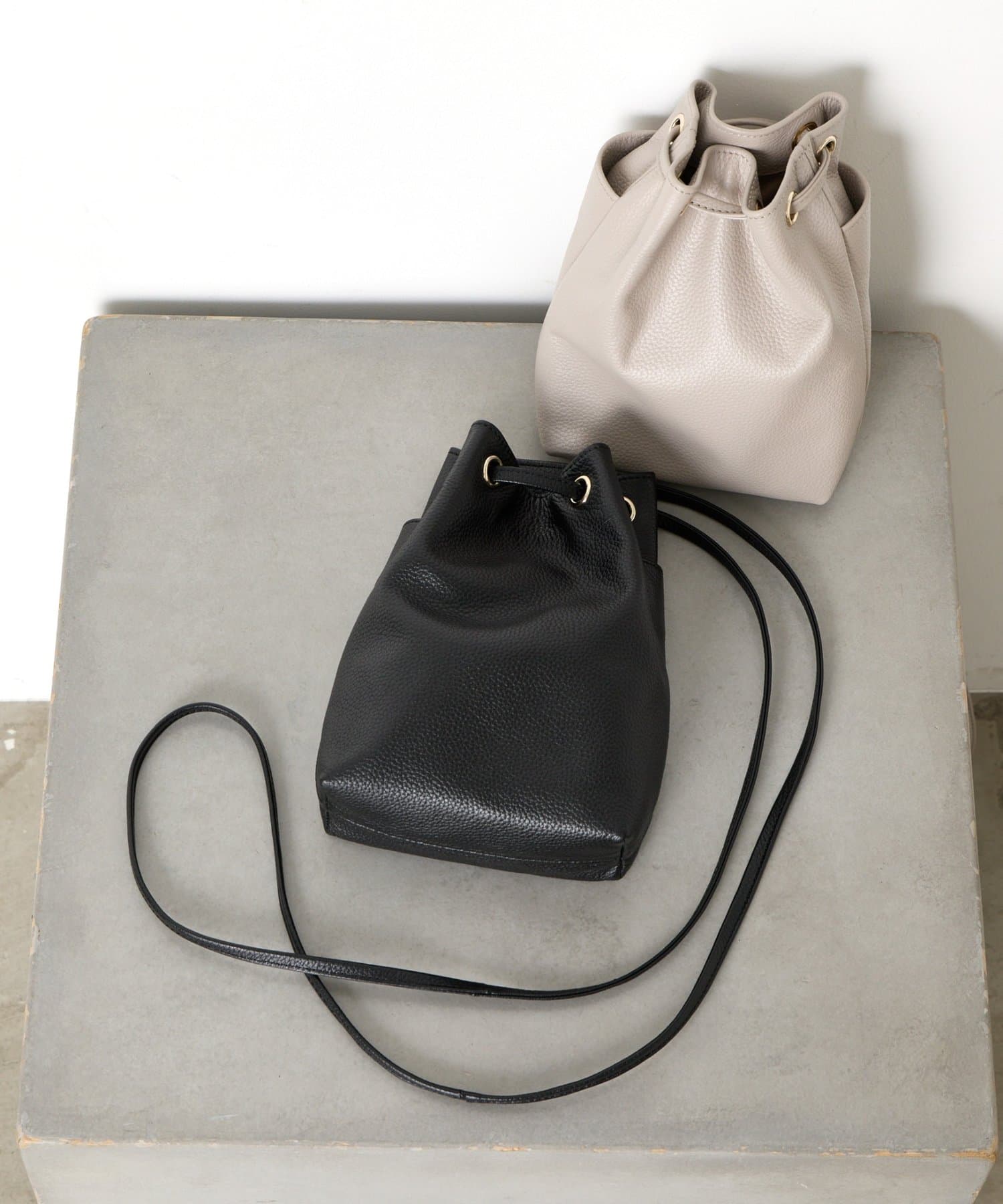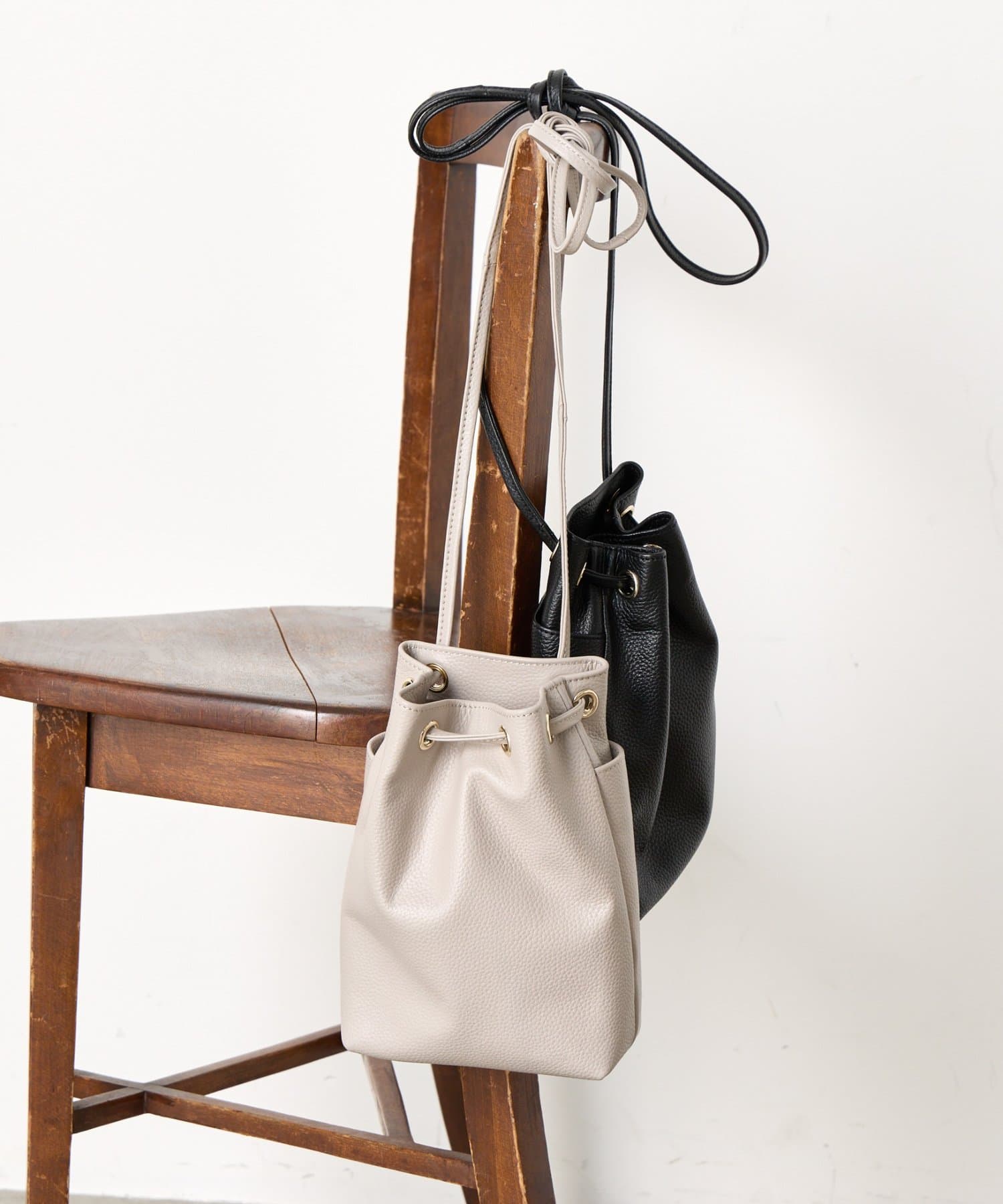 ・コロンとしたシルエットが可愛らしい巾着型ショルダー。