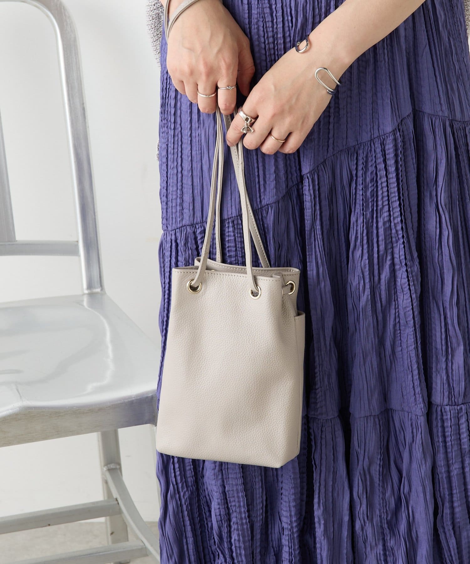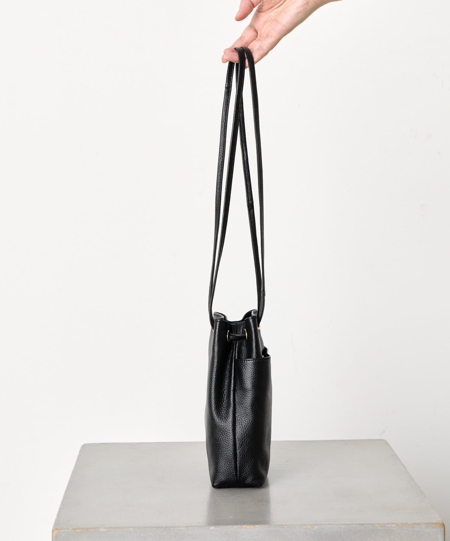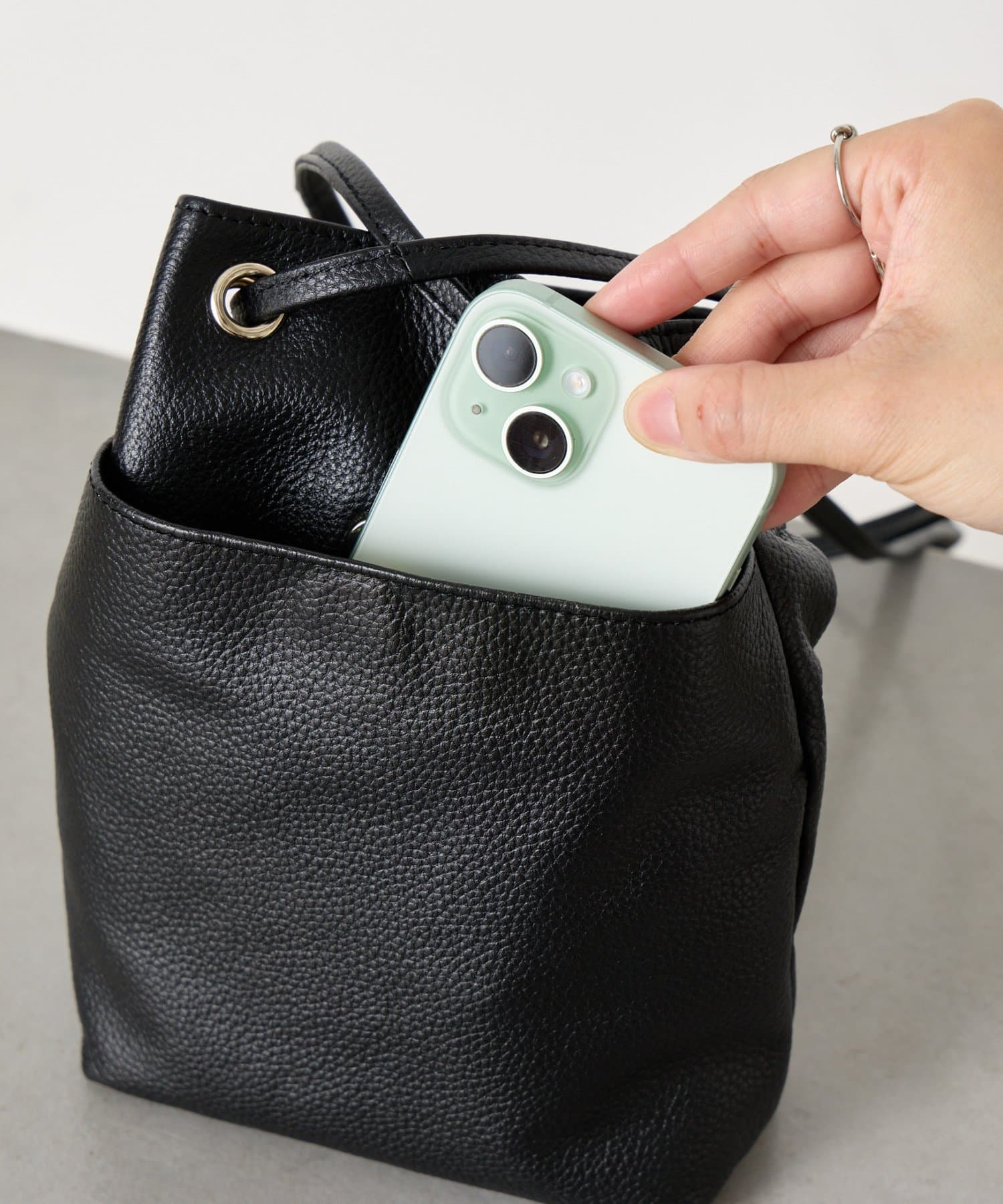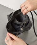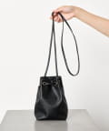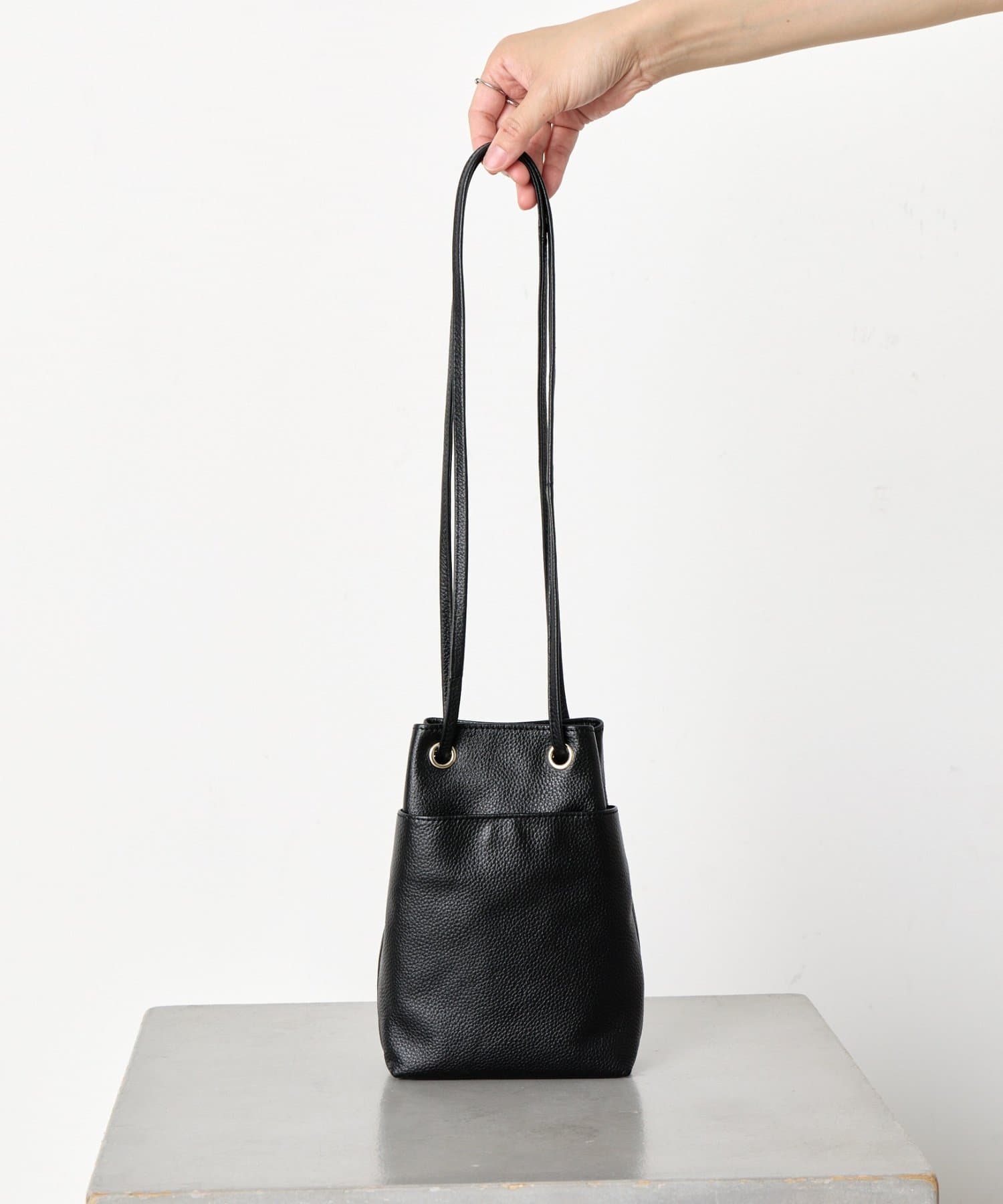 ・コロンとしたシルエットが可愛らしい巾着型ショルダー。