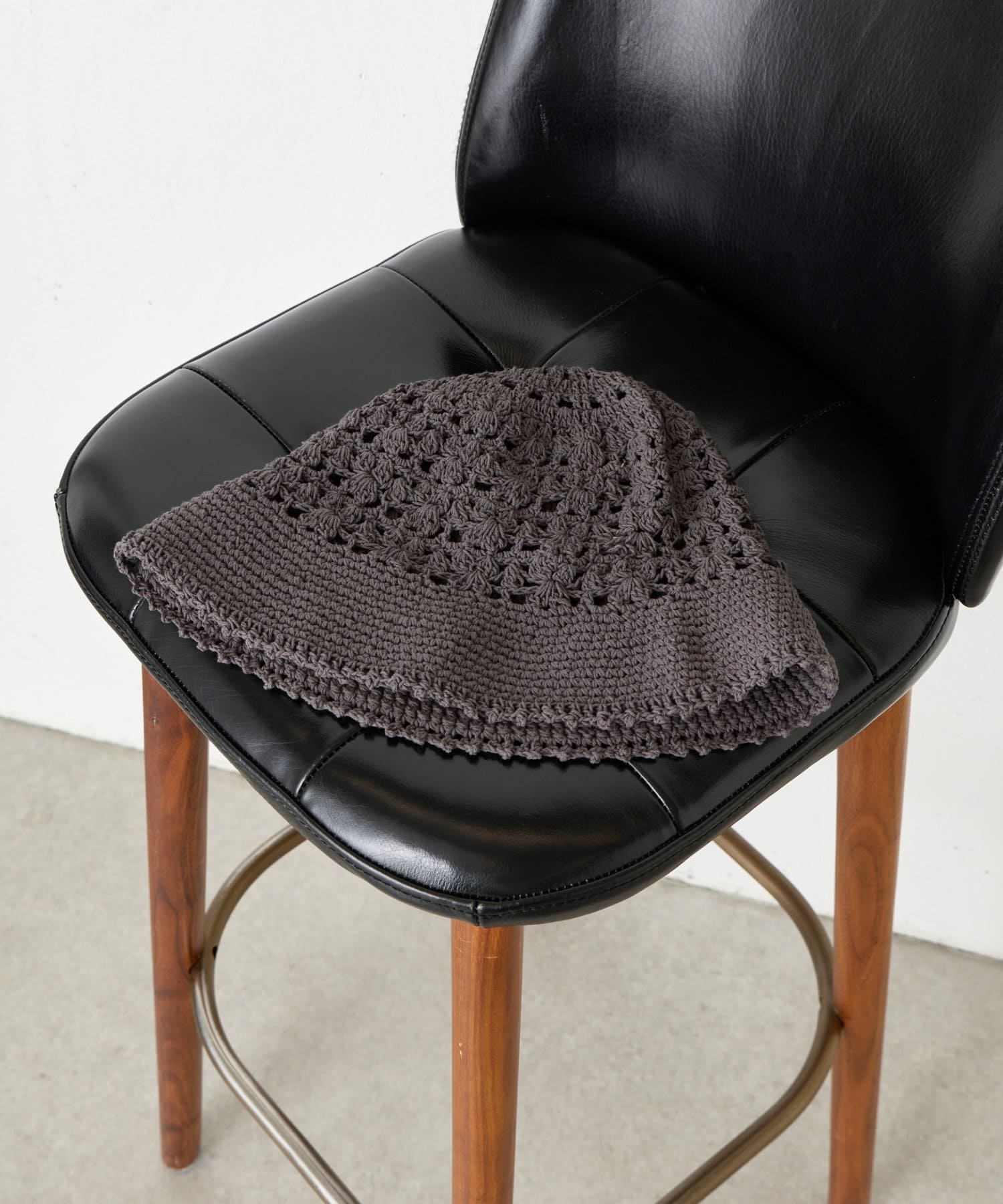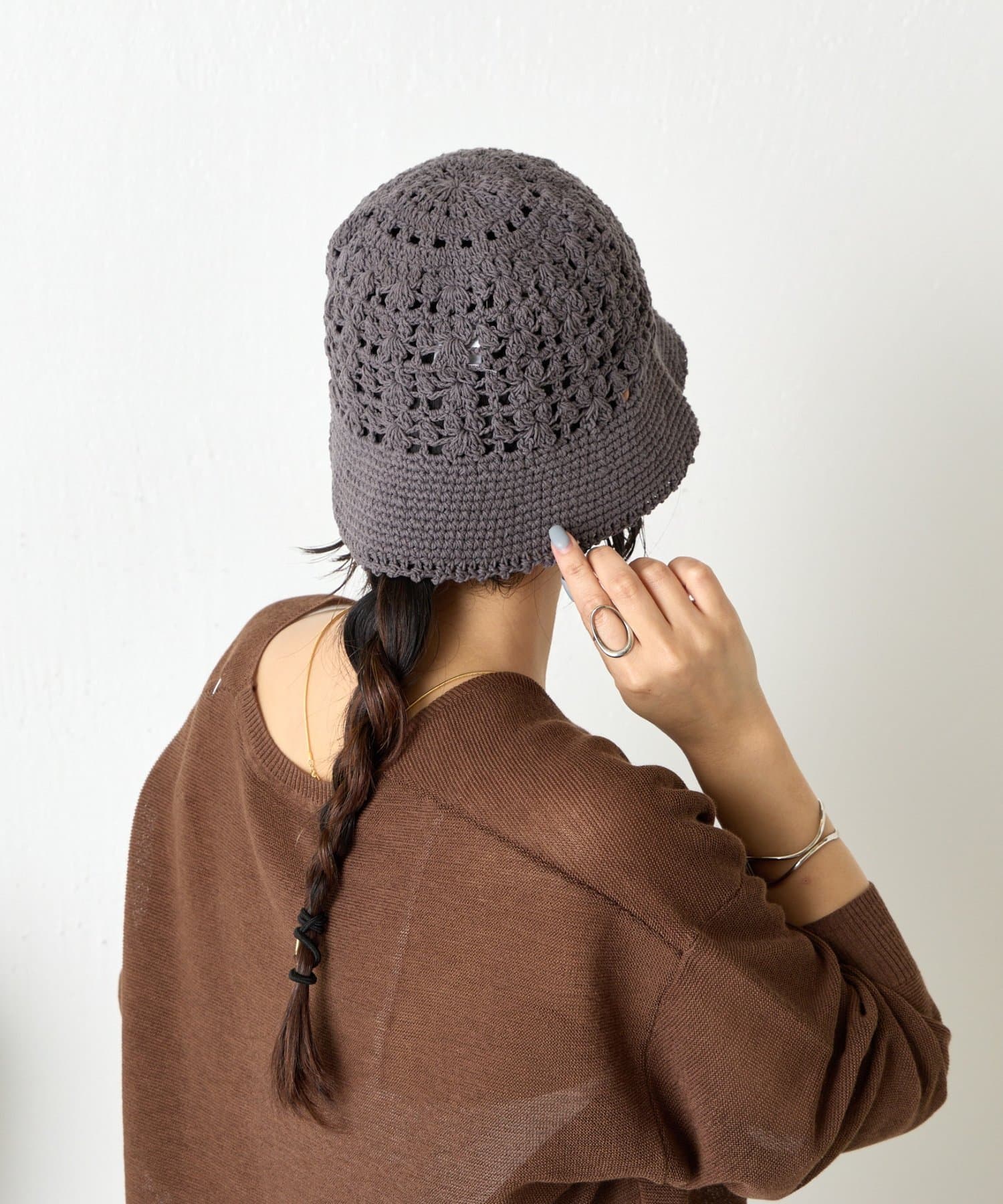 ・ベーシックカラーが使いやすい、クロシェ編みのバケットハット。