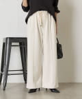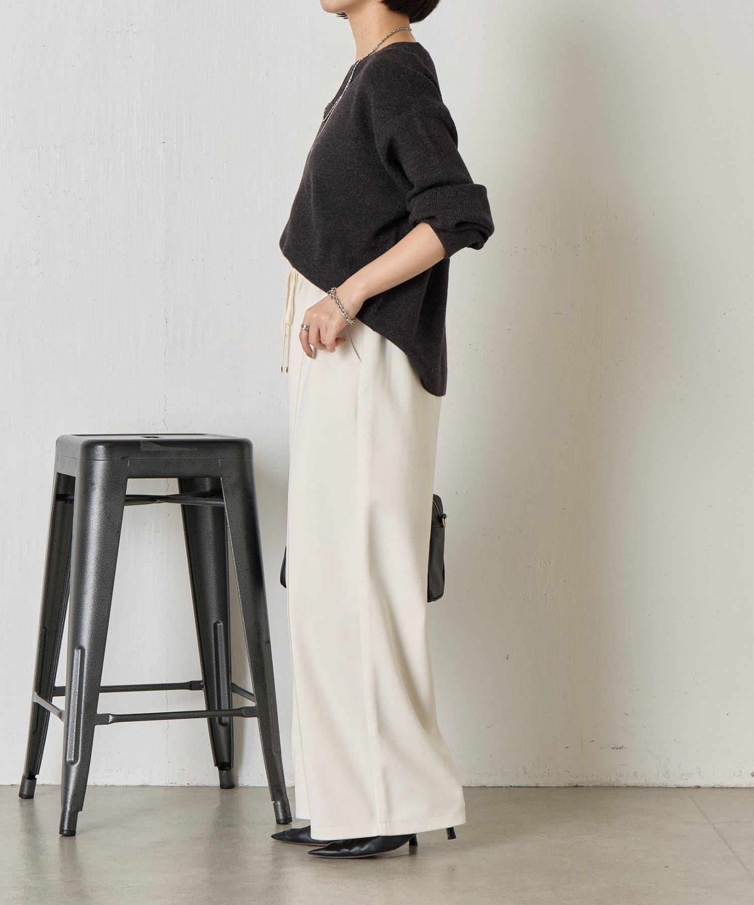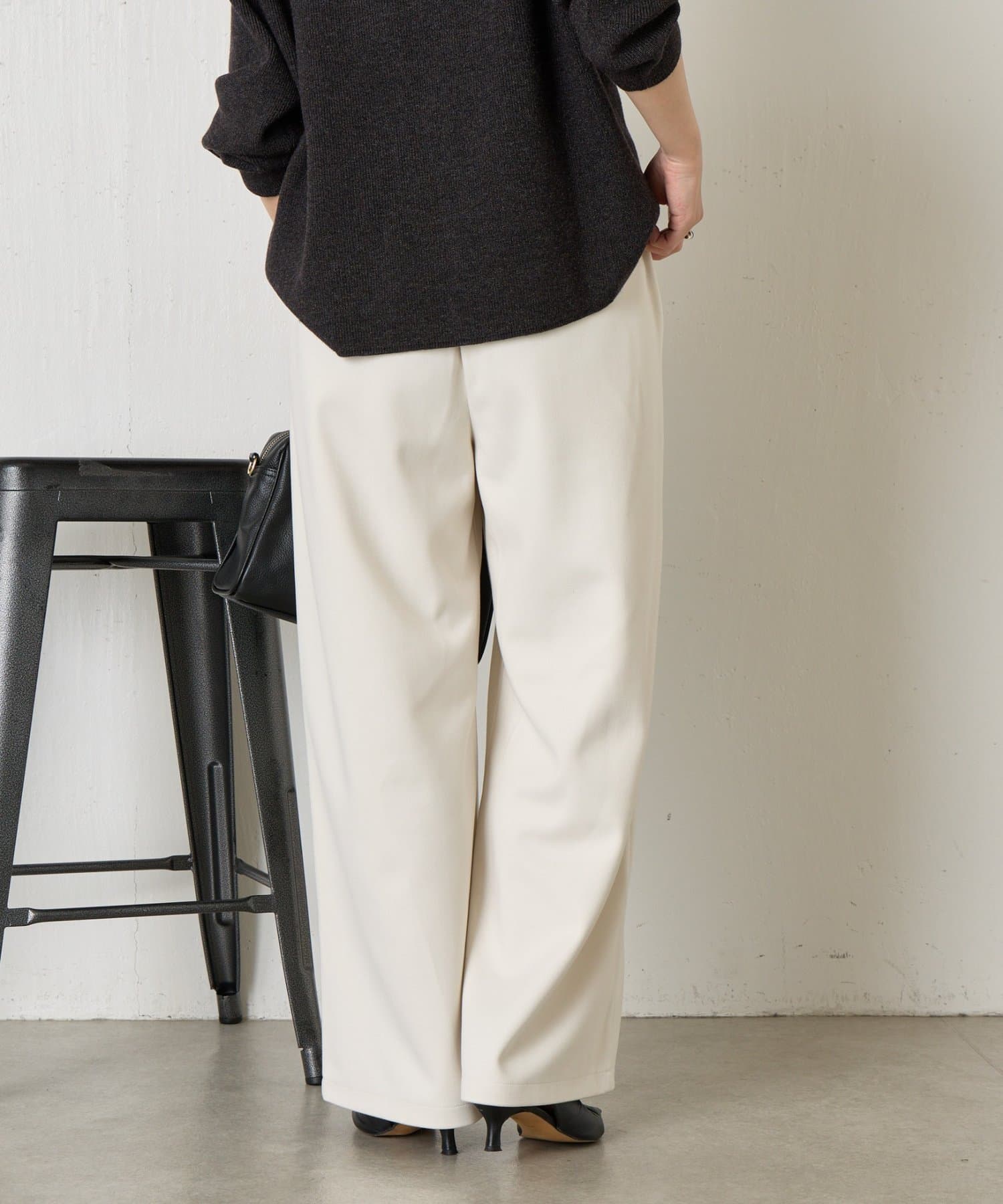 ・高級感溢れるウールライク素材が上品見えするイージーパンツ。