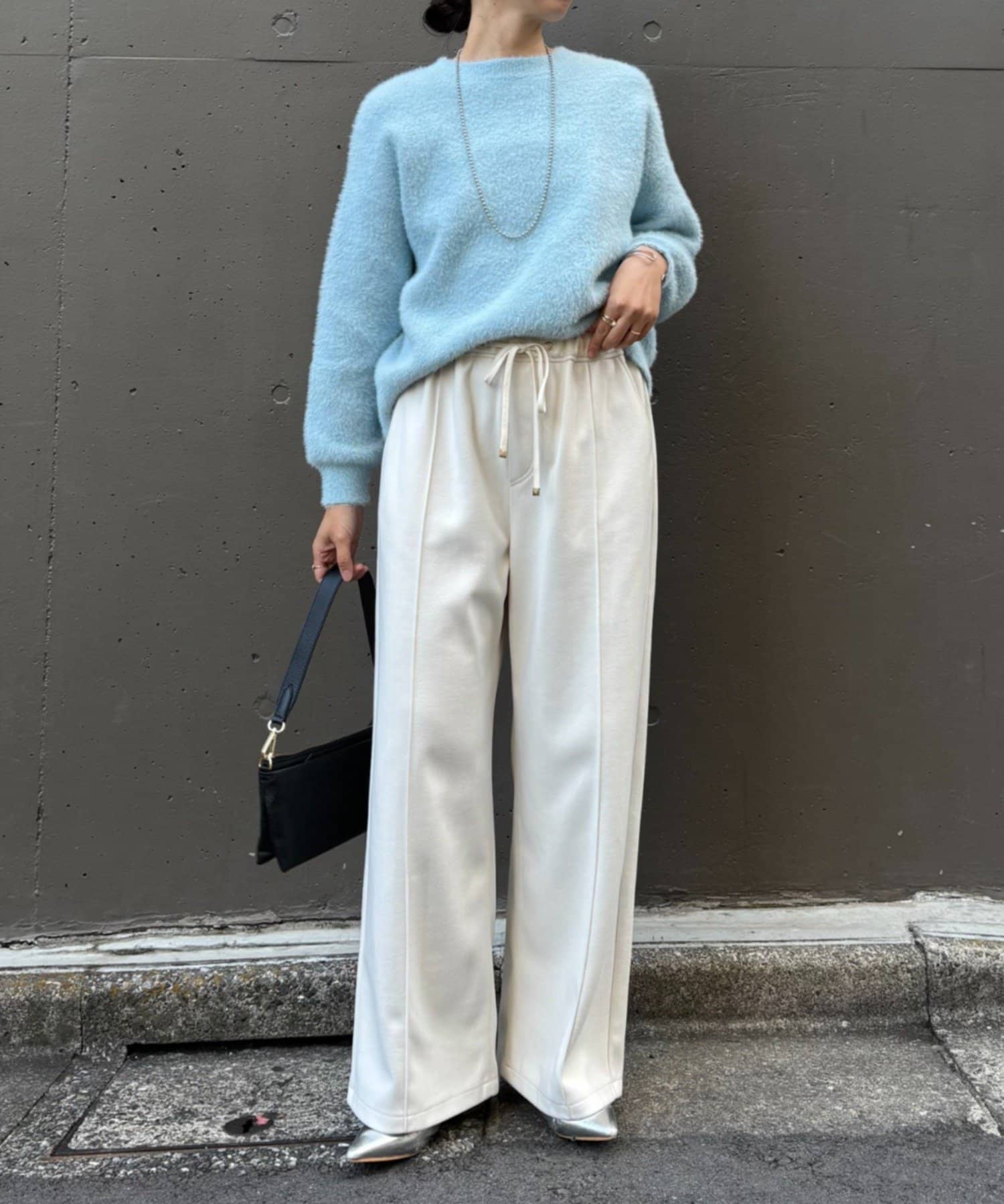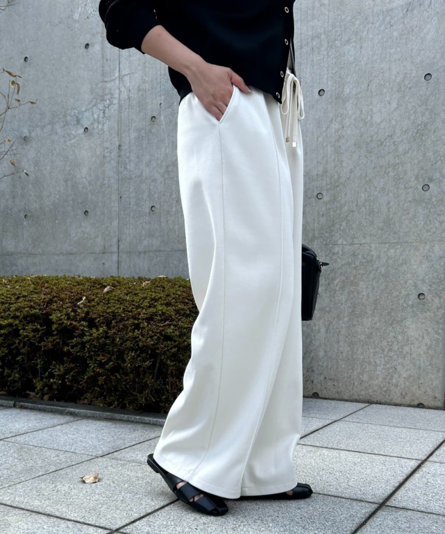 購入場所:パルクローゼット思ってた以上に綺麗なパンツでした。素材感も良い、履き心地も良い、楽ちんなのにシルエットもとても綺麗です。冬のホワイトコーデが楽しみ♪