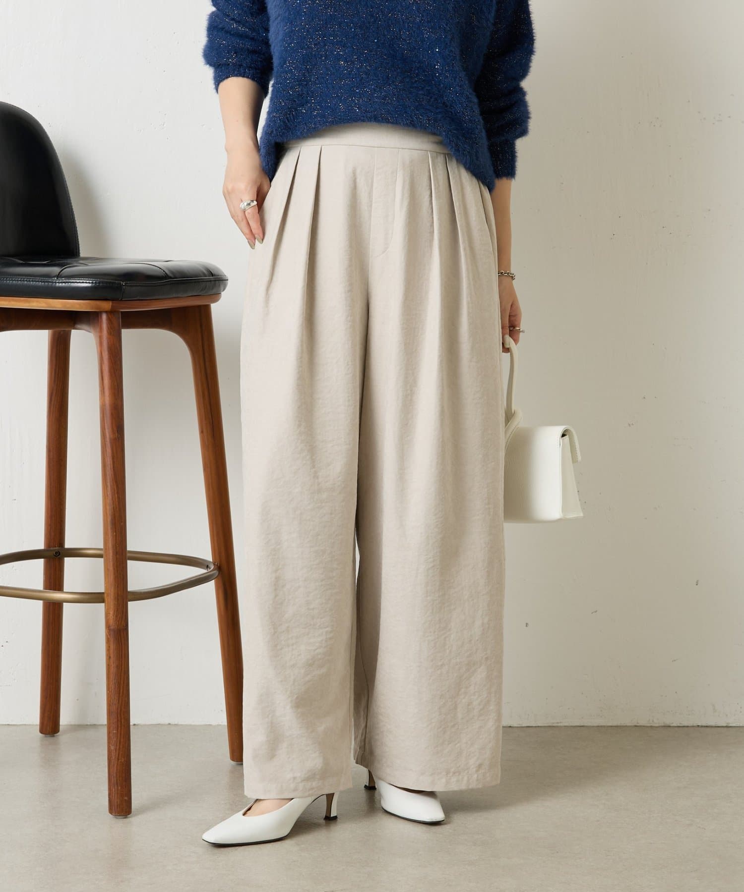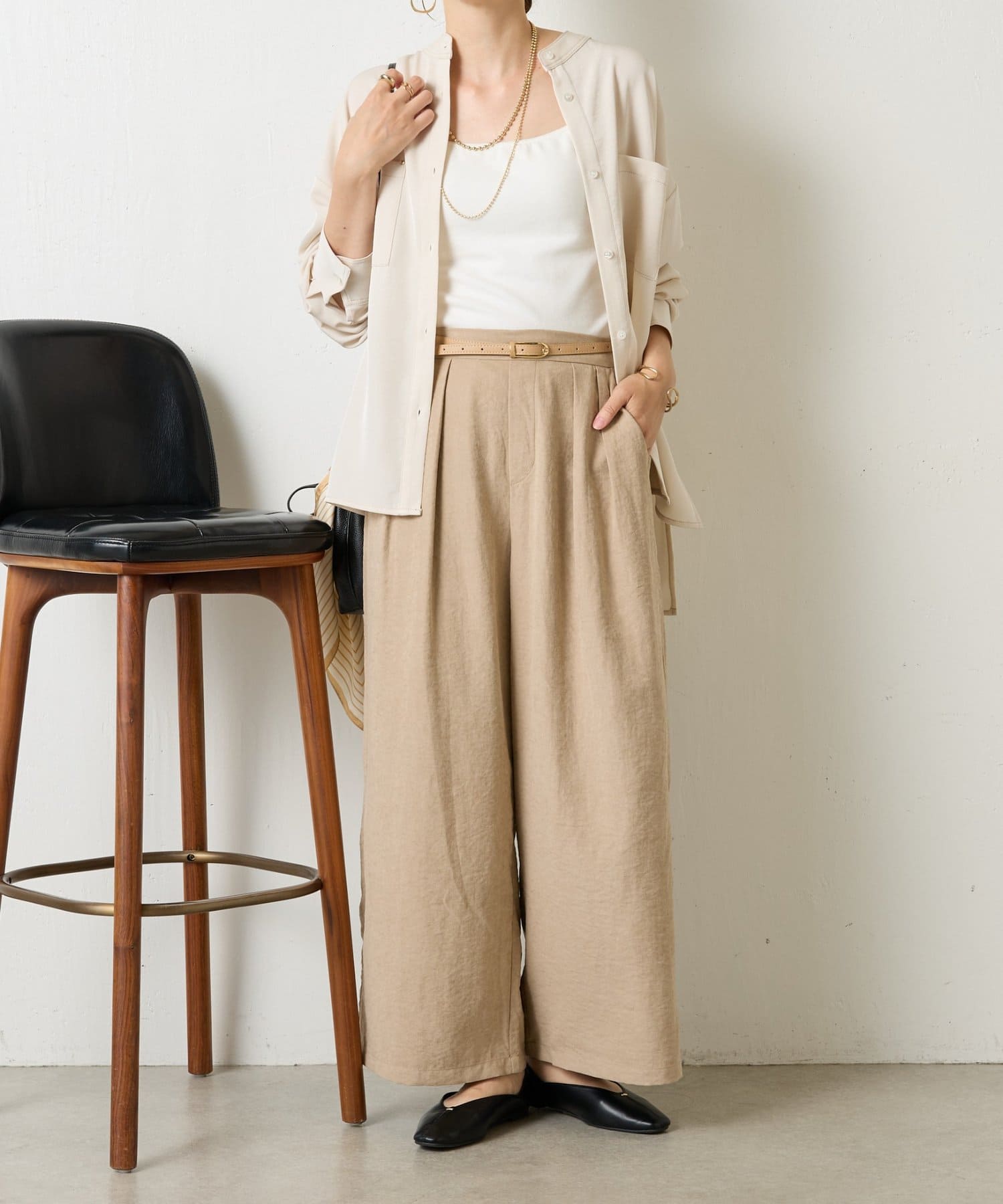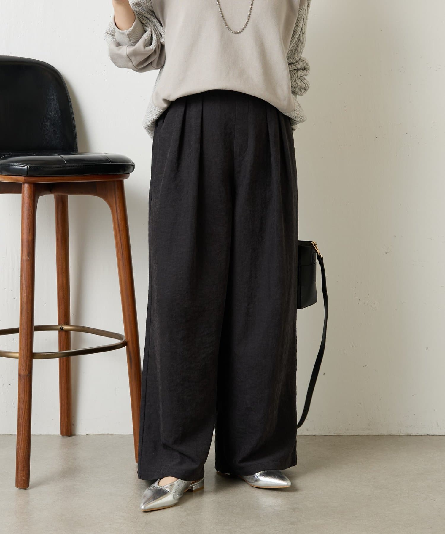・フロントに入った深めのタックが立体感を演出し、脚のラインをきれいに見せてくれるデザイン。