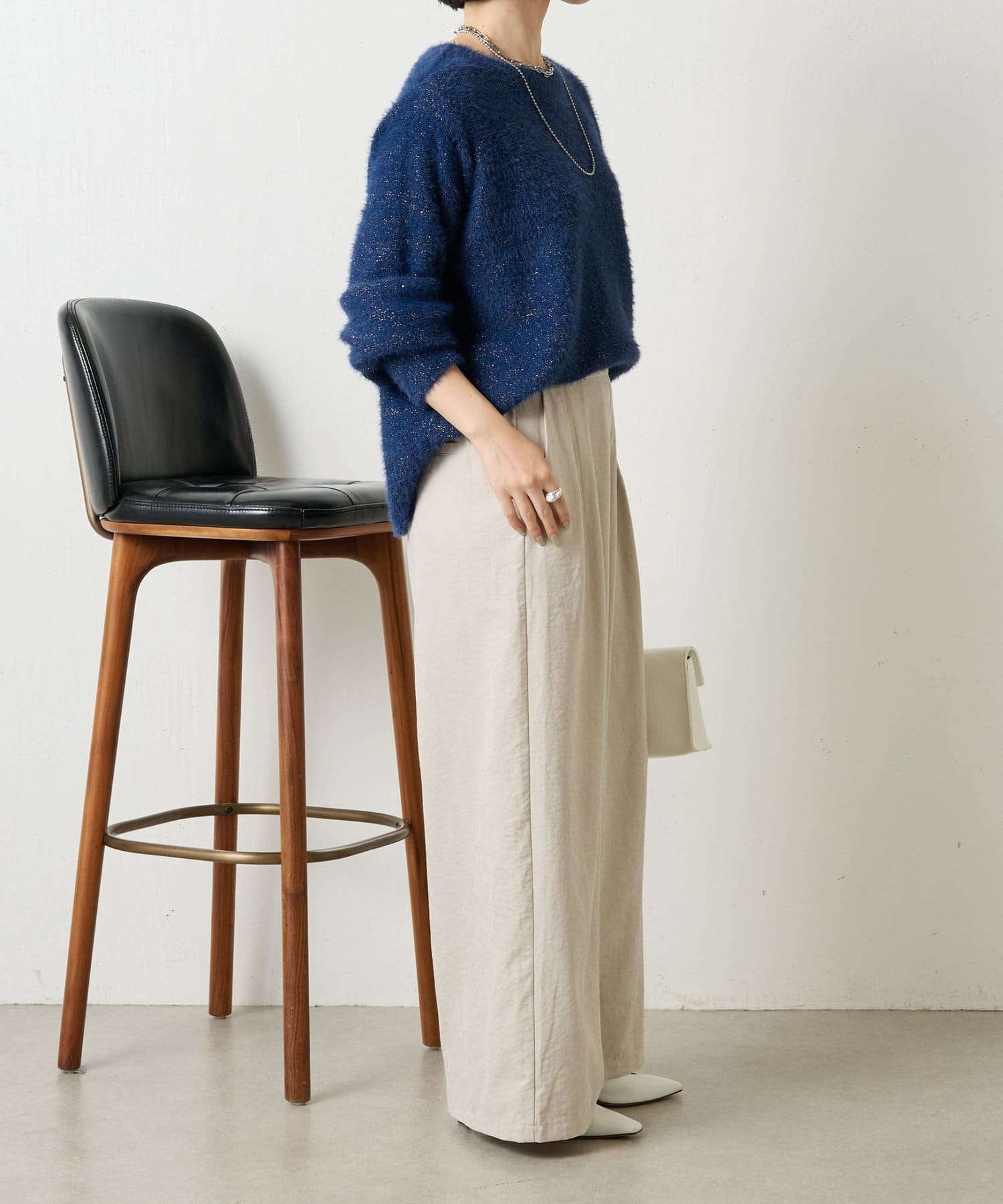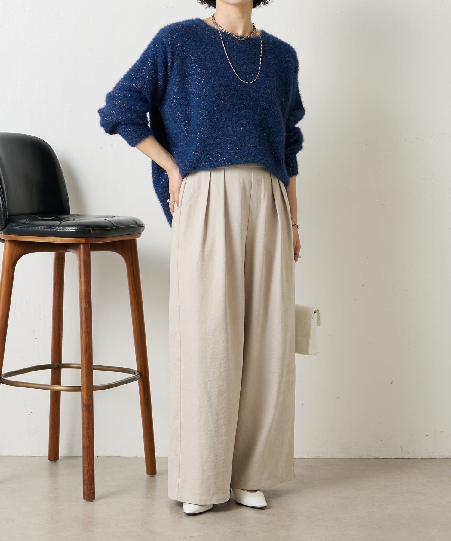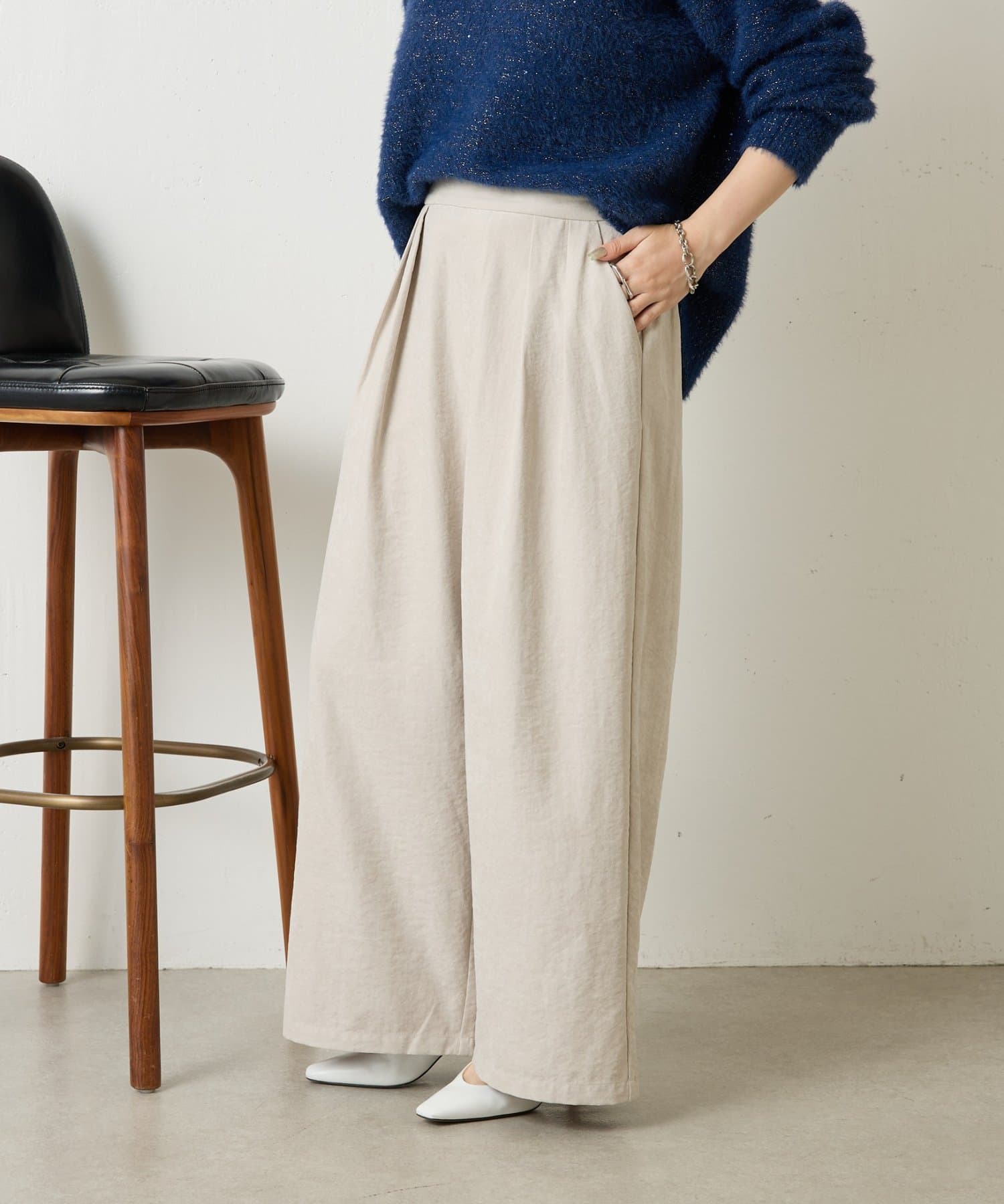 ・フロントに入った深めのタックが立体感を演出し、脚のラインをきれいに見せてくれるデザイン。