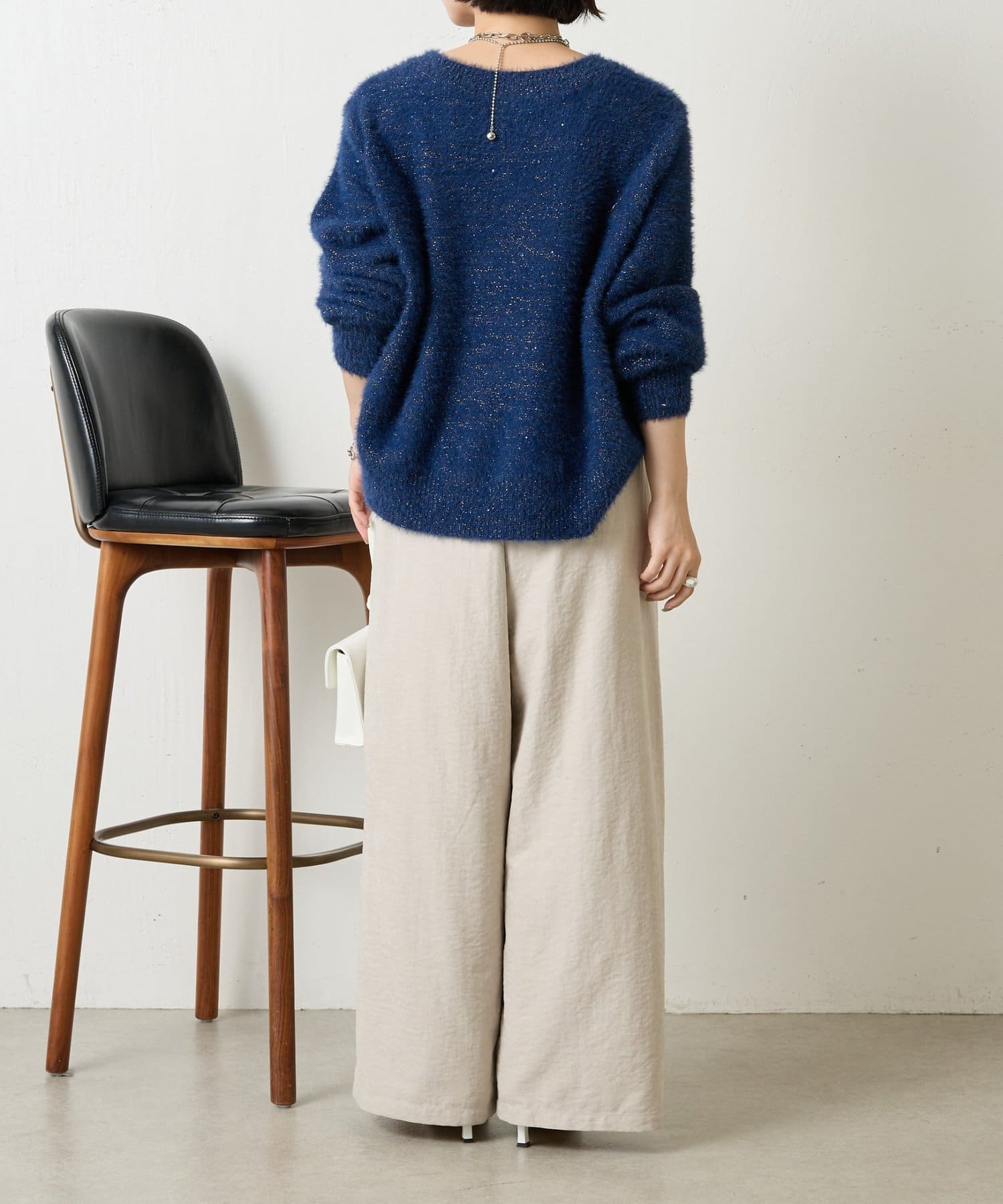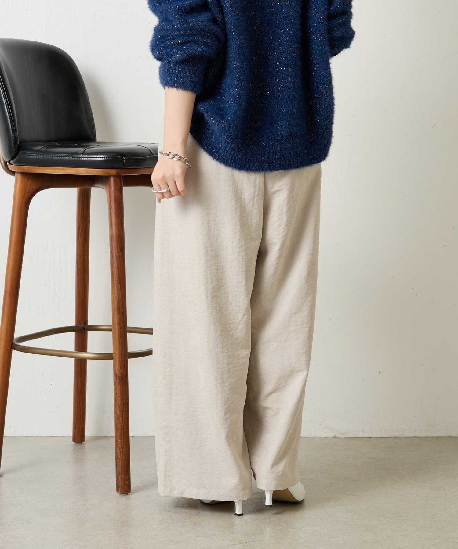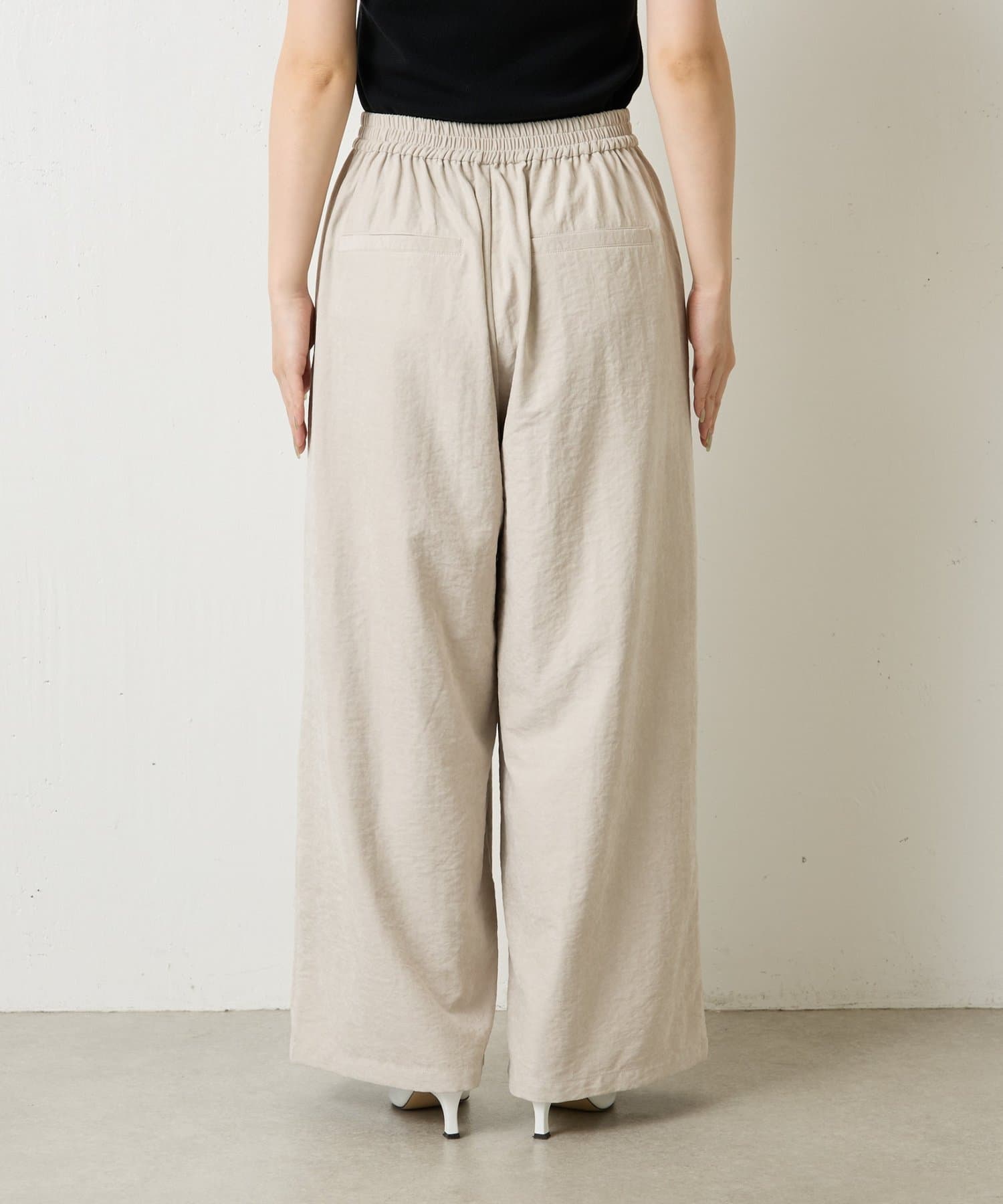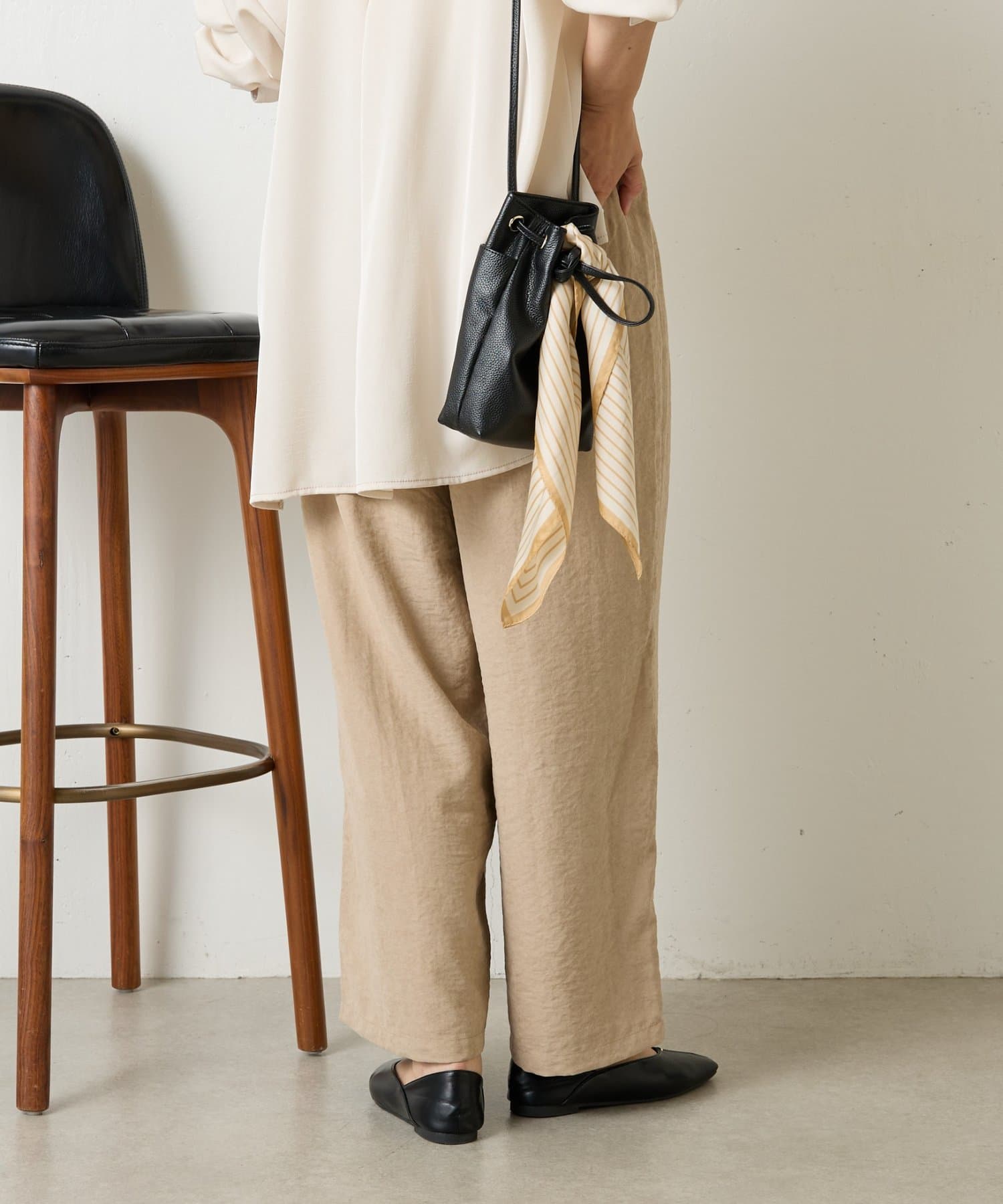・ウエストは後ろゴム仕様で、見た目のきちんと感とは裏腹にストレスフリーなはき心地。