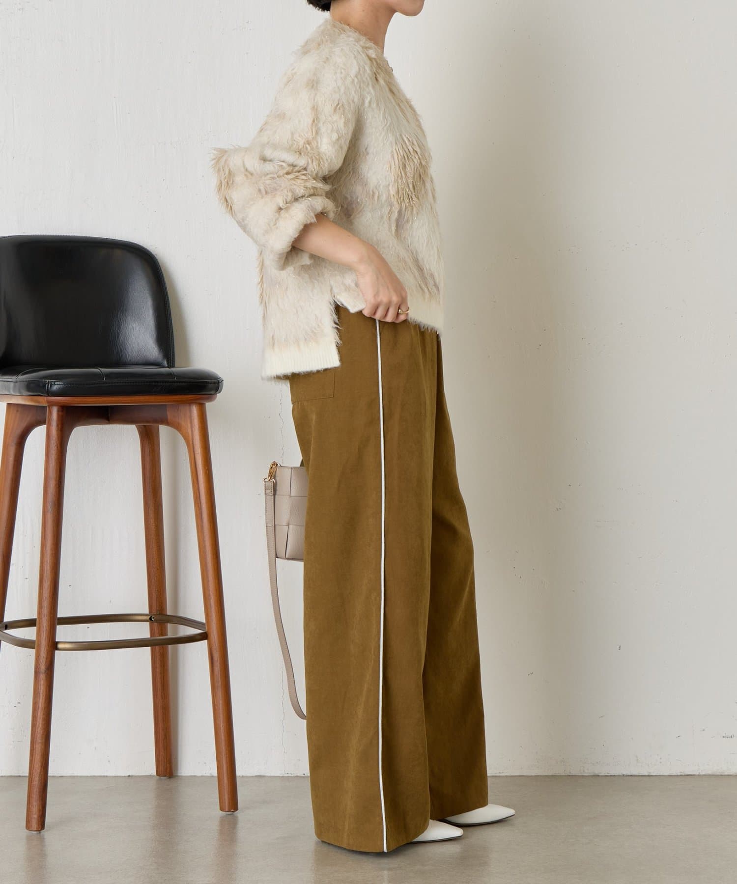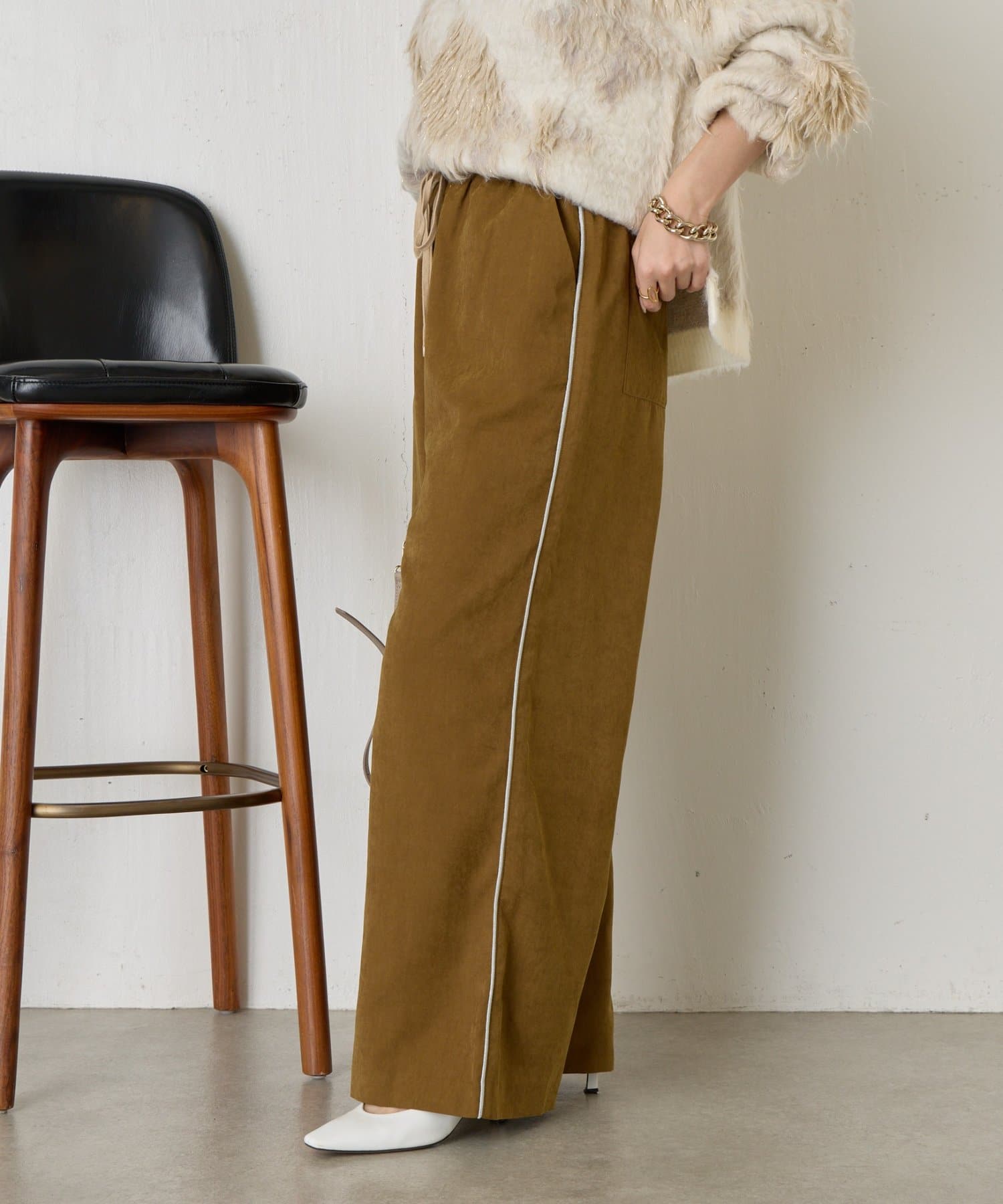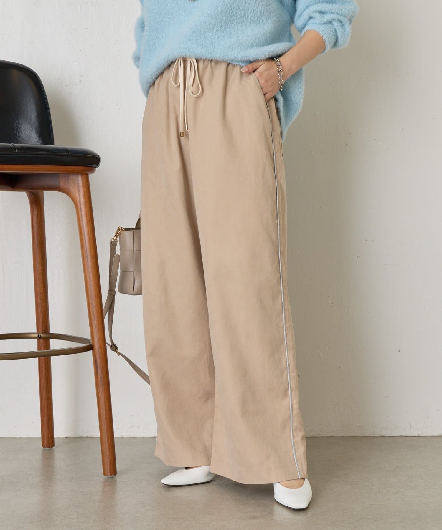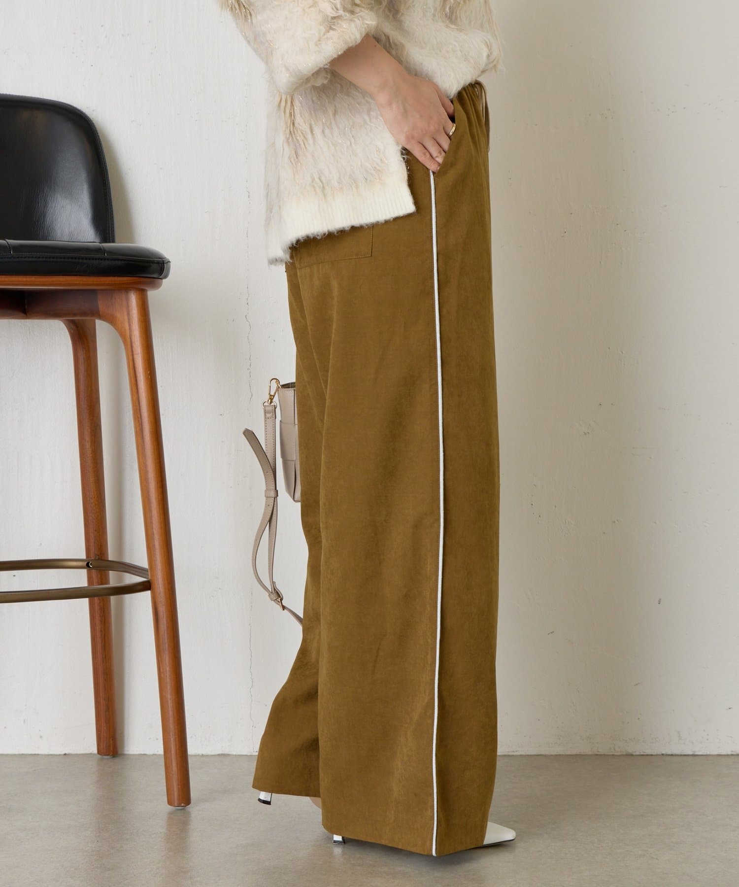 ・サイドに施されたパイピングラインが縦のラインを強調し、脚をすらりと見せる視覚効果も抜群。