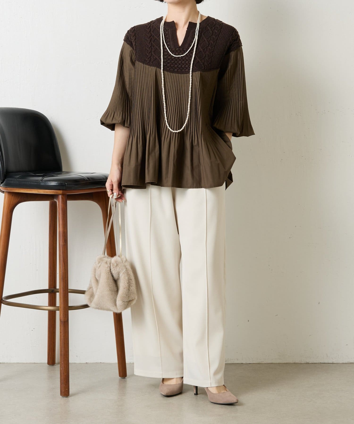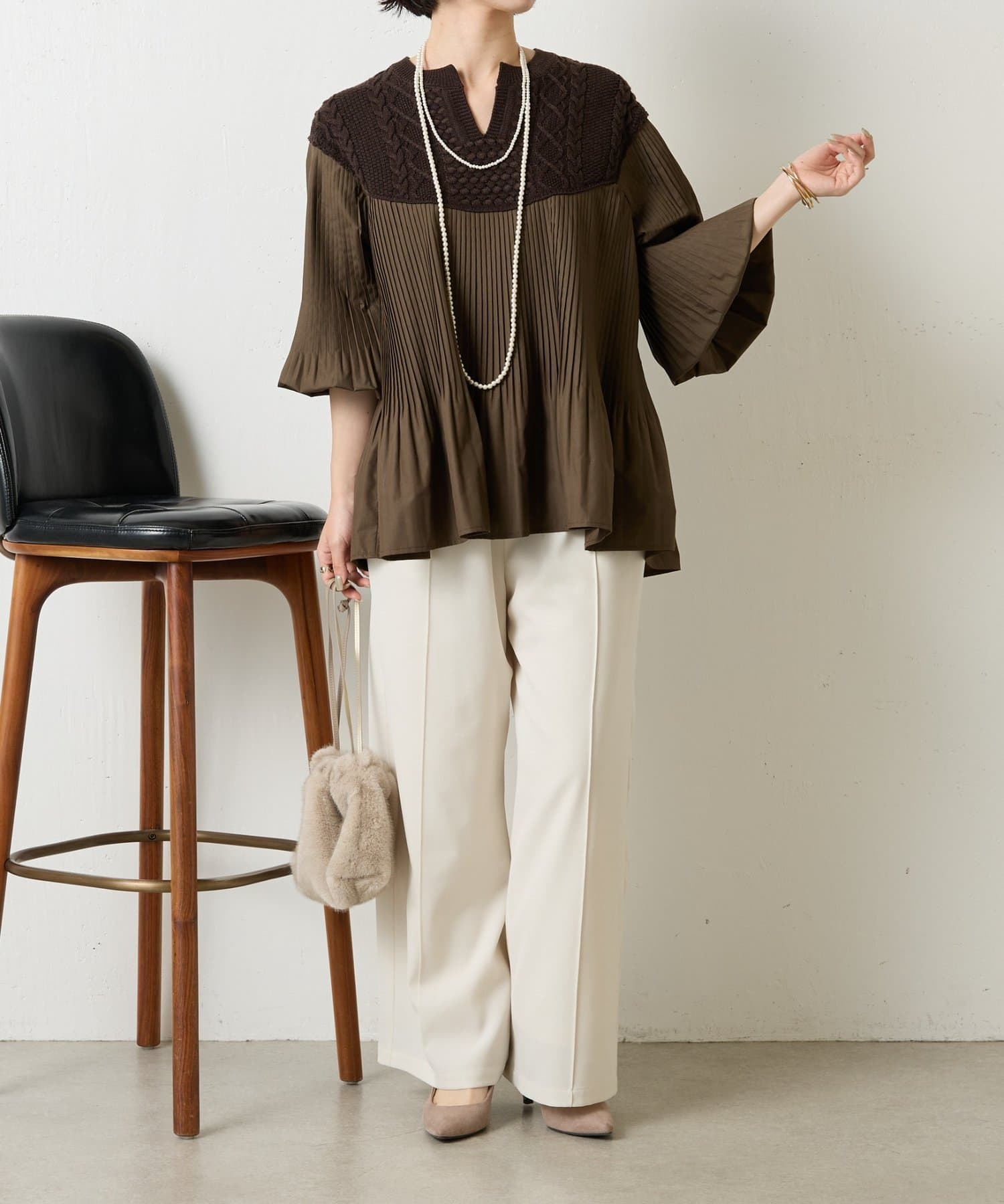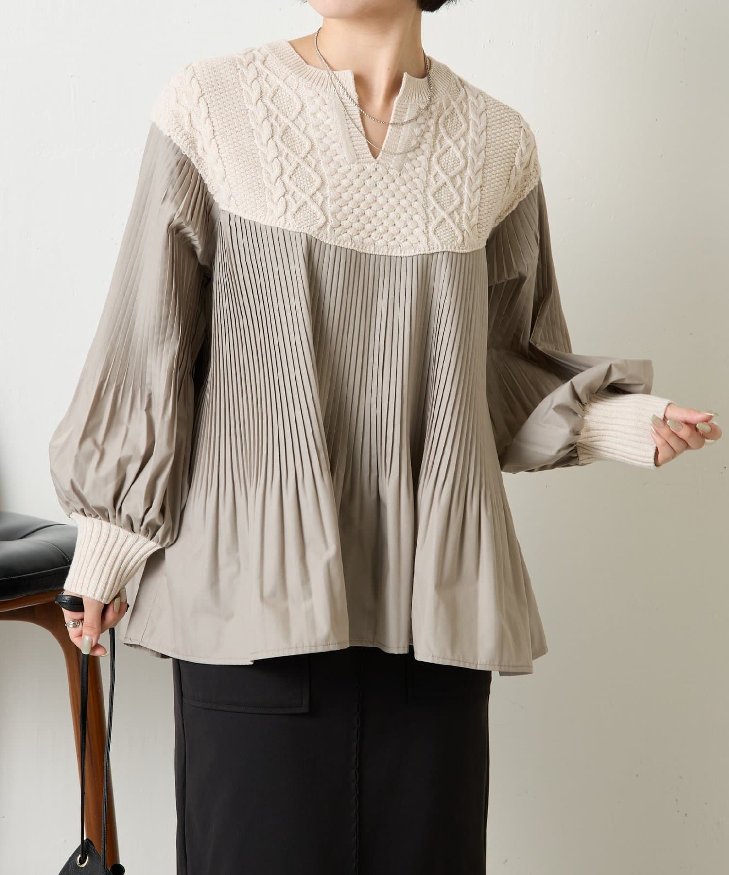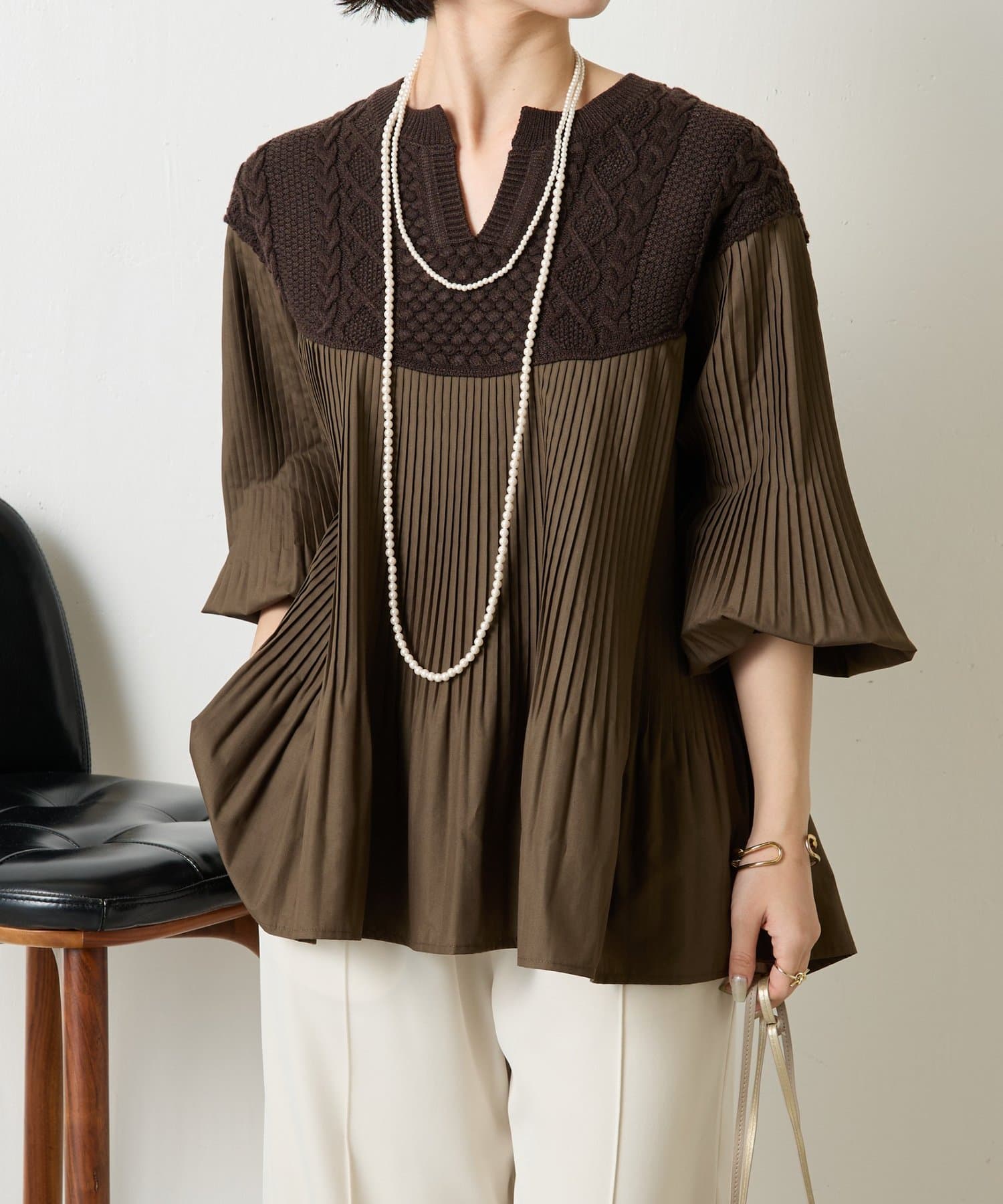 ・大人気のニットドッキングデザインがブラウスになって登場!