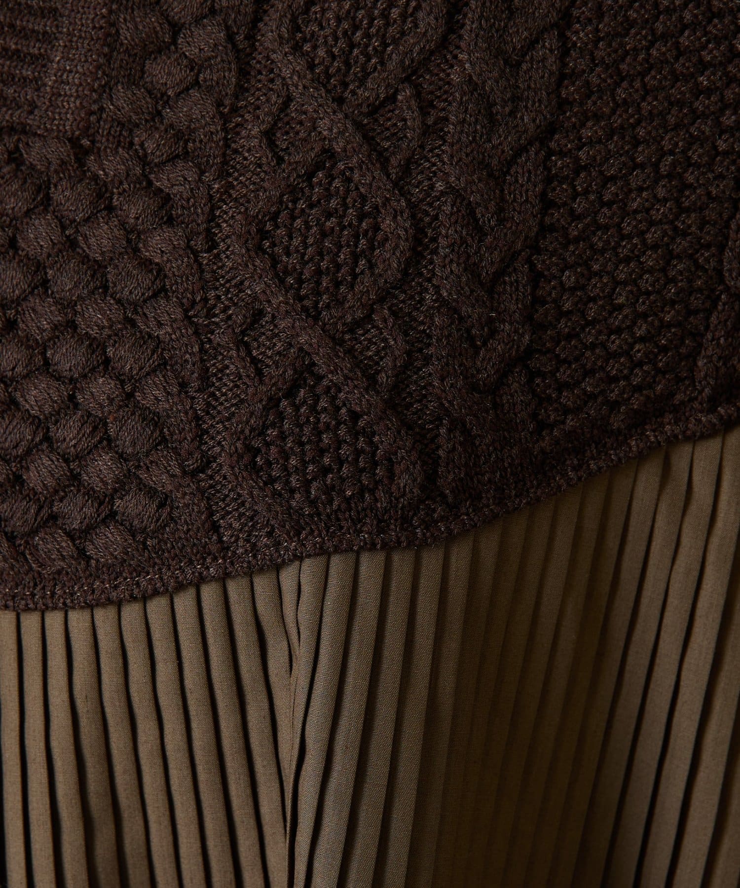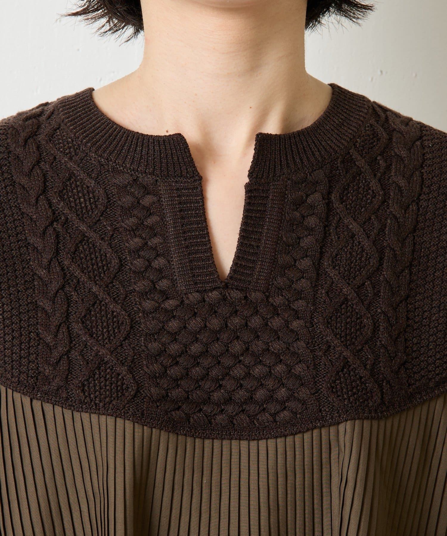 ・首元から胸元がニットになっており秋ムードを漂わせるデザインに。