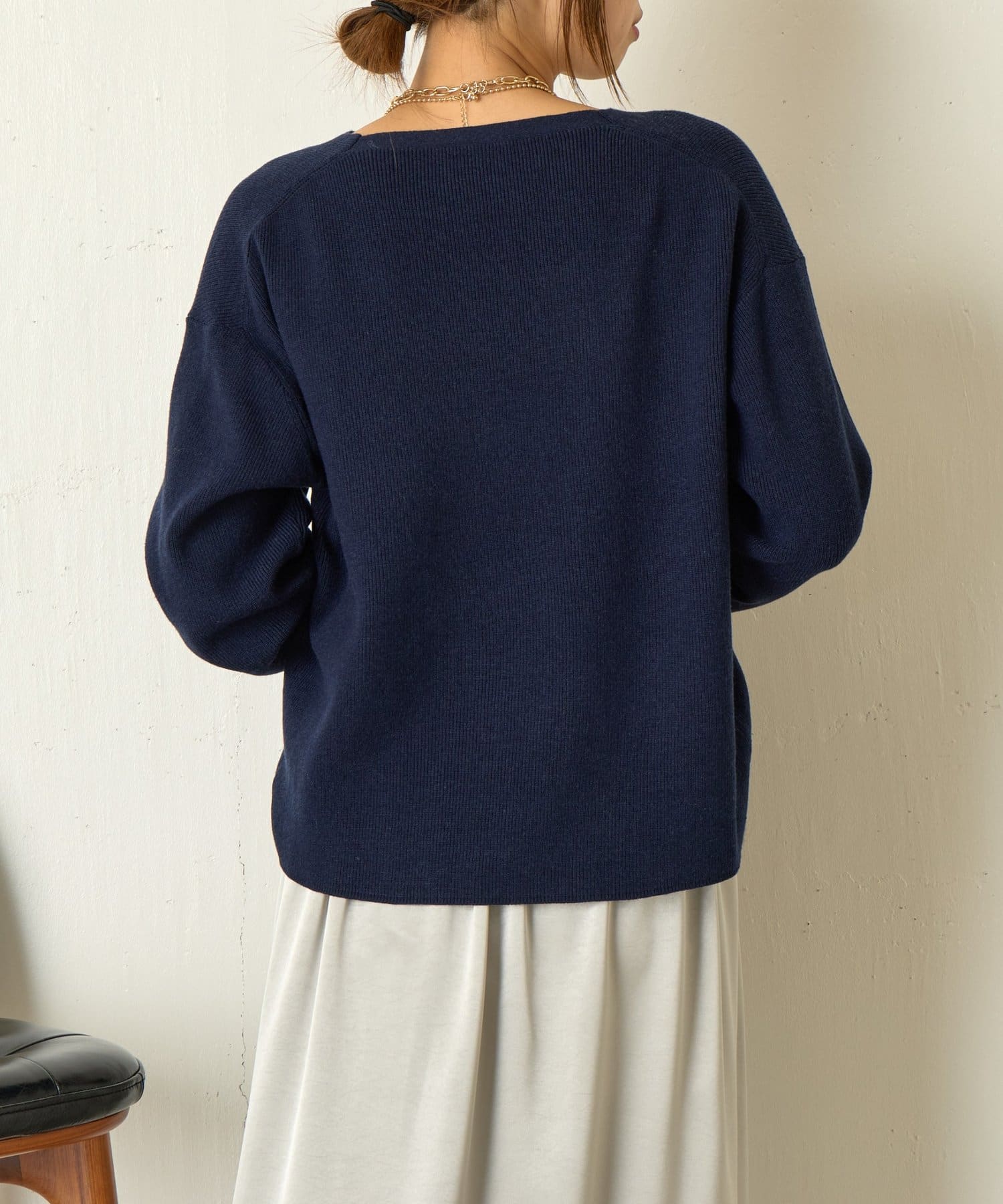 【あったかアウターにぴったり!】カタアゼ編みVネックニット