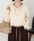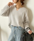 【あったかアウターにぴったり!】カタアゼ編みVネックニット