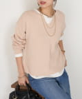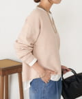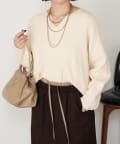 ・絶妙な厚さの生地感と、首元のキーネックデザインががすっきり見えの秘訣!