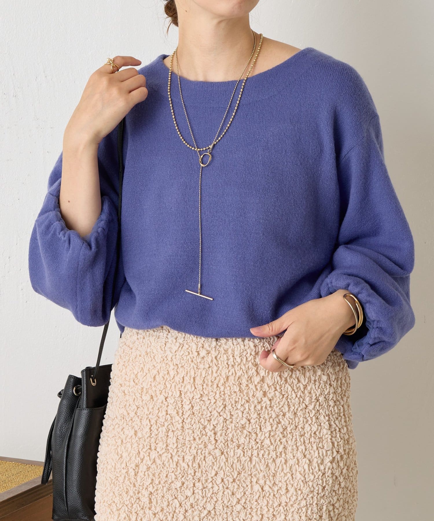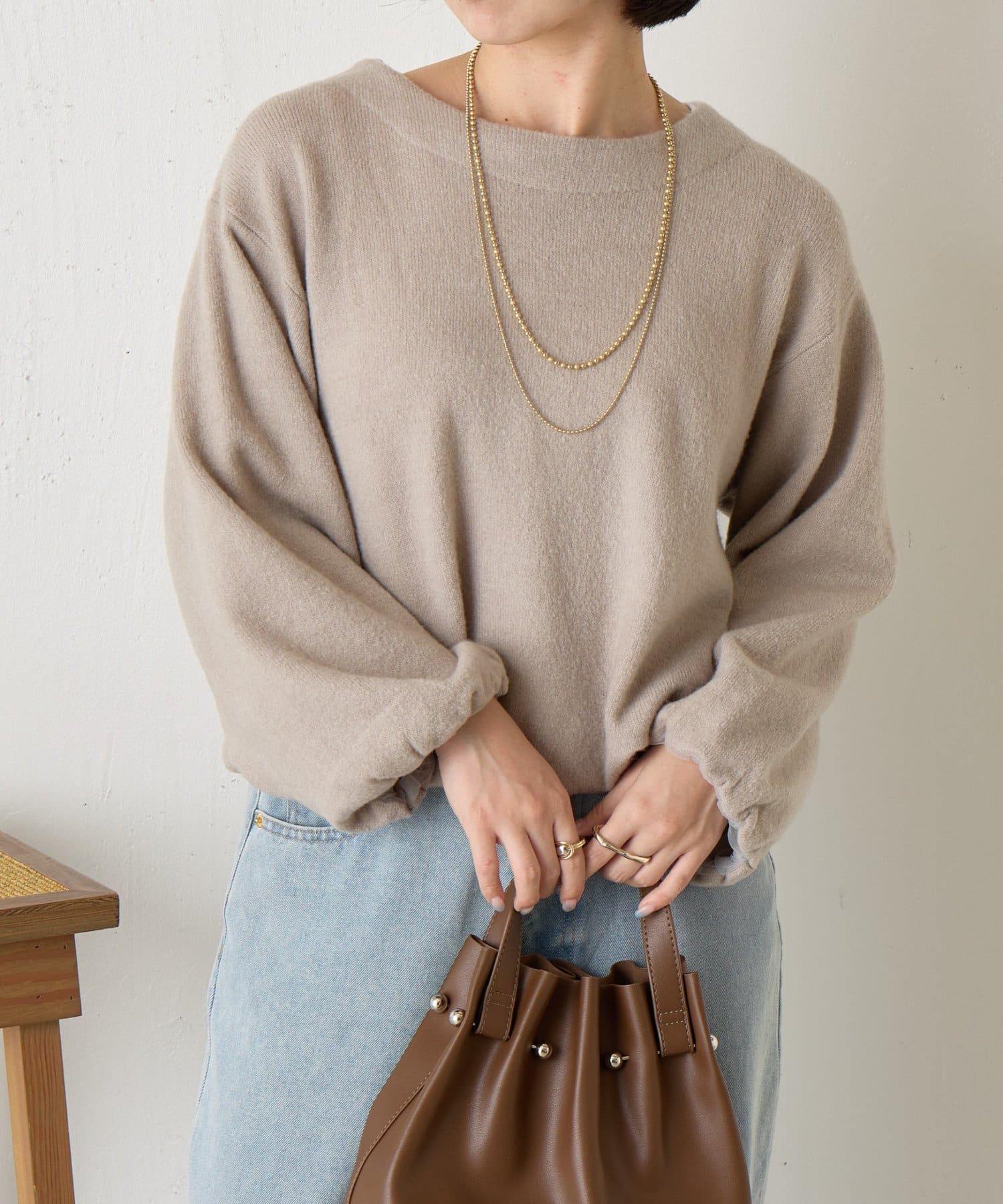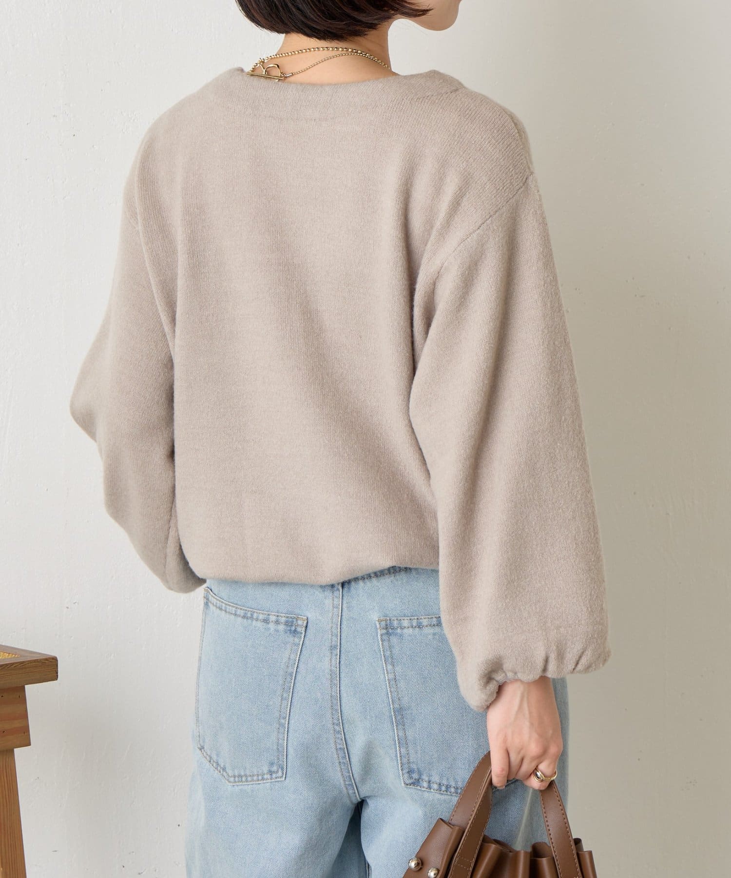 ・袖と裾口部分がバルーンデザインになったニットトップス。