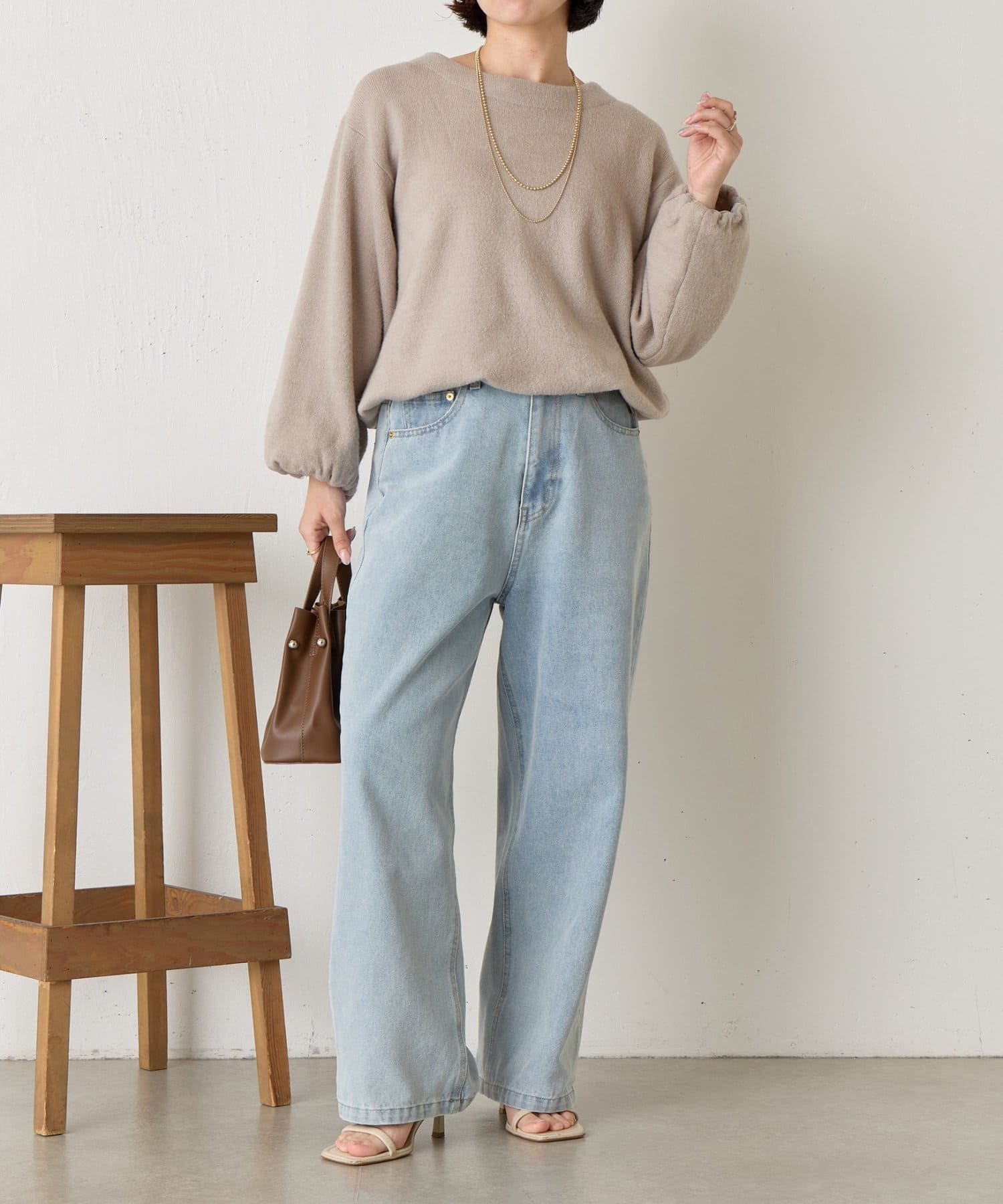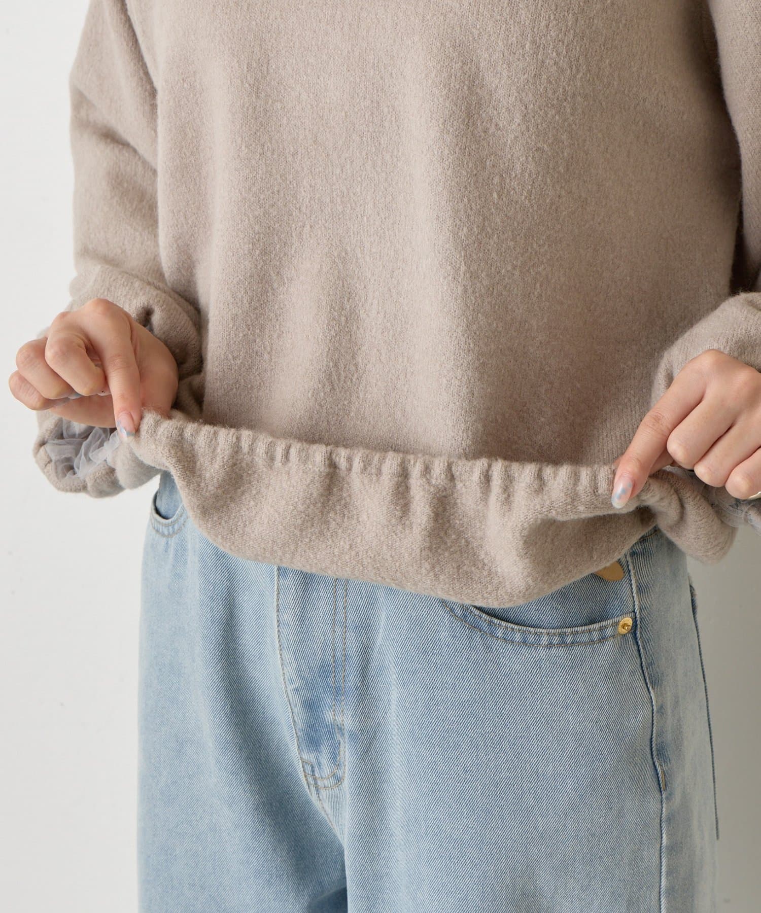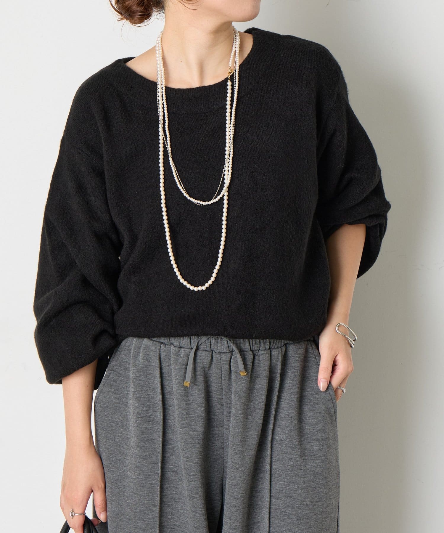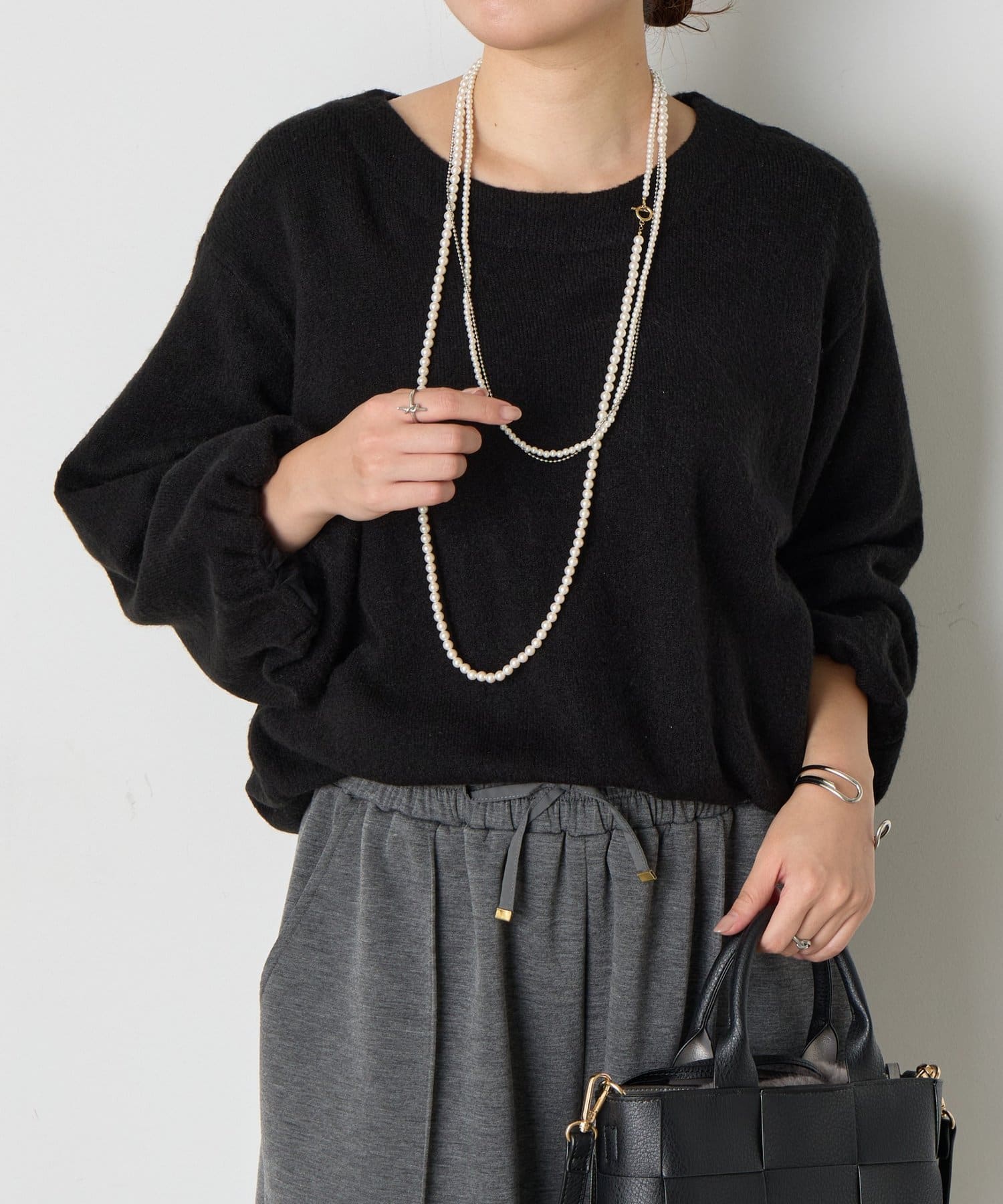 ・袖と裾口部分がバルーンデザインになったニットトップス。