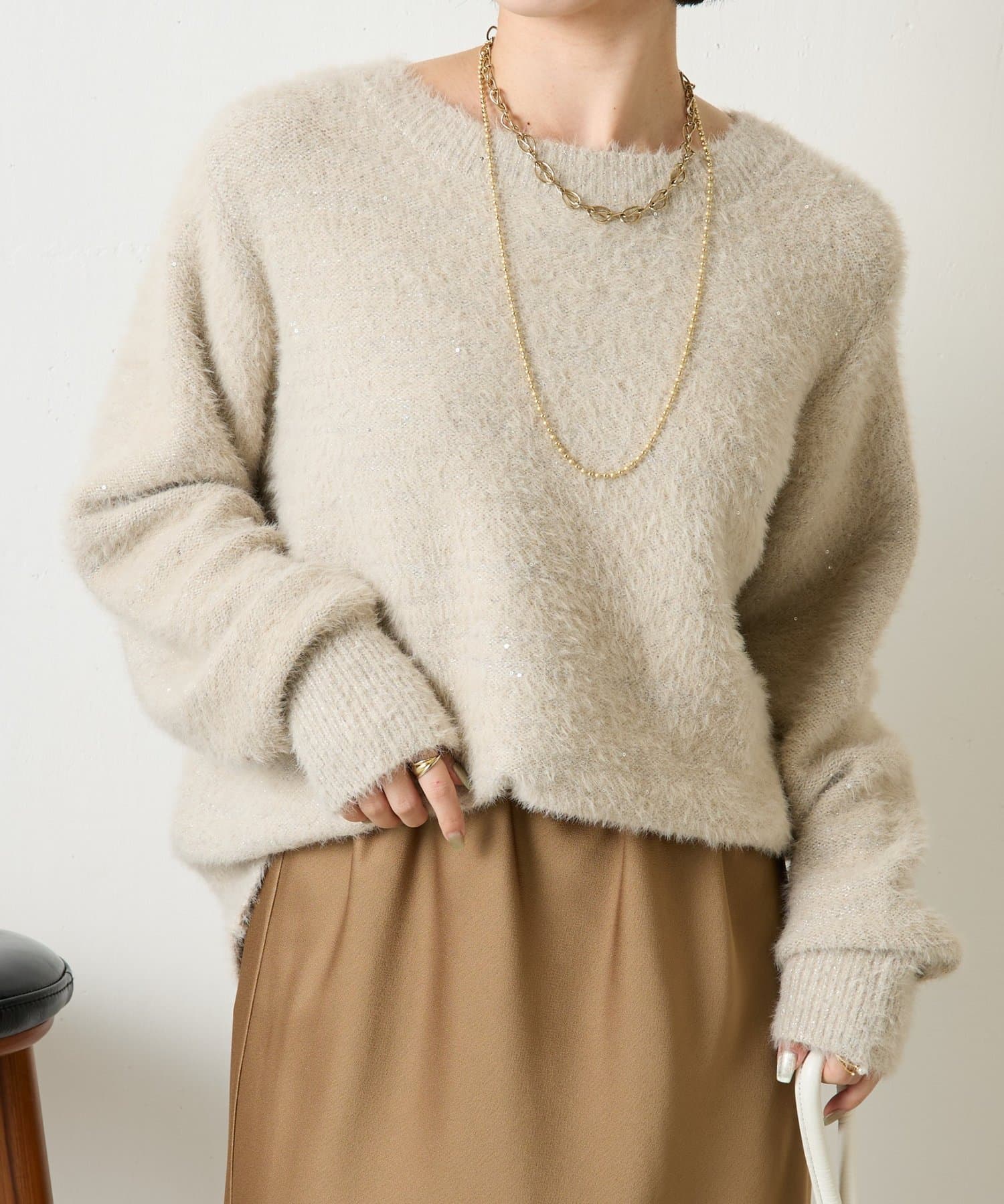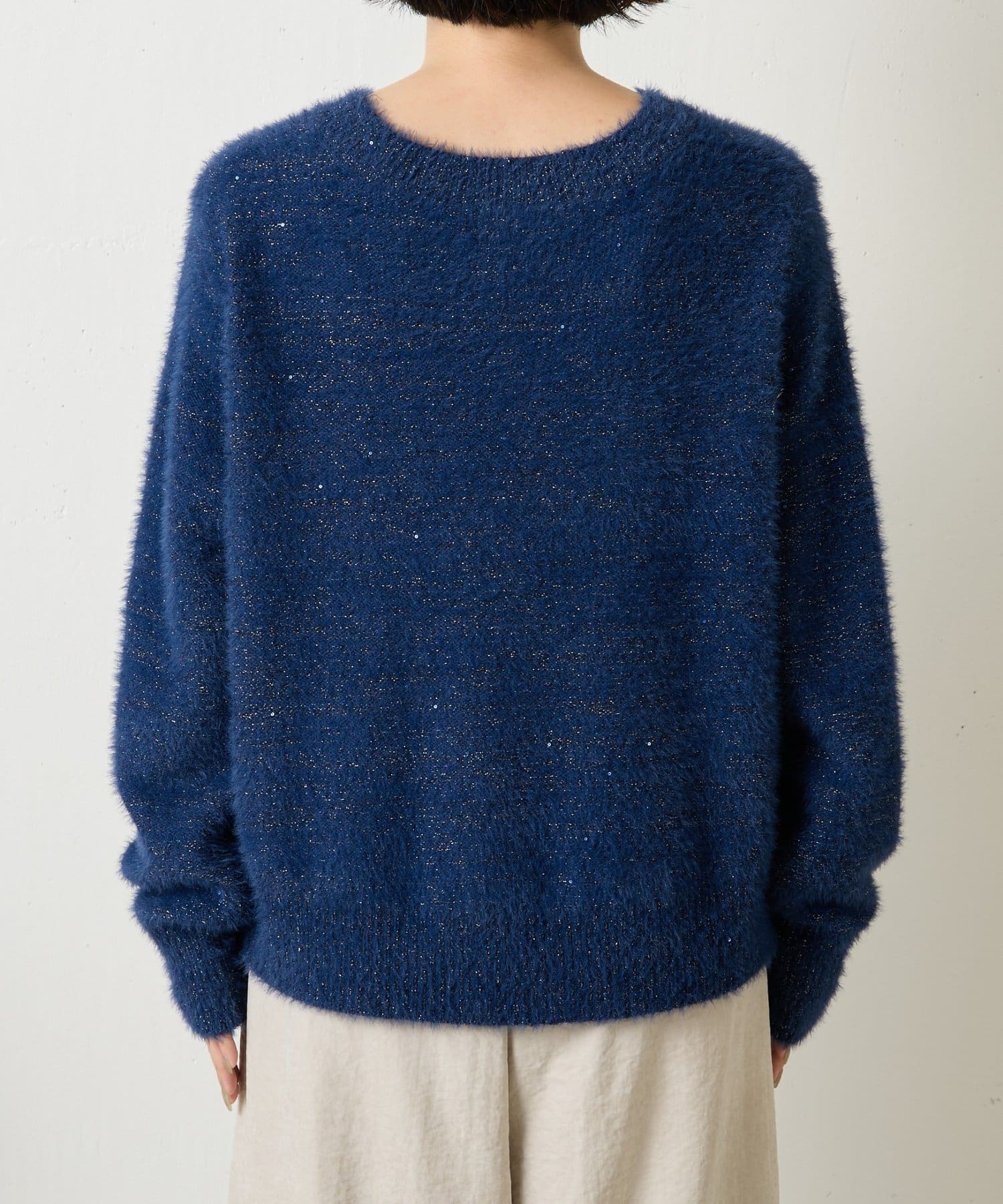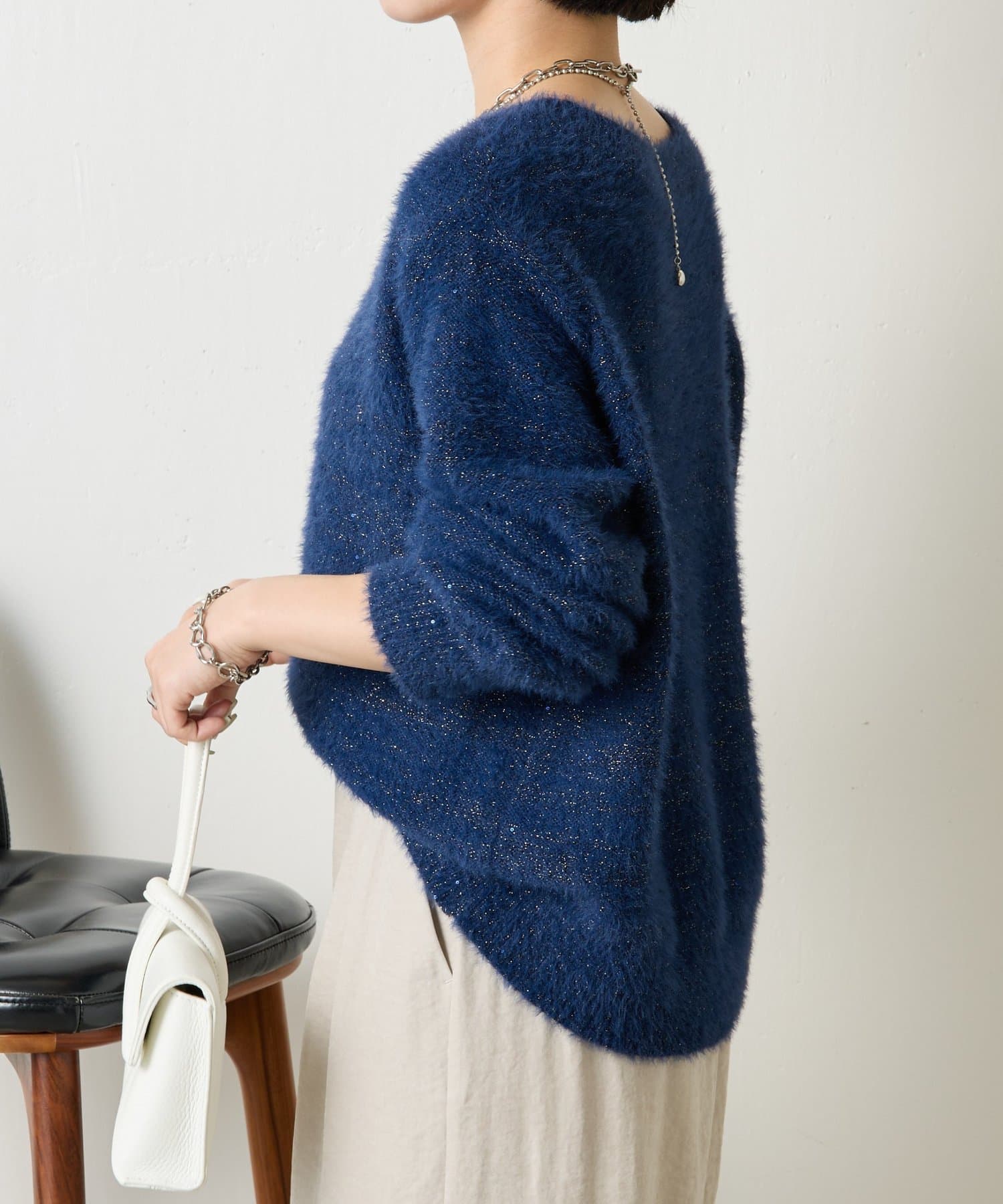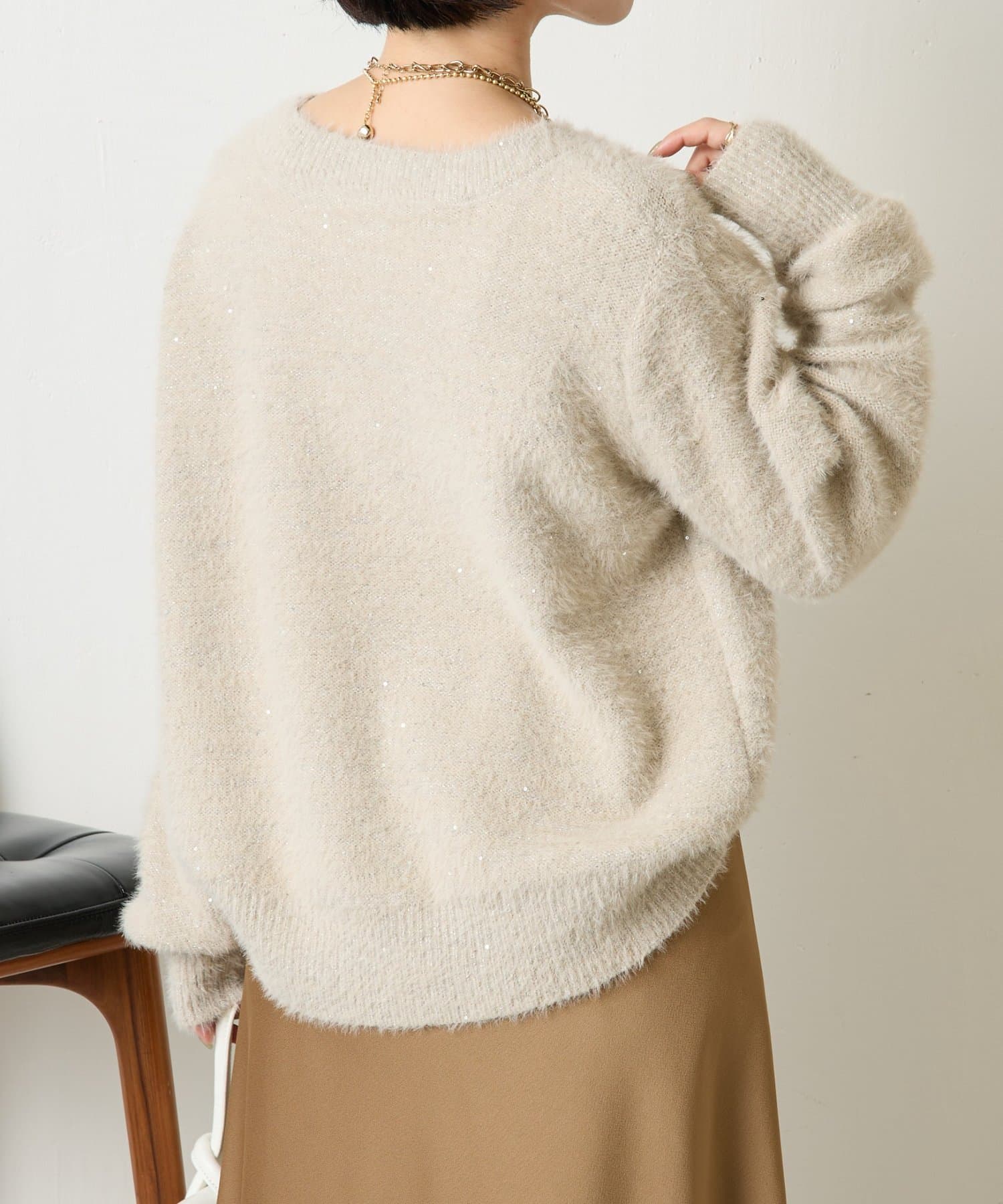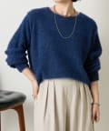 ・ゆったりとしたシルエットながらも着丈が程よく短く、低身長さんでもバランスよく着こなしを楽しめるニット。