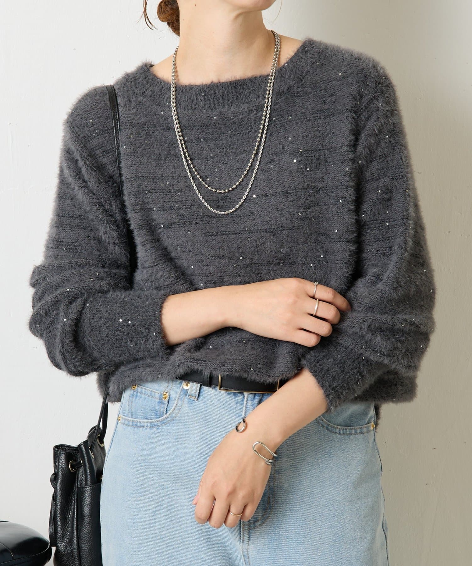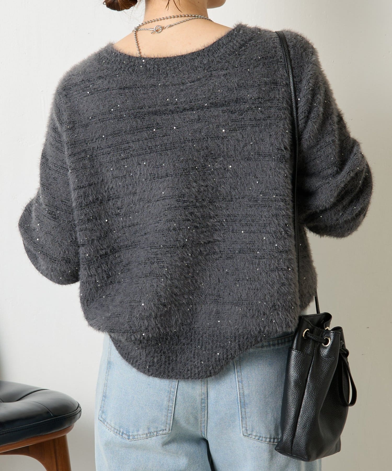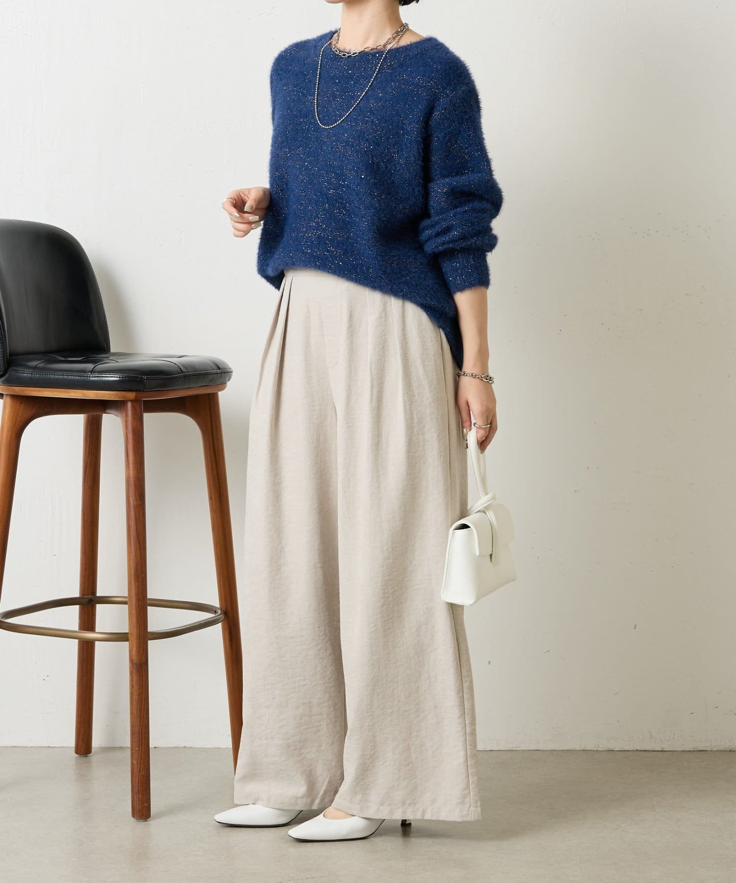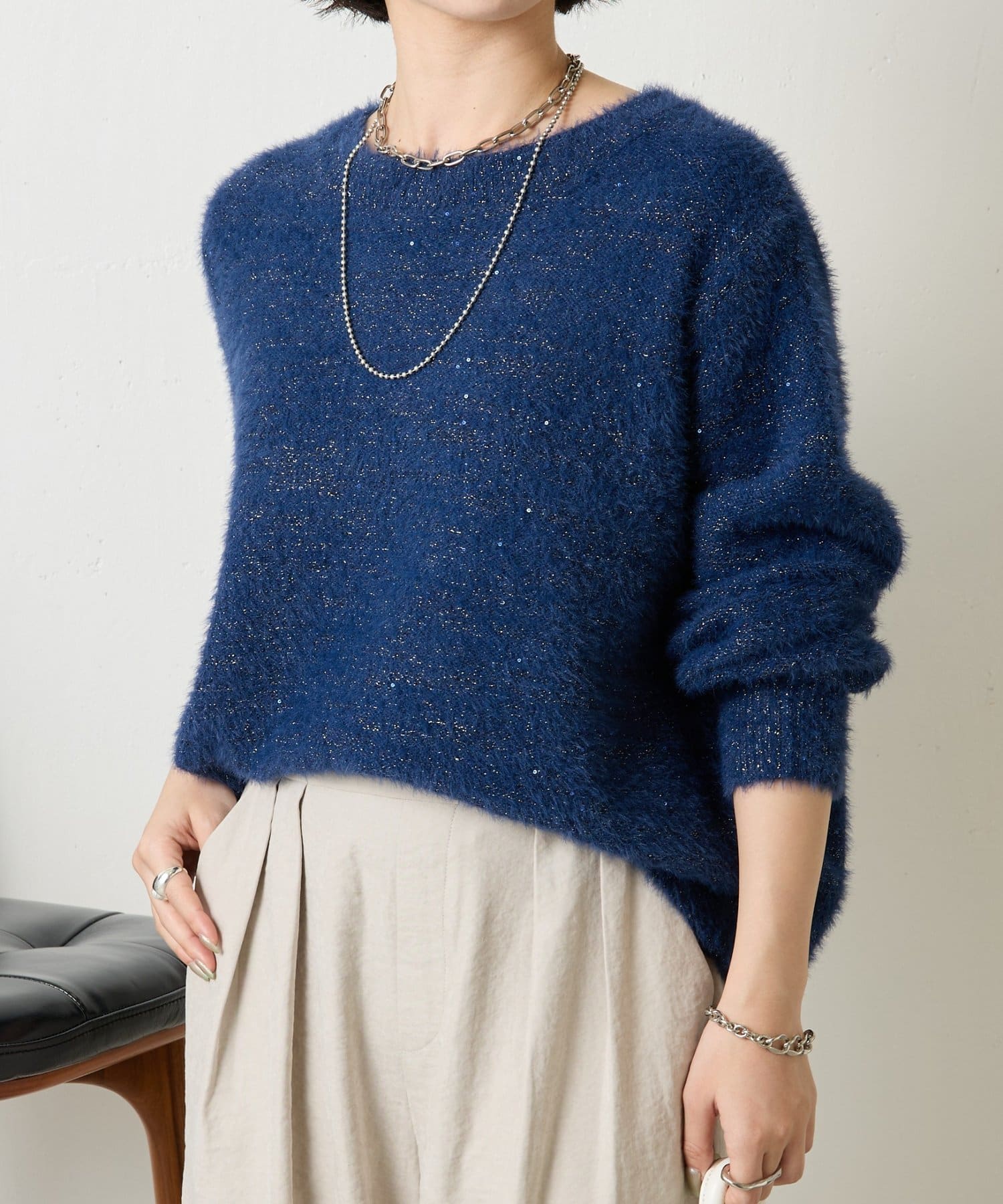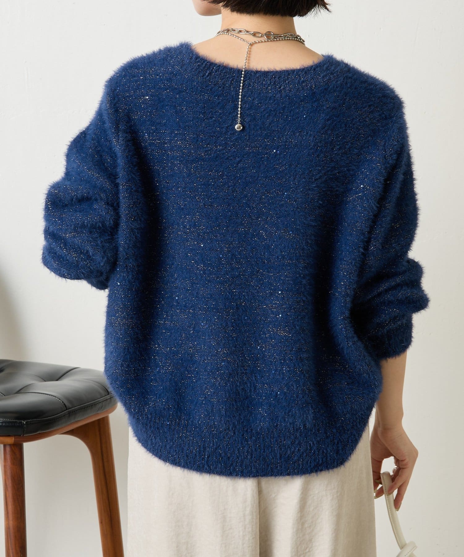 ・ゆったりとしたシルエットながらも着丈が程よく短く、低身長さんでもバランスよく着こなしを楽しめるニット。
