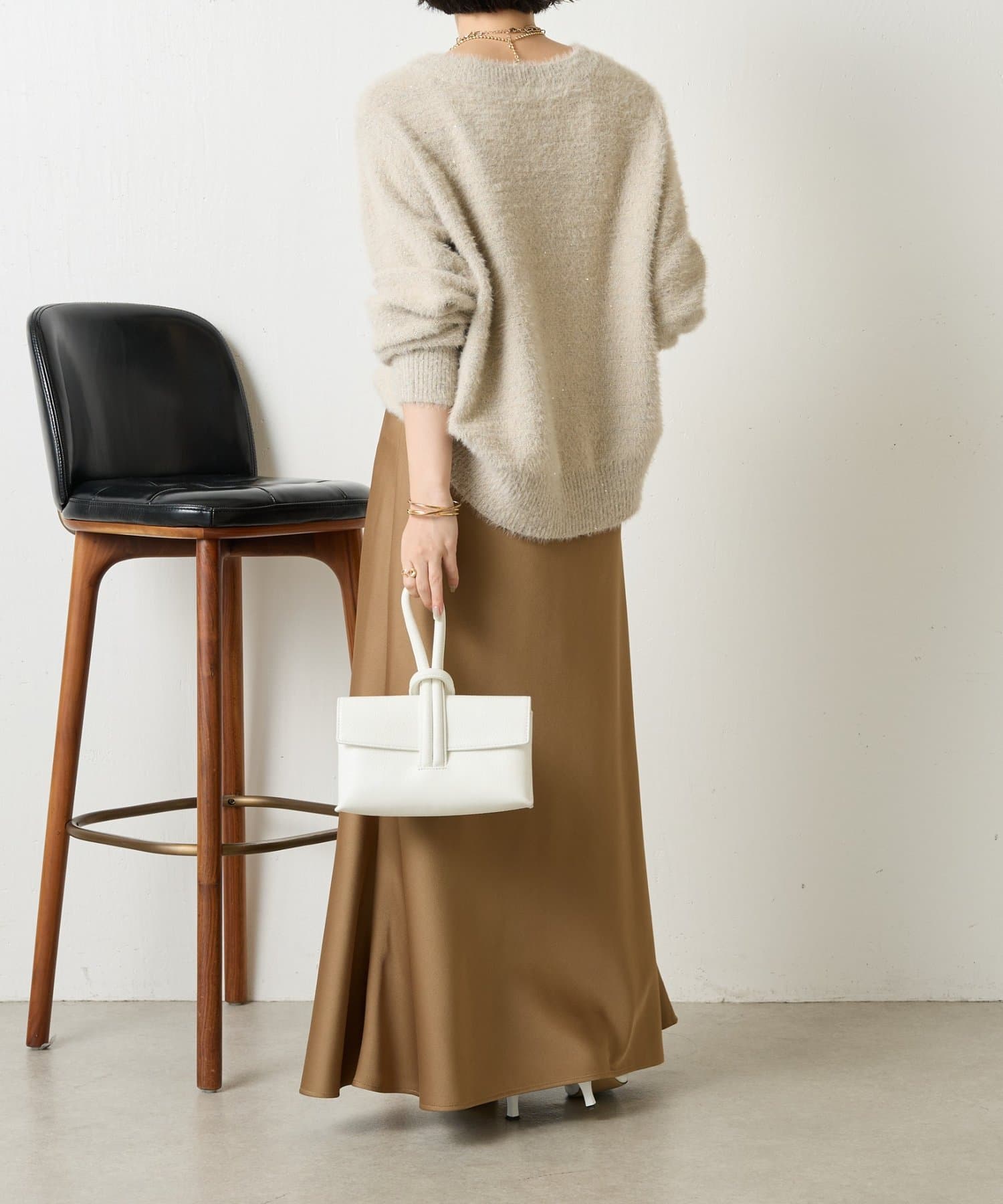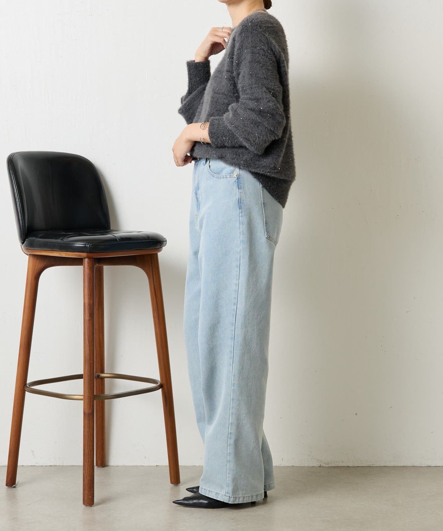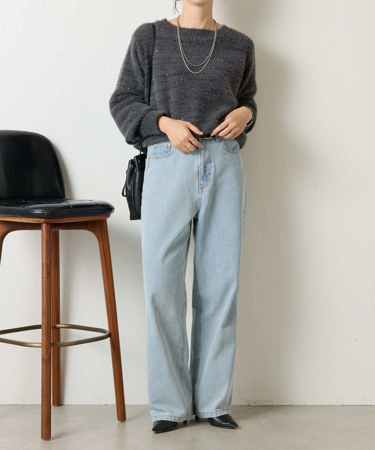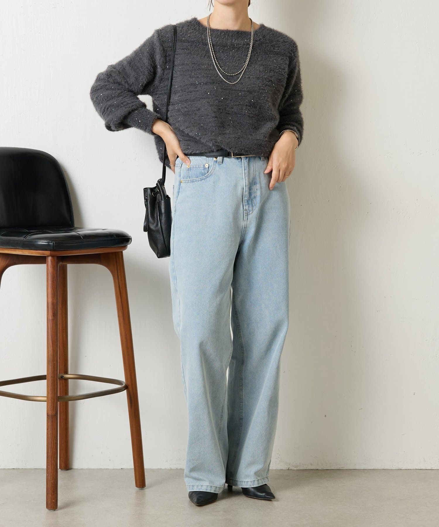 ・ゆったりとしたシルエットながらも着丈が程よく短く、低身長さんでもバランスよく着こなしを楽しめるニット。